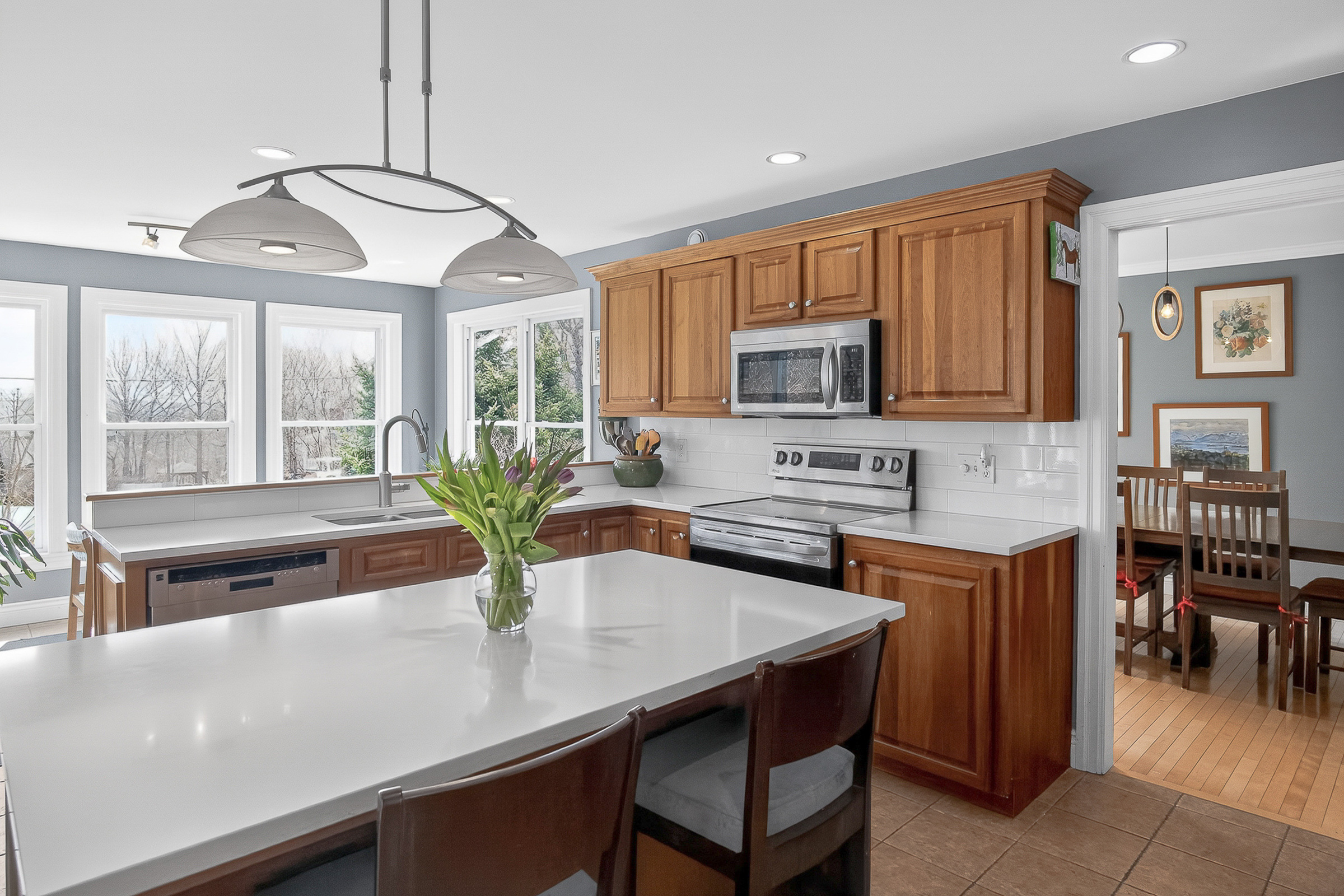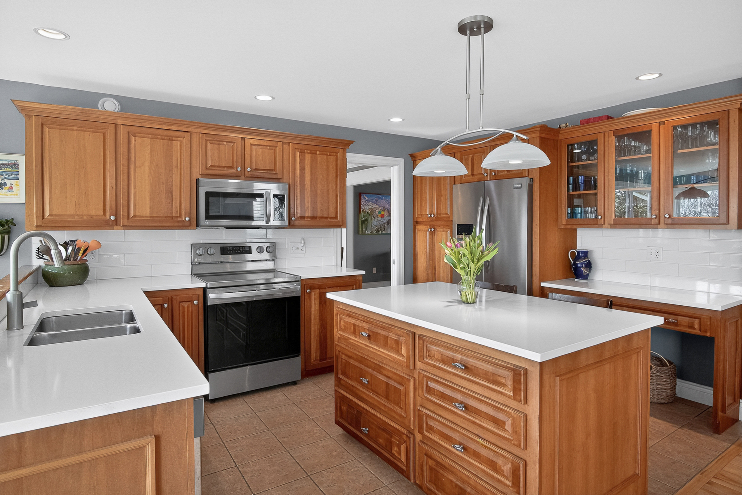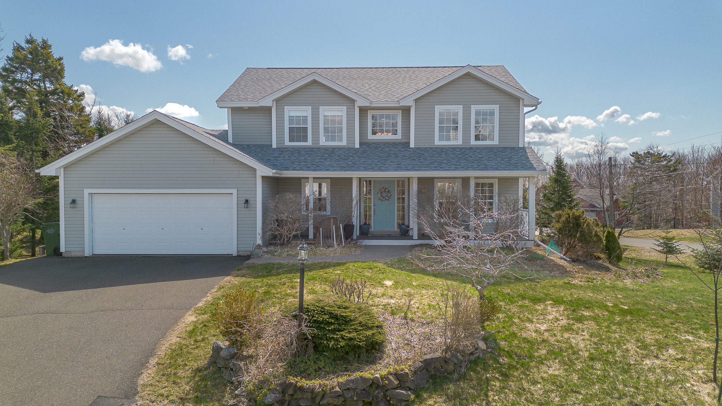 Welcome to one of Woodleigh Park’s most coveted addresses, where executive living meets effortless family comfort in the heart of the Kennebecasis Valley. Perfectly positioned on a corner lot with whimsical, curated gardens, this move-in ready home offers a rare blend of presence, warmth, and everyday functionality. From the moment you arrive, the covered verandah invites slow mornings with coffee, quiet conversations, and a true sense of community. Inside, a commanding entrance opens to a thoughtfully designed main level that balances traditional elegance with modern connection. Crown mouldings, rich trim, and generous principal rooms create a refined backdrop, while the heart of the home unfolds in the stunning kitchen, family room, and sun-filled breakfast area. Here, abundant countertops, white solid surface finishes, subway tile, and open glass display storage elevate both style and function, while the oversized island invites gathering. This is where book clubs linger, potlucks unfold, and family connection happens naturally. The adjoining family room, anchored by a propane fireplace, flows seamlessly to walls of windows overlooking trees, birds, and a private back deck. A formal dining room filled with natural light sets the stage for unforgettable family dinners, while the separate living room offers a quiet retreat, ideal for a home office or refined sitting space. Upstairs, the oversized primary suite offers a peaceful escape with walk-in closet and renovated ensuite with soaker tub. Three additional bedrooms and an updated family bath with integrated laundry provide everyday ease. The walk out lower level is designed for living, offering a fifth bedroom, expansive rec room with tall windows, rough-in bath, and abundant storage—perfect for movie nights, teen hangouts, fitness space, or hosting extended family with ease. With updated shingles, whole-home heat pump, and access to trails, lakes, and rivers, this is Woodleigh Park living at its finest.