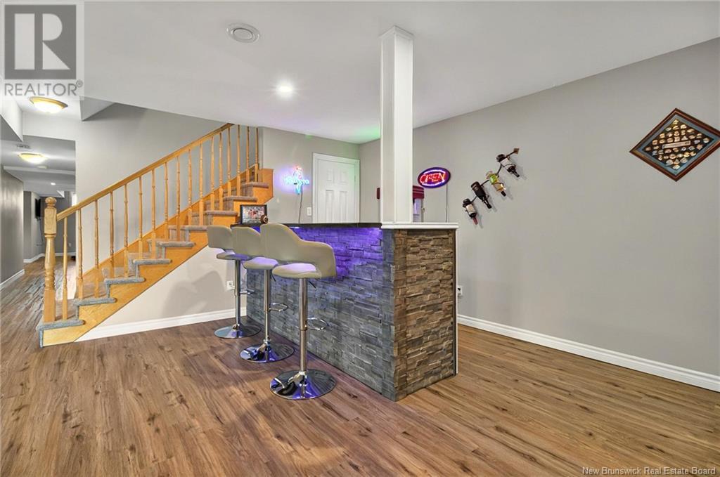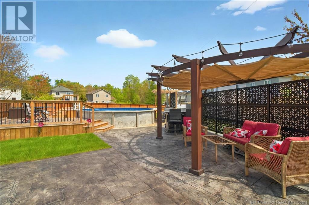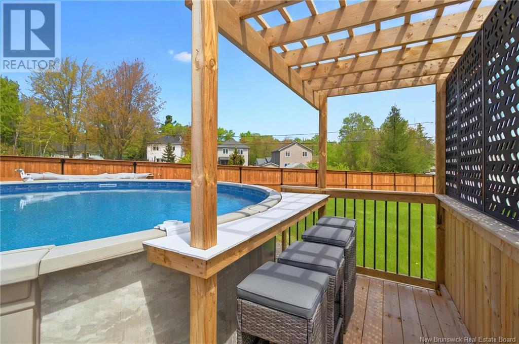 Excellent location Moncton North with a 'true' backyard oasis! Executive bungalow on an extra large lot at the end of a cul de sac. Meticulously landscaped lot, extra wide double paved drive & walk way leading to your backyard summer 'Staycay!' You wont want to leave the roof covered bbq & potential hot tub area on a new upper deck, privacy fencing & firetable area, lower deck with dining set up & lounge platform. From there step on to the stamped concrete patio space with bar/lounge covered gazebo, relax with a drink pool side or step up & sun bathe on the pool deck & swim up to the pool bar top. Play games on the grass area & store all your toys in the large new shed. Outside entertainment is endless. Inside is just as pleasing with all the modern updates throughout. Large front foyer welcomes you in to the well designed floorplan. Formal livingroom joins to the dining & through the French door, opens to an open concept well appointed kitchen with quartz countertops, glass backsplash, stainless appliances, walk in pantry and family room with focal fireplace & tv wall, large windows & easy access to the backyard. Down the hall is a 1/2 Bath, Front bedroom, spacious main bath, beautiful primary bedroom with walkin closet, 4 pc ensuite with soaker tub and 3rd bedroom/office. Finishing is the entry to a large 2 car garage. Downstairs is quite impressive with large windows in the spacious family room with wet bar, large 4th bedroom, 4 pc bath, exercise room, 5th bedroom & more! (id:34572)