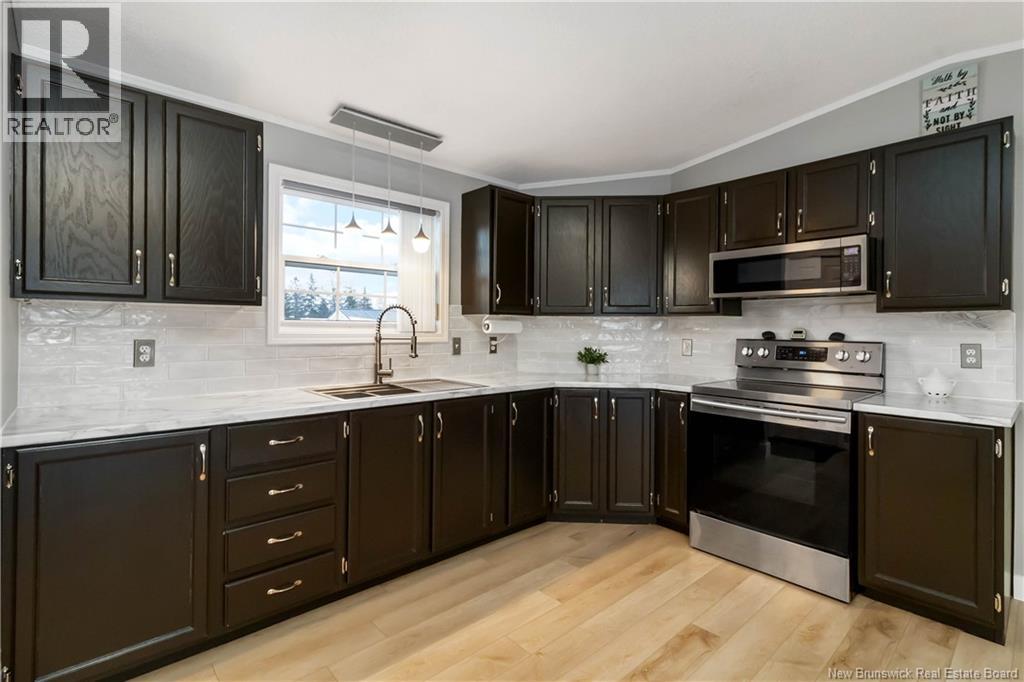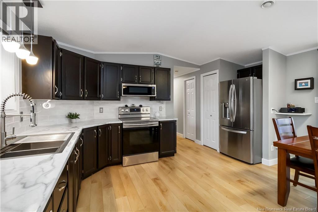 Welcome to 1 Sentier Street in Pine Tree Village, a clean and well-kept mini home park. This 3-bedroom, 1.5-bath home has a layout that works well for everyday living. You enter into an open kitchen and dining area, with the living room just off to the right. A hallway off the living room leads to the laundry area tucked behind closed doors, a full bathroom, and the primary bedroom located at the end of the home. On the opposite side of the home is a second hallway with two additional bedrooms, one currently used as an office, along with a conveniently located half bath in the hall. This split layout offers flexibility for families, guests, or working from home. The home is located in a convenient area of the park. The monthly lot fee is $427 and includes water, sewer, garbage pickup, and snow removal for the roads. The location offers easy access to everyday amenities, including Costco, Irishtown Nature Park, and services along and near Elmwood Drive. If you are looking for an affordable home with a functional layout in a well-maintained community, 1 Sentier Street is worth seeing in person. Book your showing today. (id:34572)