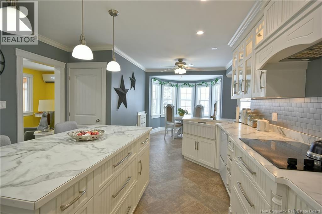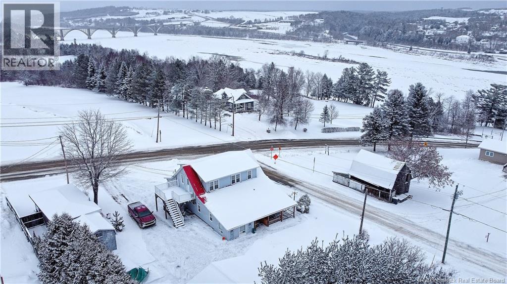 Welcome to 10 Hartland Bridge Hill Road, a landmark property offering a rare blend of historic charm, modern luxury, and incredible income potential. Situated on a scenic hillside with breathtaking views of the Saint John River and the iconic world famous longest Covered Bridge, this home is perfectly positioned for both families and investors. The main level has been beautifully renovated with designer finishes, featuring a stunning, sun-drenched kitchen and a cozy breakfast nook where you can enjoy morning coffee overlooking the river. This floor includes a spacious primary suite with a walk-in closet and ensuite, an open-concept living and dining area, a sunporch, and a private den. The second floor offers a fully equipped suite with its own kitchen, bathroom, and laundry, making it an ideal mortgage helper, granny suite, or Airbnb for the high volume of local tourists. This unique property also features an on-site commercial building currently operating as a retail space, providing a steady and immediate rental income stream. Outside includes a detached two-car garage, a walk-out basement, and a covered deck perfect for taking in the landscape. Practical upgrades abound, including a ductless heat pump, a 9000W generator, and updated flooring, lighting, and paint throughout. Located just minutes from the K-12 Hartland Community School, this property is a versatile investment that pays for itself while offering a premium lifestyle in a historic location. (id:34572)