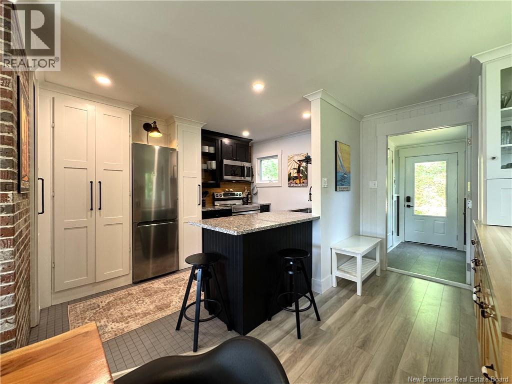 Located on the St. Croix River is this a beautifully updated waterfront home located between St. Andrews and St. Stephen. This two bedroom, two and half bath, two level home overlooks the gorgeous waters of the tidally influenced St. Croix River which enters into the Passamaquoddy Bay. The home has a very comfortable and cozy layout, with the open kitchen, dining and living room. The main level is brought together by the centrally located wood stove and the numerous exceptional water views. The primary bedroom also located on the main level, has a generous sized ensuite and is steps away to a spectacular deck with space for dining, entertaining and relaxing, or just getting lost while watching the tides and wildlife. Downstairs is a fully finished basement with a second large living room, bedroom with space for an office, full bathroom and a walkout facing the water. This lovely landscaped property slopes gently towards the water with the mature trees providing a certain degree of privacy. The beach is easily accessed down the stairs making it a breeze to slide a kayak into the sheltered cove, making this an excellent area for exploring, kayaking, fishing and swimming. The location of the home is ideal being located in a quiet waterfront rural setting so close to town and to the US border. If your looking for a peaceful, scenic home on the water or a cottage to get away too, you won't want to miss this property. Call today for more information or for your private viewing! (id:34572)