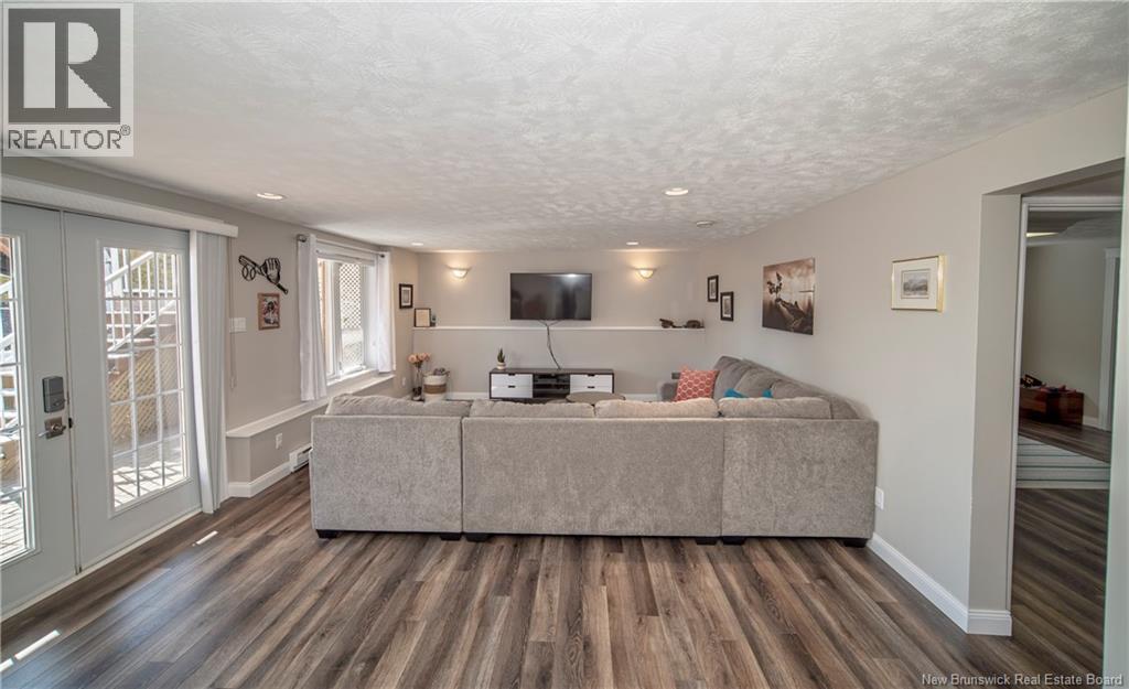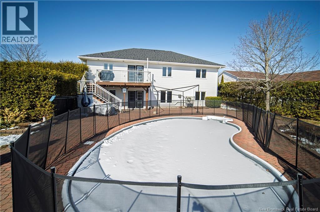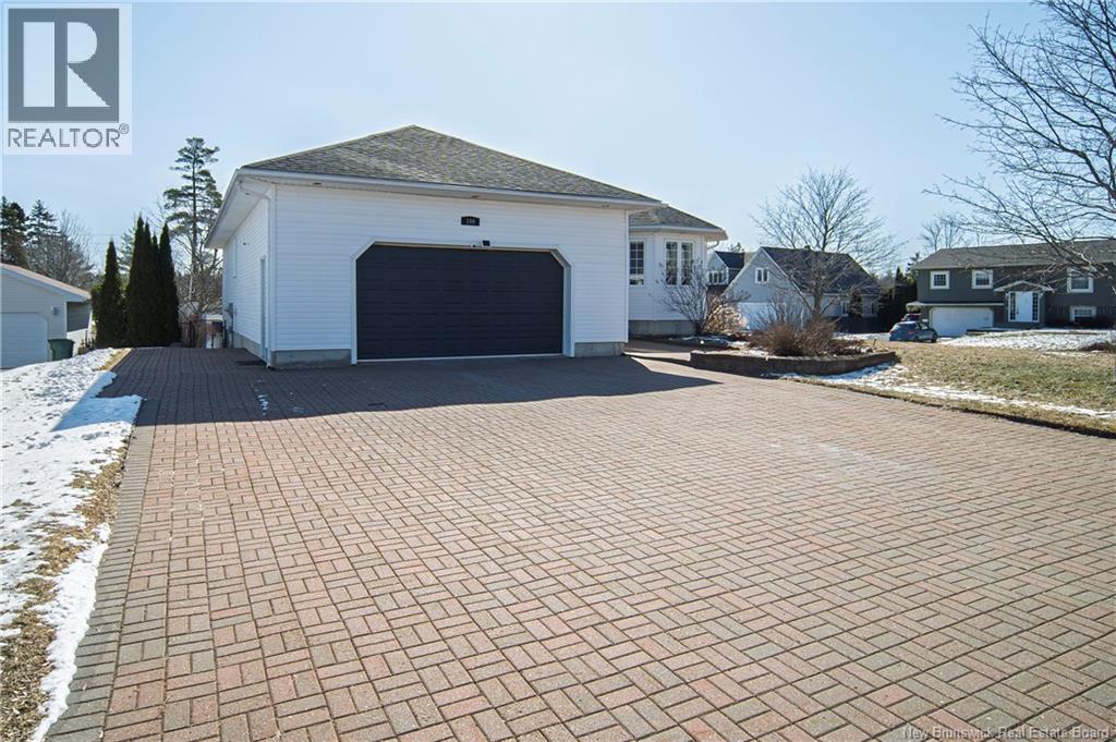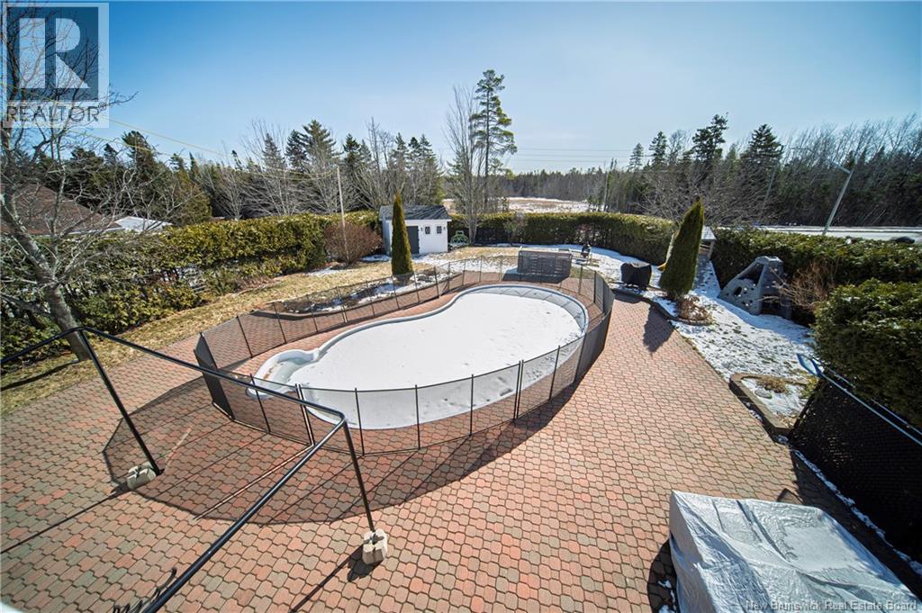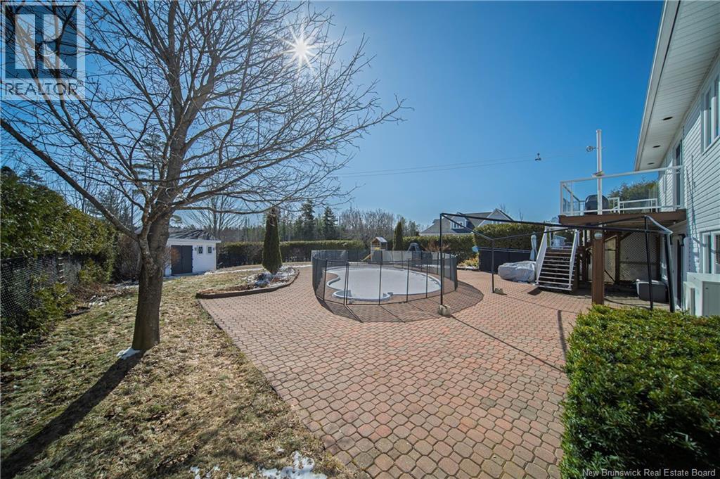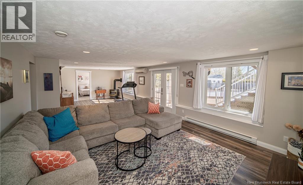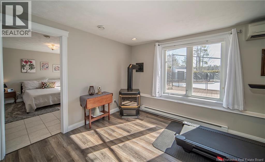 Spacious bungalow in Oromocto, perfectly set on large corner lot. 5 bedrooms, 2 bathrooms, attached double car garage, and in-ground pool (new liner July 2024), this home brings together space, function, and great outdoor living.Main floor features bright open-concept kitchen and dining area finished with classic white cabinetry, quartz countertops, stainless steel appliances, and island that gives you extra prep space. Patio doors off dining area fill space with natural light and lead to deck overlooking backyard. Separate living room offers beautiful hardwood floors, striking turret-style window, and French doors add privacy. This level also includes three bedrooms, laundry room, and well-appointed main bathroom with large vanity, corner soaker tub, glass walk-in shower, and timeless tile finishes. Two heat pumps (one one each level) for energy efficient heating & cooling. Downstairs offers huge family room with propane stove and direct walk-out access to patio and pool area. Youll also find two additional bedrooms, including one with attached bonus room that would make ideal gaming space, sitting area, office nook, or hobby room. Second full bathroom and large storage room complete this level. Outside, fenced in-ground pool and interlock patio create backyard setup built for summer, while large corner lot gives property extra space and standout curb appeal. Fantastic location close to amenities, schools, and CFB Gagetown makes this one an easy fit for busy family living. (id:34572)