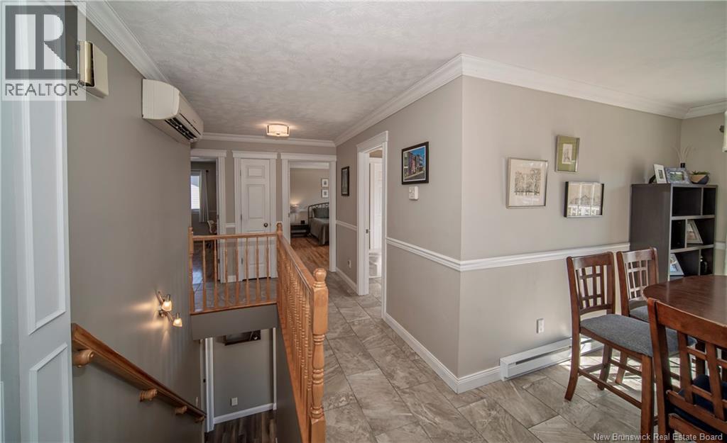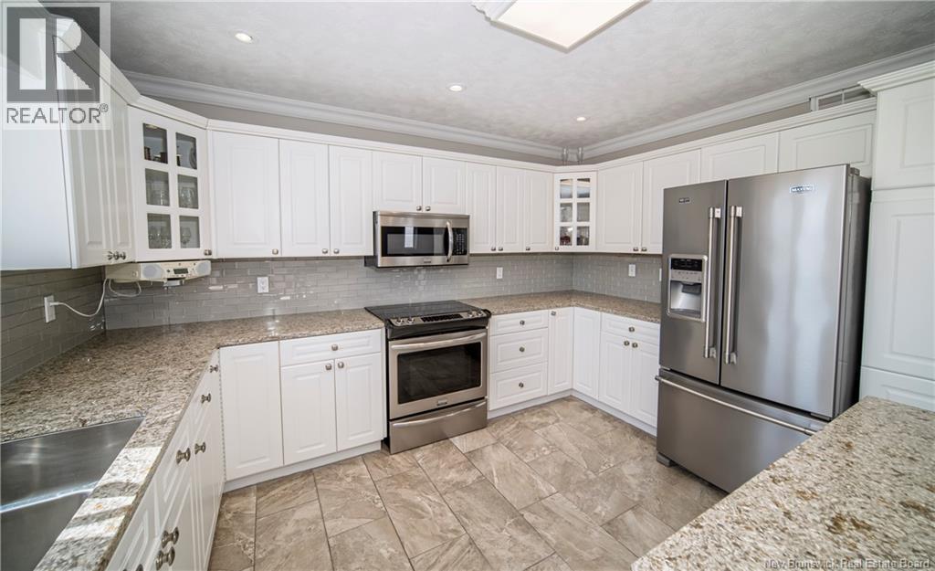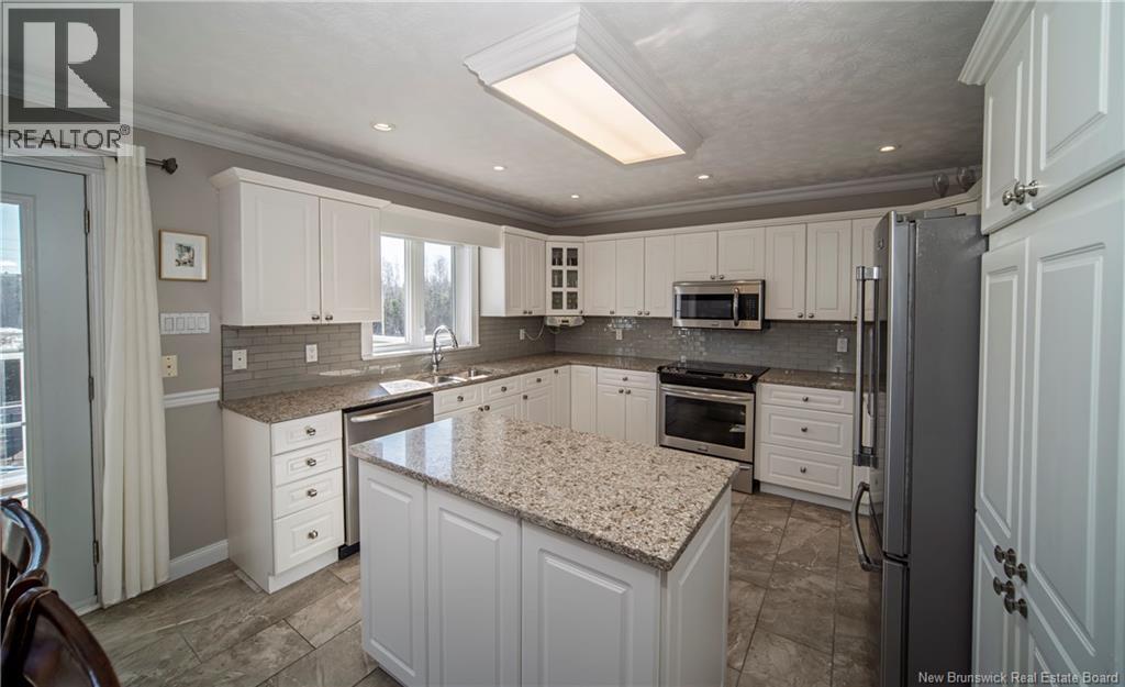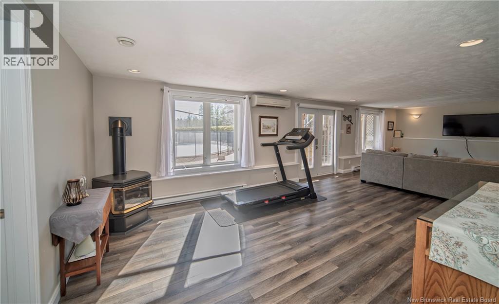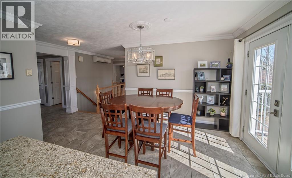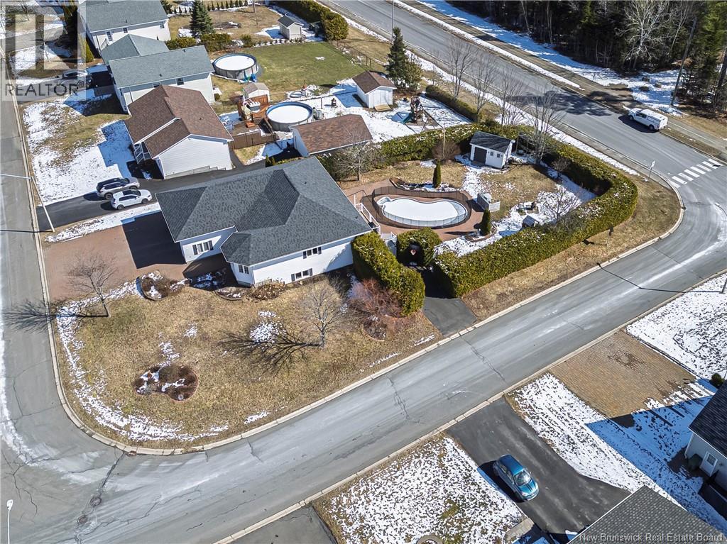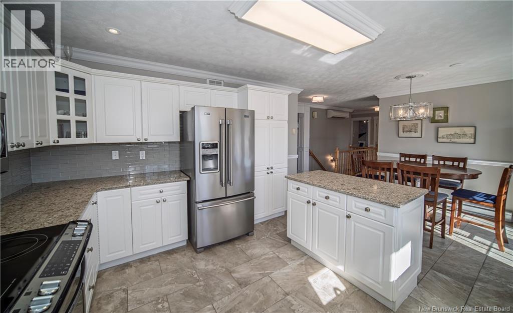 Spacious bungalow in Oromocto, perfectly set on large corner lot. 5 bedrooms, 2 bathrooms, attached double car garage, and in-ground pool (new liner July 2024), this home brings together space, function, and great outdoor living.Main floor features bright open-concept kitchen and dining area finished with classic white cabinetry, quartz countertops, stainless steel appliances, and island that gives you extra prep space. Patio doors off dining area fill space with natural light and lead to deck overlooking backyard. Separate living room offers beautiful hardwood floors, striking turret-style window, and French doors add privacy. This level also includes three bedrooms, laundry room, and well-appointed main bathroom with large vanity, corner soaker tub, glass walk-in shower, and timeless tile finishes. Two heat pumps (one one each level) for energy efficient heating & cooling. Downstairs offers huge family room with propane stove and direct walk-out access to patio and pool area. Youll also find two additional bedrooms, including one with attached bonus room that would make ideal gaming space, sitting area, office nook, or hobby room. Second full bathroom and large storage room complete this level. Outside, fenced in-ground pool and interlock patio create backyard setup built for summer, while large corner lot gives property extra space and standout curb appeal. Fantastic location close to amenities, schools, and CFB Gagetown makes this one an easy fit for busy family living. (id:34572)