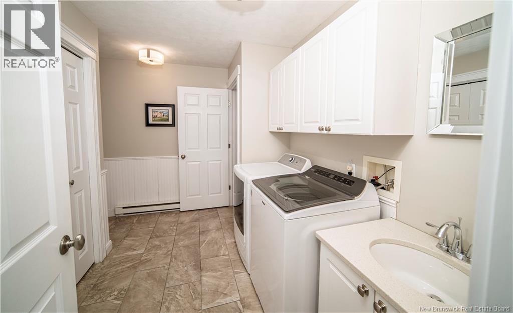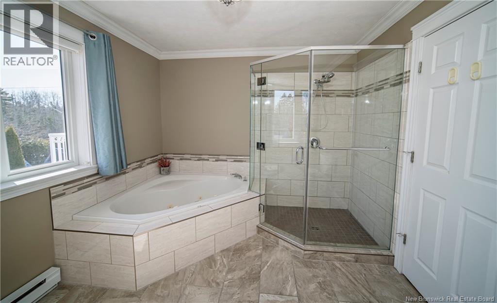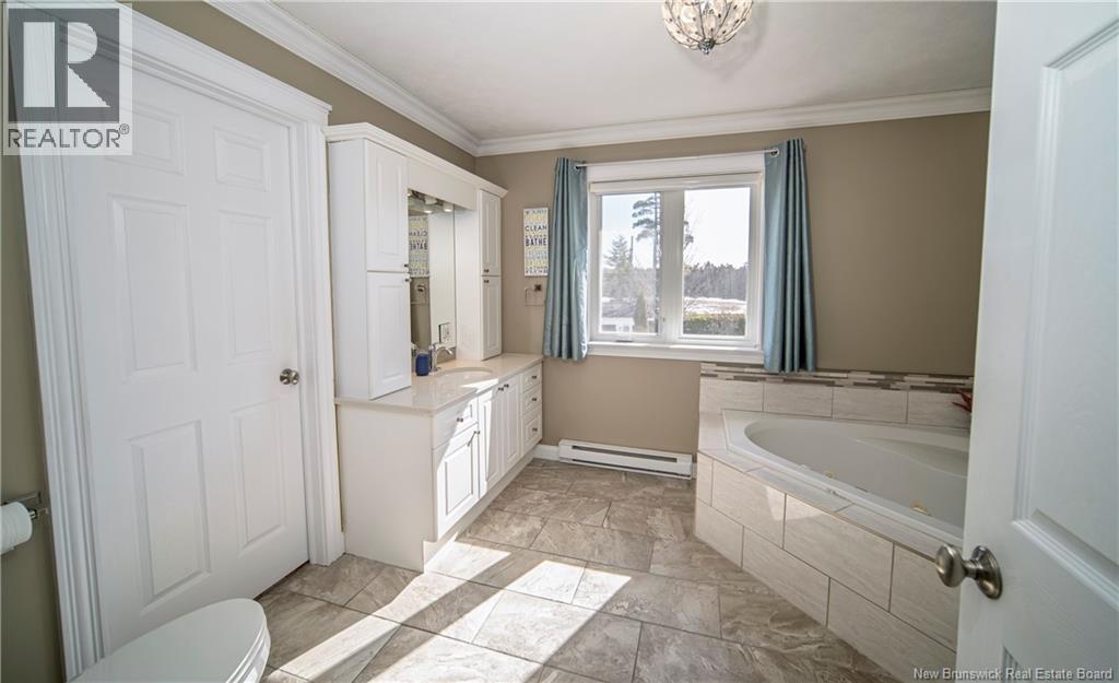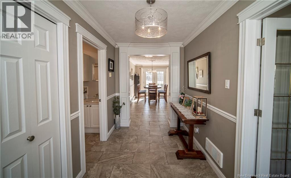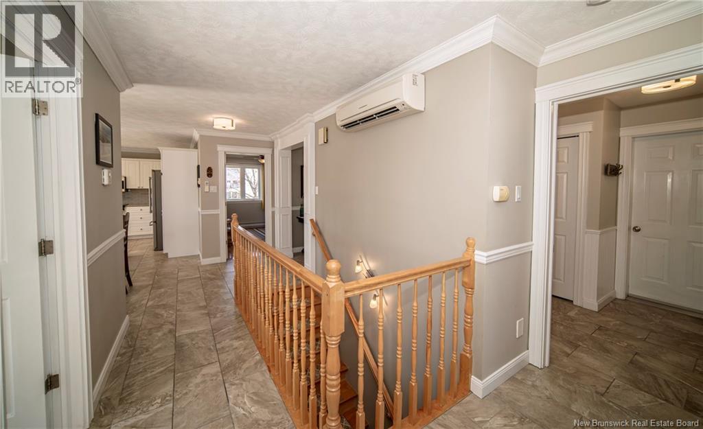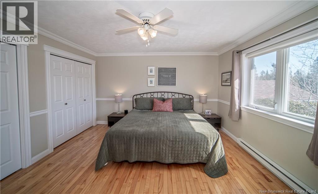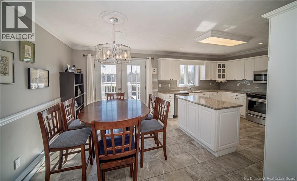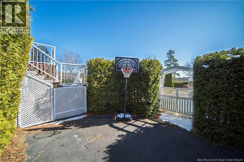 Spacious bungalow in Oromocto, perfectly set on large corner lot. 5 bedrooms, 2 bathrooms, attached double car garage, and in-ground pool (new liner July 2024), this home brings together space, function, and great outdoor living.Main floor features bright open-concept kitchen and dining area finished with classic white cabinetry, quartz countertops, stainless steel appliances, and island that gives you extra prep space. Patio doors off dining area fill space with natural light and lead to deck overlooking backyard. Separate living room offers beautiful hardwood floors, striking turret-style window, and French doors add privacy. This level also includes three bedrooms, laundry room, and well-appointed main bathroom with large vanity, corner soaker tub, glass walk-in shower, and timeless tile finishes. Two heat pumps (one one each level) for energy efficient heating & cooling. Downstairs offers huge family room with propane stove and direct walk-out access to patio and pool area. Youll also find two additional bedrooms, including one with attached bonus room that would make ideal gaming space, sitting area, office nook, or hobby room. Second full bathroom and large storage room complete this level. Outside, fenced in-ground pool and interlock patio create backyard setup built for summer, while large corner lot gives property extra space and standout curb appeal. Fantastic location close to amenities, schools, and CFB Gagetown makes this one an easy fit for busy family living. (id:34572)