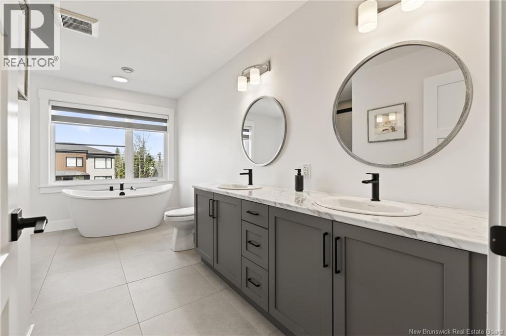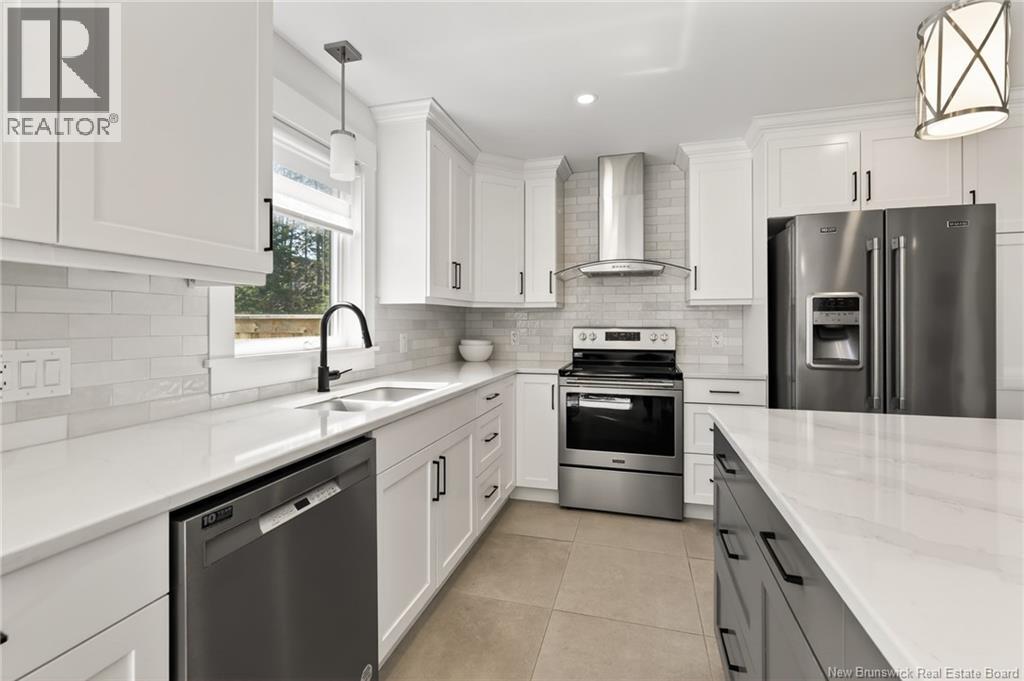MODERN//2023 BUILD//GREAT LOCATION// Welcome to 106 Donat in the heart of Dieppe! This meticulously kept, turn-key home offers the rare opportunity to own a property that remains in perfect, like-new condition. Nestled in a highly desirable neighbourhood and backing directly onto the walking trail, this home provides easy access to schools and local amenities while offering a peaceful, tree-lined backyard. The main floor features an inviting living room with a beautiful fireplace, that overlooks the dining area, creating a seamless flow for entertaining. The modern kitchen offers a large island with quartz countertops and a stylish tile backsplash with plenty of cabinetry. Through the patio doors, you can enjoy the back deck and the privacy of the mature trees behind the lot. A convenient 2pc bathroom completes this level. Up the hardwood staircase, you will find a spacious landing with a laundry closet leading to the three bedrooms and bathroom. The primary suite features a large walk-in closet, while the full bathroom offers a relaxing soaker tub, a separate tile shower and double sinks. Throughout the home, you will find quality engineered hardwood and ceramic flooring, large windows along with a mini-split heat pump for year-round comfort. The unfinished lower level provides massive storage or the potential to create additional living space to suit your needs. From the spotless interior to the prime location, this home has been cared for with absolute pride of ownership and is ready for its next lucky owners. Call today for more information! (id:34572)