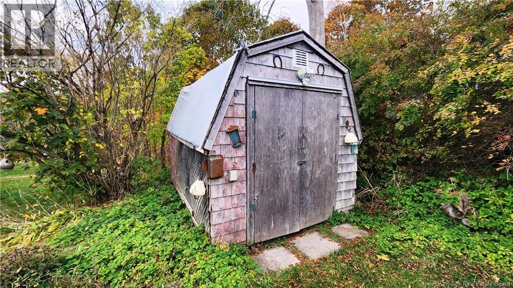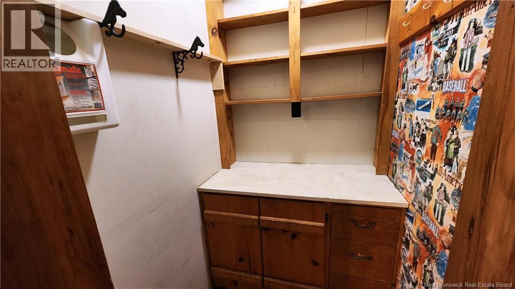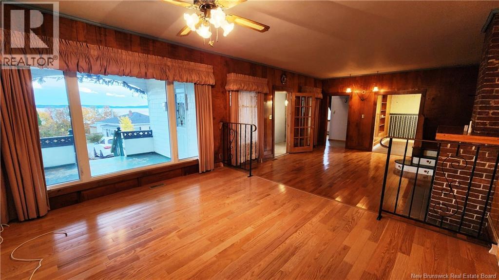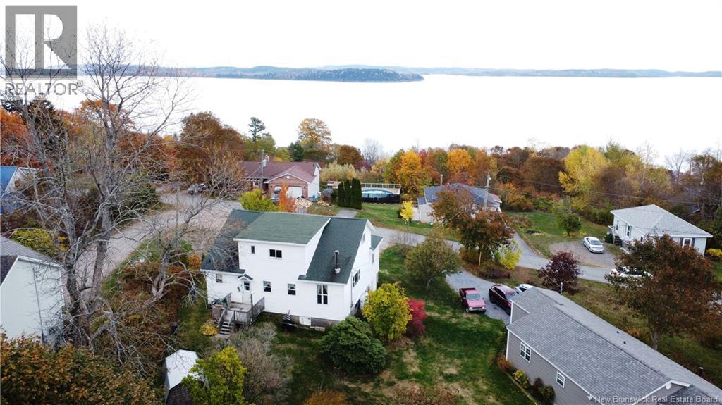 If youre looking for a spacious home in Grand Bay with great potential, this property offers over 3200 square feet of living space and plenty of room for the whole family. This 5 bedroom, 1.5 bath home with an additional 3/4 bath is set on a quiet cul de sac with lovely river views and is full of charm and character. Step onto the covered front porch and into the large foyer or mudroom. Inside youll find generous living spaces including a bright living room with a decorative fireplace and a large dining room with built ins for china or collectibles. The kitchen offers plenty of cupboard space, wood cabinets, and two pantries for extra storage. Off the rear mudroom youll find a convenient laundry area that includes a shower and toilet, leading out to a private backyard with a deck, storage shed, and mature fruit trees including pear and cherry, along with blueberry bushes and rhubarb. The main level also features a bedroom with vaulted ceilings and a half bath. Upstairs youll find three or four bedrooms depending on your layout preference and a full bath with tub and shower. The primary bedroom enjoys river views and a walk in closet with space for two. The basement is unfinished and accessed from outside housing the homes mechanical systems. Most windows are vinyl and a rented heat pump helps provide efficient heating and cooling along with other heat sources. This home has incredible potential for someone to make it their own at an affordable price. (id:34572)