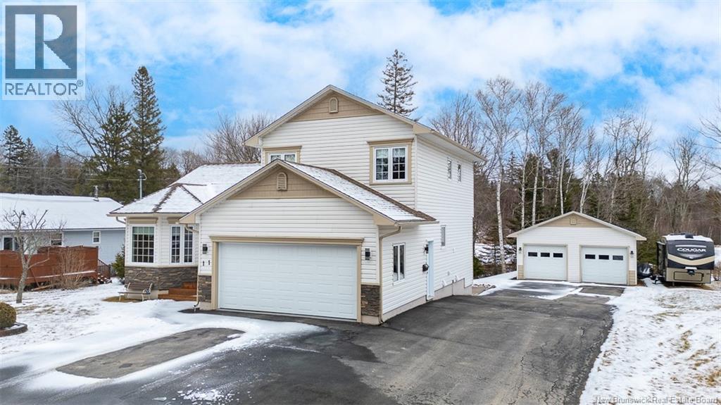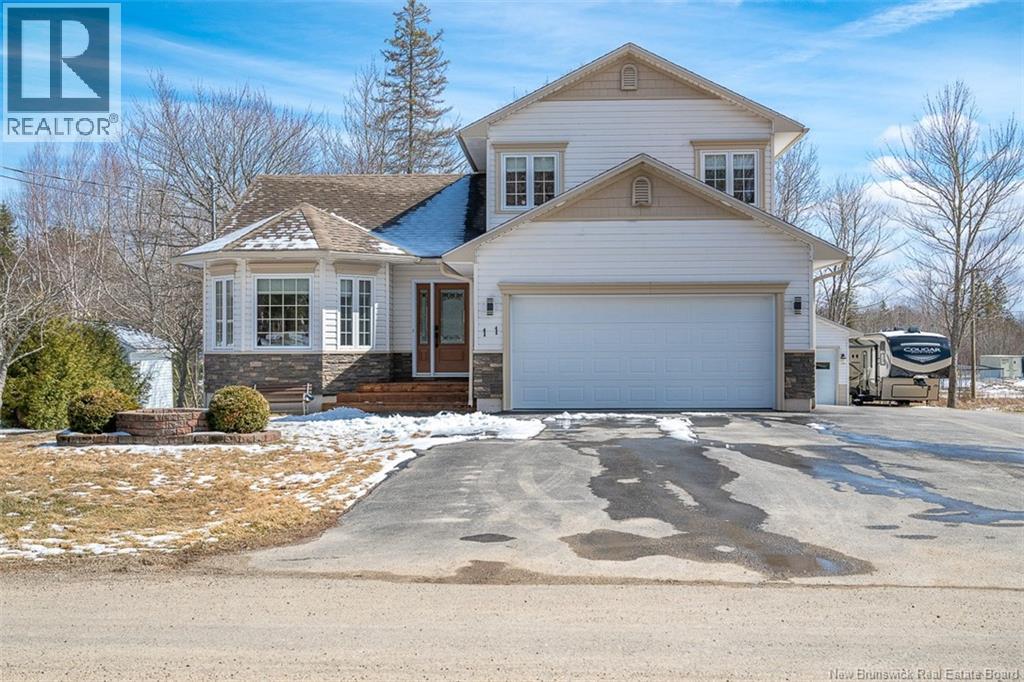 Filled with natural light & thoughtfully designed, 11 Weston St has been lovingly cared for over the years & offers a warm, inviting atmosphere. All this, while backing directly onto a park & offering an attached & detached garage! Whether youre seeking something close to uptown Fredericton or CFB Gagetown in Oromocto, this home in New Maryland is ready for your family. The main floor features a spacious kitchen, bright dining room, living room with ductless heat pump, a full bathroom with convenient laundry & access to the attached garage. The kitchen is a true gathering space, complete with timeless white cabinetry, generous prep space & a large centre island with a breakfast bar. A cozy pellet stove adds warmth & character, while access to the back deck makes indoor-outdoor living a breeze. Upstairs, you'll find the main bathroom, plus three bedrooms including the primary with its own heat pump, ensuite bath & walk-in closet. The finished lower level adds impressive flexibility, with a 3rd heat pump & walkout access to a concrete patio. This level includes 2 more spacious bedrooms, a large family room & 2 storage areas. Whether you need room for a growing family, guests, a home office, or hobby space, this lower level delivers options without feeling like an afterthought. From the beautiful landscaping to the TWO garages, there is more to love outside! This standout home offers new roof shingles in 2018, excellent upkeep & a desirable location. All that's missing is you! (id:34572)