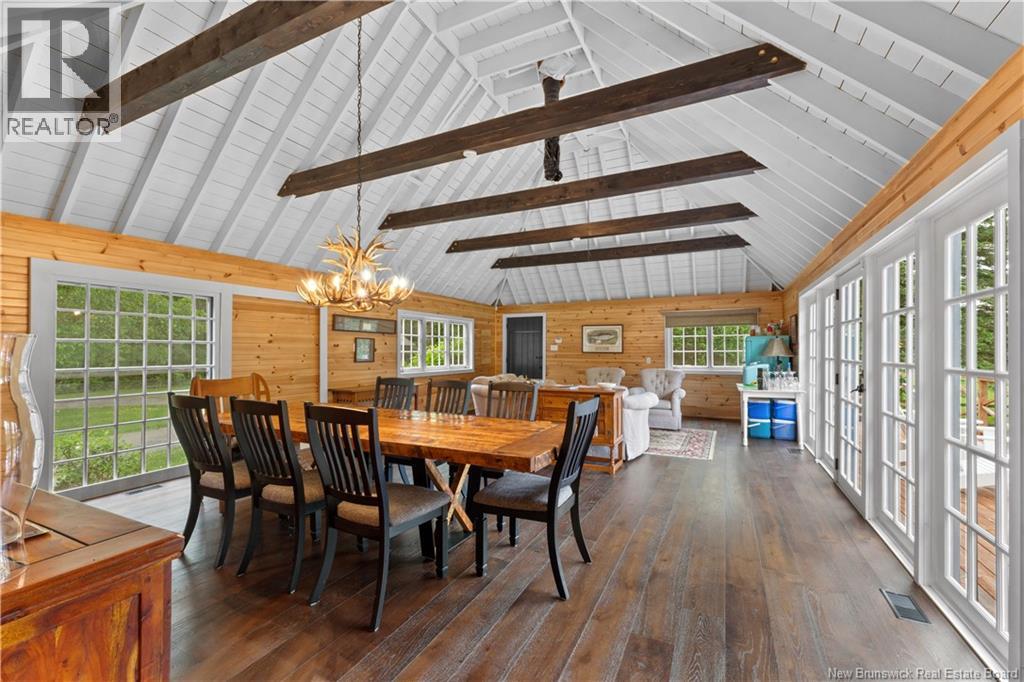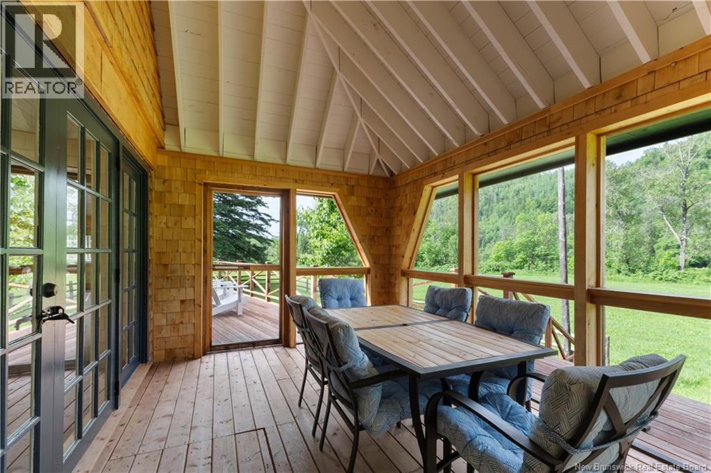 Introducing Mill Brook Lodgean exclusive SALMON FISHING & wilderness retreat set on 175 acres along the famed Upsalquitch River. Rich in history with 2 miles of deeded riverfront & five private salmon pools, this upscale lodge offers unparalleled seclusion & world-class angling. Designed to host up to 10 guests, the five-bedroom lodge blends rustic elegance with hotel grade curated comfort: a vaulted great room, a cozy living space with fireplace, a chefs kitchen, a stunning dining hall, and a riverside sunroom. Each bedroom is paired with a spa-like bath, offering modern amenities without compromising character. Custom woodwork, hand-forged accents & natural finishes create a warm, timeless feel throughout. In addition to the main lodge, the property includes a private Owners Lodge featuring a lounge area & two bedrooms, each with its own ensuite. Further upriver, the Guides Post offers accommodations for four additional guests, while the same parcel also hosts a Butlers Quarters & a 40x28 boathouse with loft. Guests enjoy handcrafted 26-ft canoes, expert fishing guides, a private chef, and direct access to remote wildernessperfect for family retreats, corporate escapes, or legacy experiences. Local community members have prided themselves into making every stay unforgettable. Accessible YEAR ROUND, Mill Brook Lodge is a turn-key riverside estate where adventure and tranquility meet. A rare opportunity to own the crown jewel of the Upsalquitch. (id:34572)