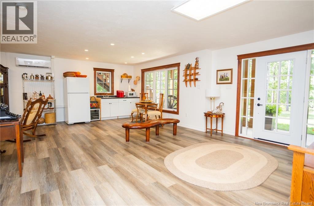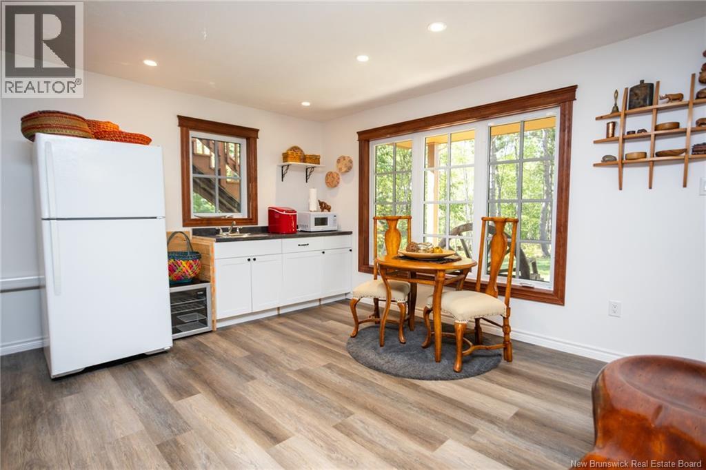 Nestled amongst the trees in Cambridge Narrows, this remarkable property offers waterfront living at its finest. Built in 2008/2009, the estate includes two independent homes and a large workshop/garage- all on solid concrete slabs. A paved drive leads to the drive-in/drive-out garage, while stone walkways & landscaping connect the homes to an inviting outdoor area with a firepit and covered gazebo/outdoor kitchen. Although both homes have the same size footprints with open concept living the primary home is 1 level with 2 bedrooms, kitchen, living, & bath and the secondary home has a similar layout (bunkbeds & can sleep 8) but has a 2nd level with loft area featuring additional beds and open living area with 1/2 bath making it well suited for an artist studio or guest suite. The spacious garage/workshop is designed for versatility, with high ceilings and can easily accommodate multiple vehicles making it ideal for automotive projects, woodworking etc. The property is accented throughout with eclectic furnishings and unique pieces gathered from worldly travels and can be included as a ""turn key"" package. Complimenting your own waterfront is a high quality dock system, swim platform and a view that is priceless. Blending natural beauty with thoughtful design & character this property combines privacy & versatility, making it ideal for a large family or multi-generational living - this is more than just a property - it's a place for inspired living. (id:34572)