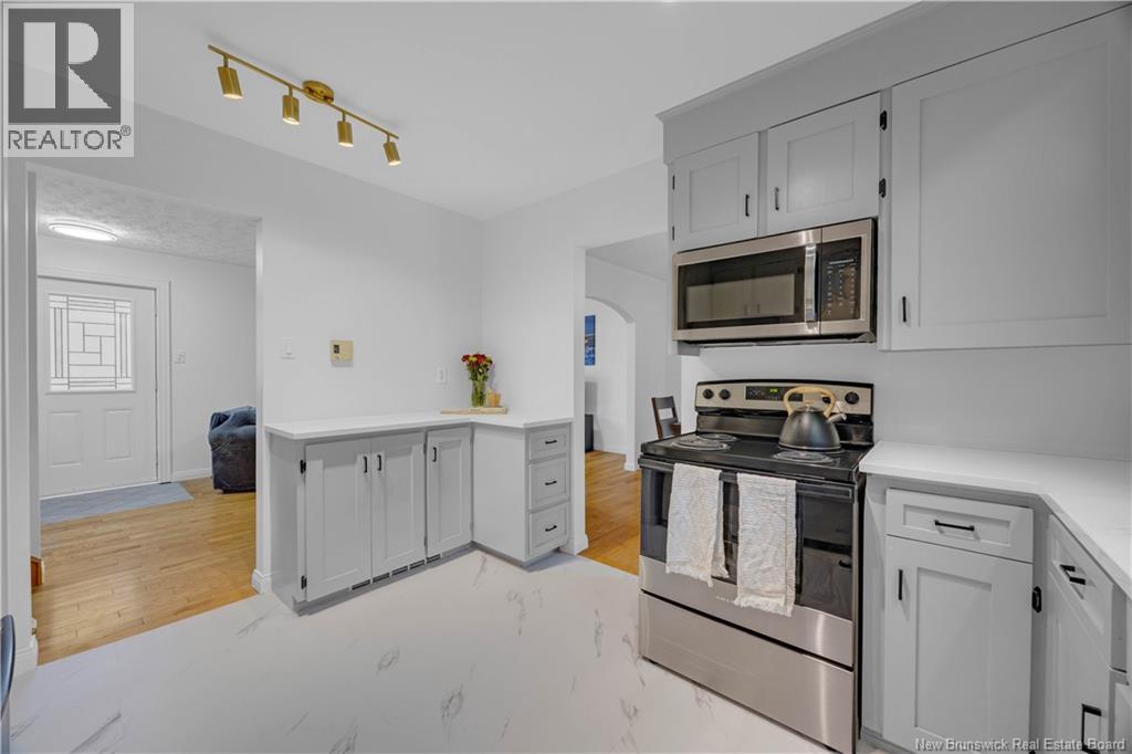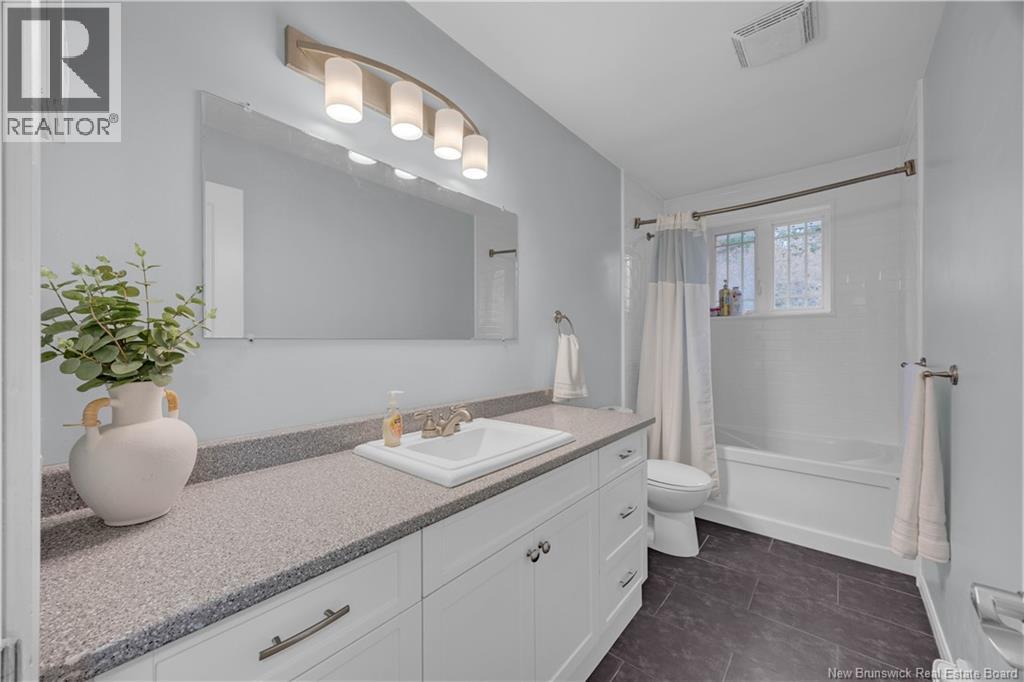 Situated in a desirable Quispamsis location, this three bedroom four level split home, makes the perfect first time home, or family home. When you step through the front door, you are greeted into the main floor living room, complete with hardwood floors and bright picture window. The updated kitchen includes quartz countertop, large double sink, and newer flooring. Off both the kitchen and the living room, sits the formal dining room with garden doors to the large rear deck, and private backyard. Up the stairs sits all three bedrooms and full bathroom, all painted freshly white. The third level includes one of two potential family rooms complete with a cozy wood fireplace insert, a newly finished 1/2 bath, and another flex room that would easily make a great home office. On the bottom fourth level, there is the third potential family room, gym space, or man cave area, spacious laundry room, a generous sized storage that also includes access to the attached oversized single garage. Roof on the property is just over 10 years old, and many other updates have been completed. This home is totally ready for its new family to enjoy, and you're not going to want to miss the opportunity to be that one! All sizes to be confirmed by purchaser prior to closing. Call today to book your private viewing. (id:34572)