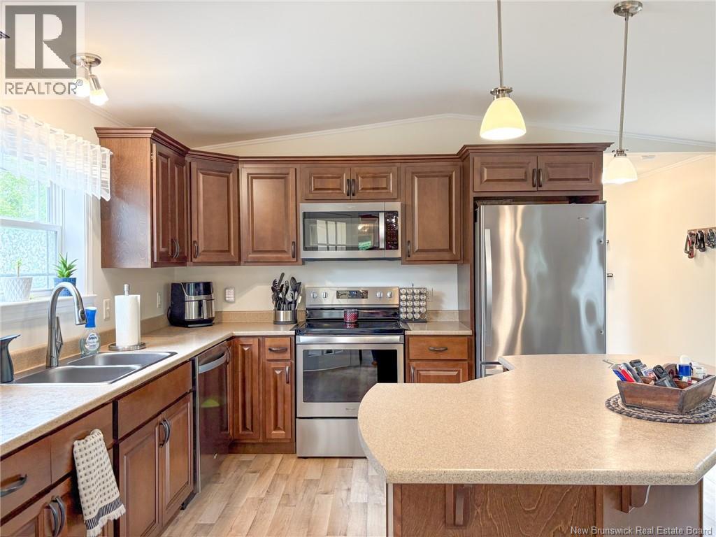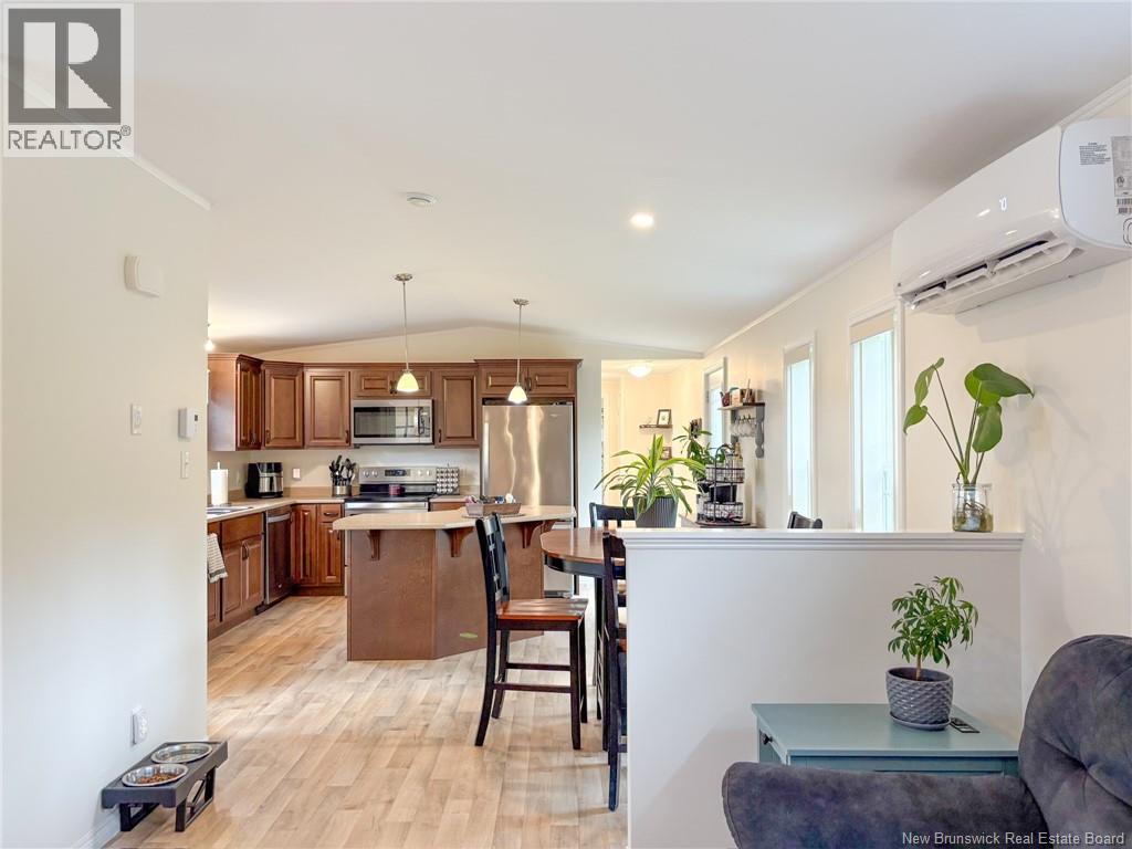 Step into modern living wrapped in complete privacy. Set on 1.89 acres of beautifully landscaped grounds framed by mature birch trees, this 2018-built, three-bedroom, two-bath mini home feels like your own hidden retreat. A private gravel drive winds past lush green grasses, shrubs and a storage shed before welcoming you inside to an airy open-concept living space. At the heart of the home, a stylish kitchen with dark cherry cabinetry, stainless steel appliances, and a spacious island flows seamlessly into dining and living areas designed for connection. A cozy mudroom doubles as a vestibule at the front door, while a back deck and rear entry extends living outdoors. The crown jewel: a full primary suite tucked away on its own wing, enveloped in a rich, dark green palette with matching trim and ceilings, a bold, designer touch. The ensuite boasts an oversized garden tub (custom option), perfect for unwinding. Two additional bedrooms, a full bath, and convenient hallway laundry complete the plan. With cushion flooring, ductless mini split comfort, baseboard heating, and timeless finishes throughout, this seven-year-young home blends functionality with flair. Private, peaceful, and move-in ready - this is not just a home, its a lifestyle. Tour this home virtually using the Matterport 3D tour link attached to the listing! Schedule a private visit with your REALTOR® of choice TODAY! (id:34572)