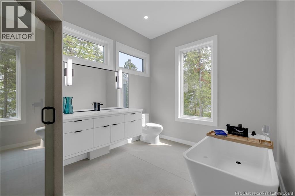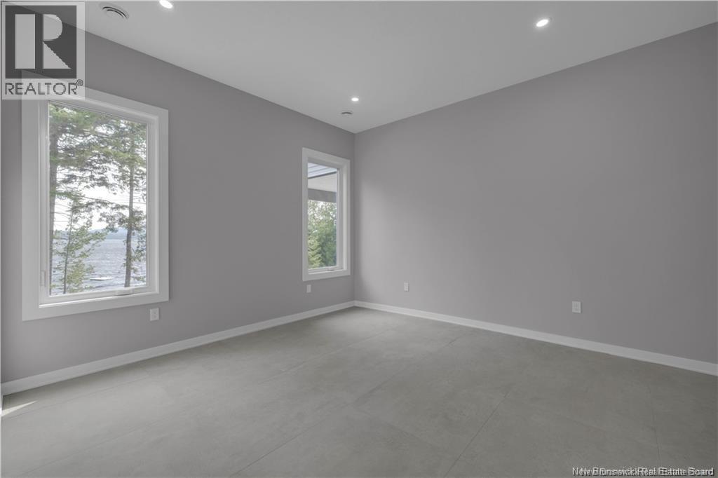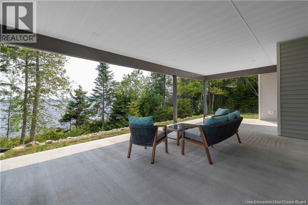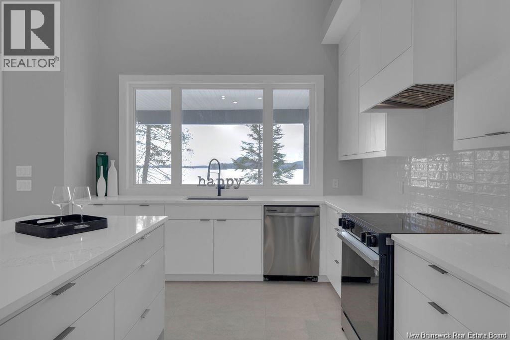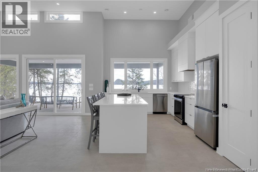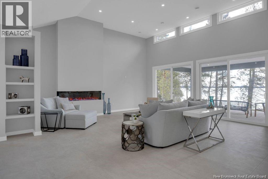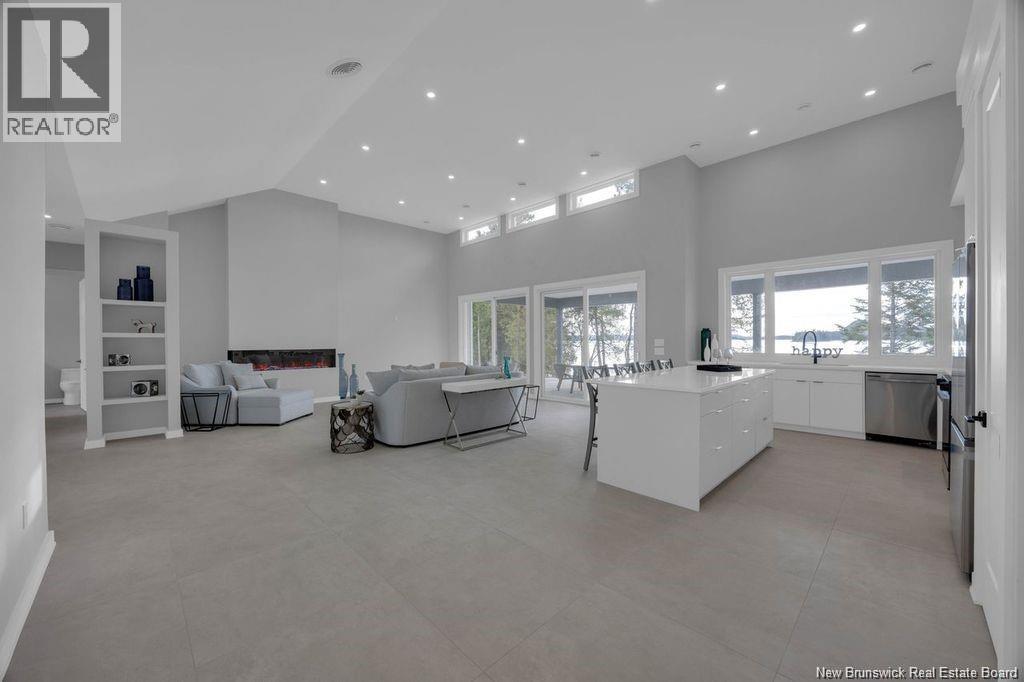 Discover this custom-built luxury bungalow in the exclusive gated community of Sandleigh Estates on beautiful Lake Utopia. Set on 2.42 landscaped acres with 233 ft of pristine waterfront, this newly built home offers exceptional privacy, comfort, and craftsmanship. Enjoy lakeside living with your own boat ramp, a peaceful stream, and breathtaking views from every angle. Built on an insulated concrete slab with energy-efficient materials, the home features Italian ceramic tile, custom woodwork, sound-proofed walls, a ducted heat pump, central vacuum, and a full water purification system. Inside, vaulted ceilings and expansive windows create a bright, open-concept living space. The gourmet kitchen includes quartz countertops, a large island, and brand-new appliances. The elegant living and dining area is highlighted by a beautiful Armenti fireplace, perfect for relaxing or entertaining. The spacious primary suite offers panoramic lake views, a spa-inspired ensuite with a glass-tiled shower, and a walk-in closet. Two additional bedrooms, a family bath, guest bath, full laundry room, and an oversized 2-car garage complete this thoughtfully designed home. Step outside to a covered patio ideal for outdoor dining and enjoying the natural surroundings. With luxury finishes throughout and nature at your doorstep, this property offers the perfect blend of elegance, tranquility, and lakefront living. (id:34572)
