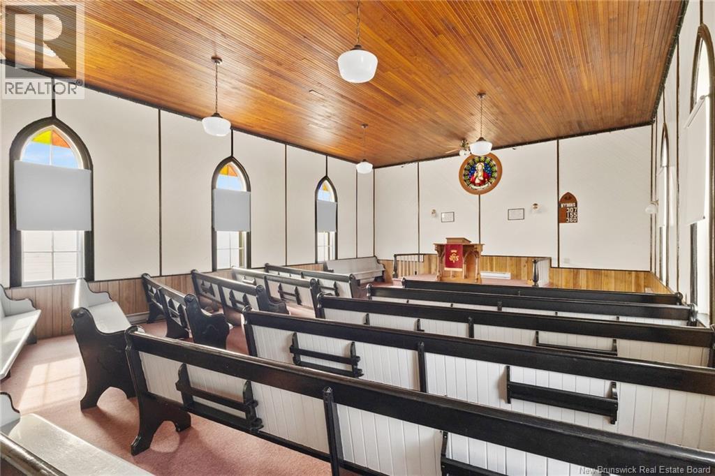 Opportunity awaits with this 44 x 24 former church building, offering incredible potential for a variety of future uses. This well-maintained structure features beautiful wood ceilings and walls, adding warmth and character throughout the space. The charming stained glass windows provide unique architectural detail and fill the interior with natural light. Equipped with a 200-amp electrical panel, electric heat, and central vacuum, the building already includes several modern conveniences. With its open layout and solid construction, it presents an excellent opportunity for conversion into a cozy cottage, bungalow, studio, or creative retreat. Building must be moved to a new location with the concrete crawl space removed and filled in, making this a great option for buyers looking to relocate a distinctive structure with character and history. A rare chance to transform a unique building into something truly special. Church pews have been removed. Unknown at this time if HST is applicable to this sale. (id:34572)