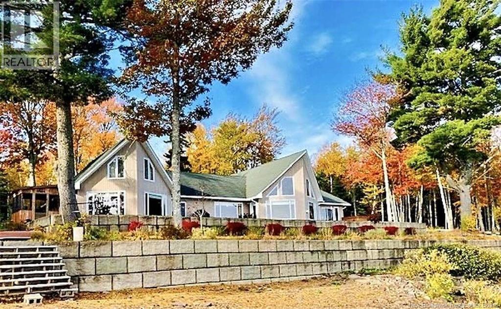 For more information, please click Multimedia button. Looking for lakeside living at its best? This executive-style double prow front home on Grand Lake offers year-round luxury & breathtaking waterfront views. Grand Lake is the provinces largest body of water & among the most stunning on the East Coast. Enter at grade level from the paved driveway into a spacious open-concept layout designed for entertaining and family gatherings. The great room flows into a stylish kitchen, all overlooking the lake. The main floor includes a lakeview master with ensuite, walk-in closet, and additional laundry hookup, plus a large guest bedroom with more incredible views. Bonus rooms above the garage offer space for extra guests, games room, or home office. The attached garage connects to a dedicated laundry/mudroom, perfect for daily convenience. Outside, enjoy a resort-like concrete patio, hot tub, and approx 800 ft of shoreline with two boat access points. Soak in the sights & sounds of nature, including bald eagles soaring overhead. Built for comfort & peace of mind, the home remained untouched during Grand Lakes 2018 flood. Located just 30 min from Oromocto & 45 min from Fredericton, with amenities and emergency services only 10 min away, this is an extraordinary opportunity to live the lakefront dream. Whether you enjoy boating, fishing, or simply relaxing by the water, this home delivers the ideal mix of privacy, elegance, & recreation in one of the most sought-after locations. (id:34572)