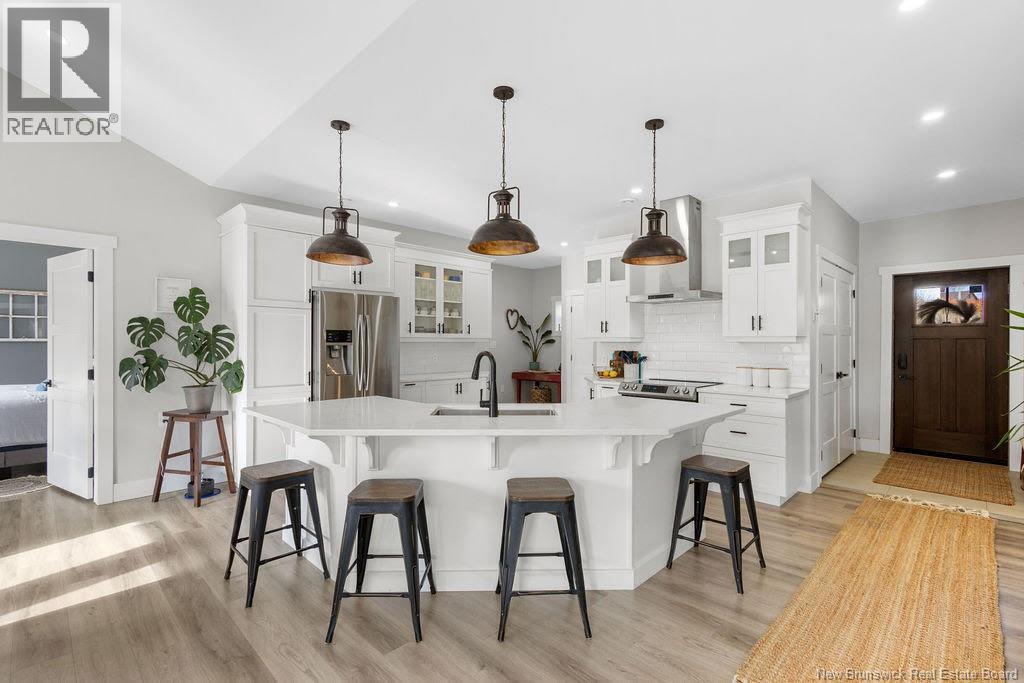 Built in 2022, this stunning waterfront home blends modern design, quality craftsmanship, and peaceful riverfront living. Constructed with a full ICF foundation (right up to the rafters) for exceptional efficiency, durability, and year-round comfort, this home offers five spacious bedrooms and 2½ baths between the two levels. The main floor features an open-concept layout with abundant natural light, two bedrooms, including a beautiful primary suite with a private en suite, and a separate pantry room just off the well-designed kitchen. Step onto the large front deck and take in the incredible river views, perfect for morning coffee or evening sunsets. The propertys thoughtful placement and mature surroundings provide a wonderful sense of privacy and seclusion, allowing you to fully enjoy the serene waterfront setting. The fully finished walk-out basement provides excellent income potential, featuring three additional bedrooms, its own kitchenette, and a separate entranceideal for a rental suite, extended family, or guests. With a single attached garage and located in a wonderful, family-friendly neighbourhood just 15 minutes from Miramichi, this property offers the best of both convenience and tranquility. (id:34572)