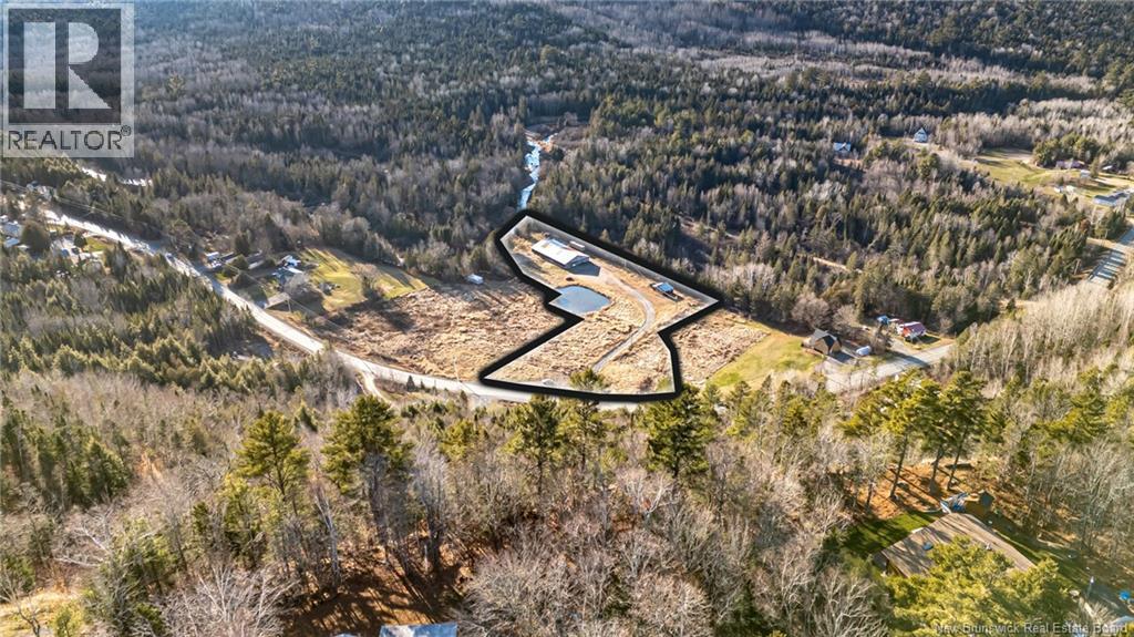 This unique 3.95-acre property offers space, flexibility, and a rare setting this close to Fredericton. Located approximately 2 km outside city limits, the land backs onto Nashwaaksis Stream and includes a large pond near the main structure. Set back from the road and separated by a large field and pasture area on a gradual slope, the property offers a strong sense of privacy with easy access. The main 60' x 100' building, built in 1996, is suited to a wide range of uses, including storage, livestock, machinery, vehicles, or a home-based business. It features a cement floor throughout the lower level, a large bay for equipment or vehicles, and a full second storey running the length of the building. There is overhead power service with lighting and electrical outlets throughout, plus a dusk-to-dawn outdoor light. Infrastructure includes a well drilled in 1996, a cement septic tank installed around 2010, a new oil furnace in 2022, a newer oil tank, and an automated watering system on both levels. A separate 20' x 30' outbuilding adds more flexibility. It does not currently have power connected, but has been serviced in the past and is not attached to the main building, well, or septic. There is also additional storage on site in a tractor-trailer cargo bed. With cleared land, rough-graded landscaping, a widened gravel driveway, and a large gravel yard, this property offers practical features and plenty of potential just outside Fredericton. (id:34572)