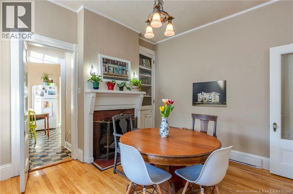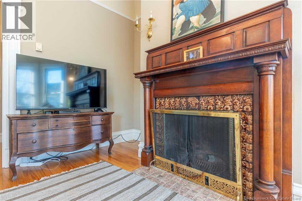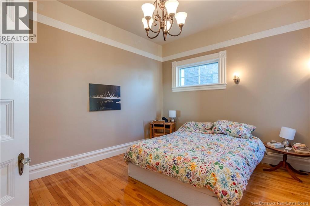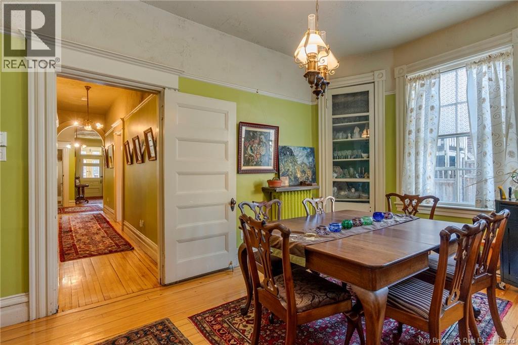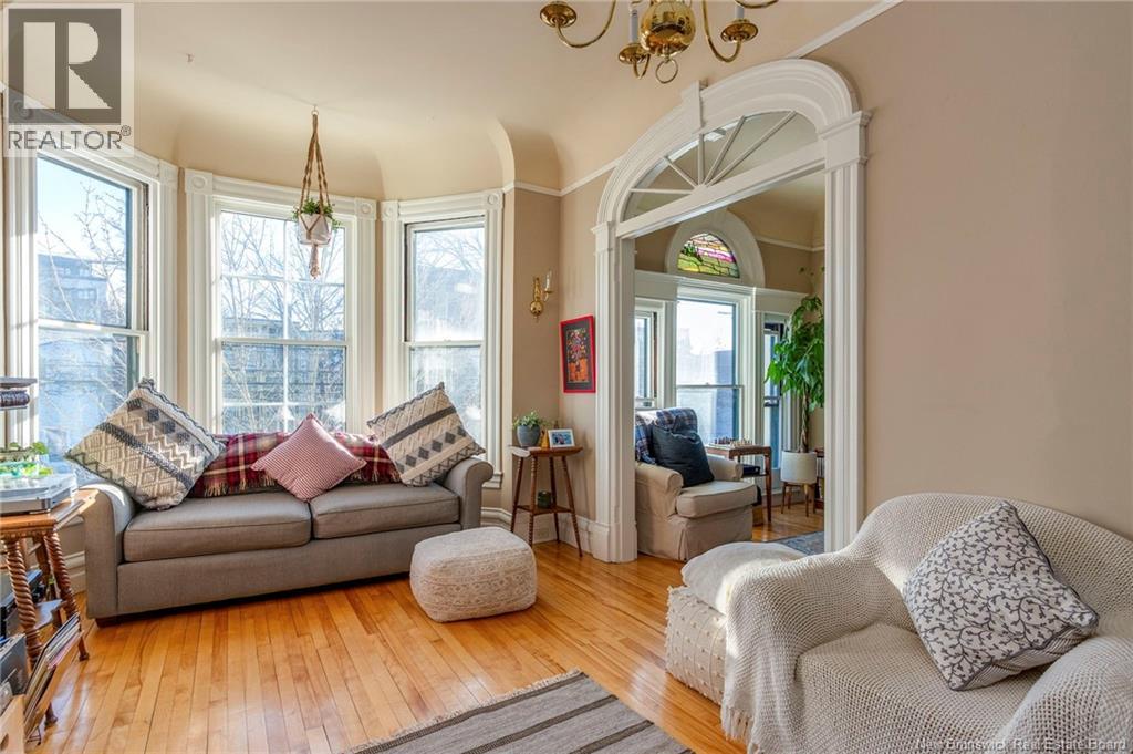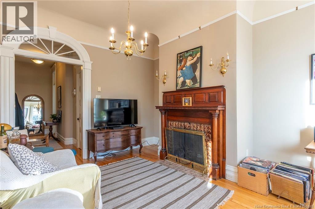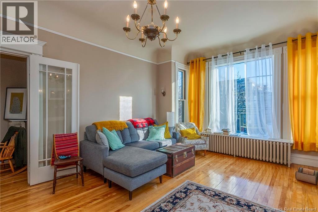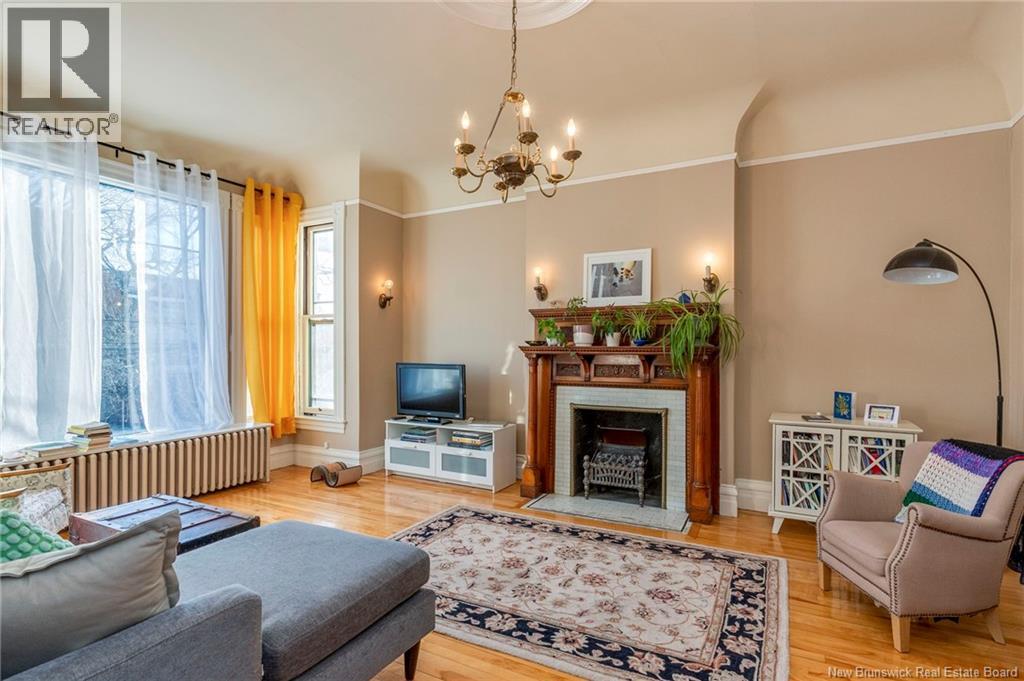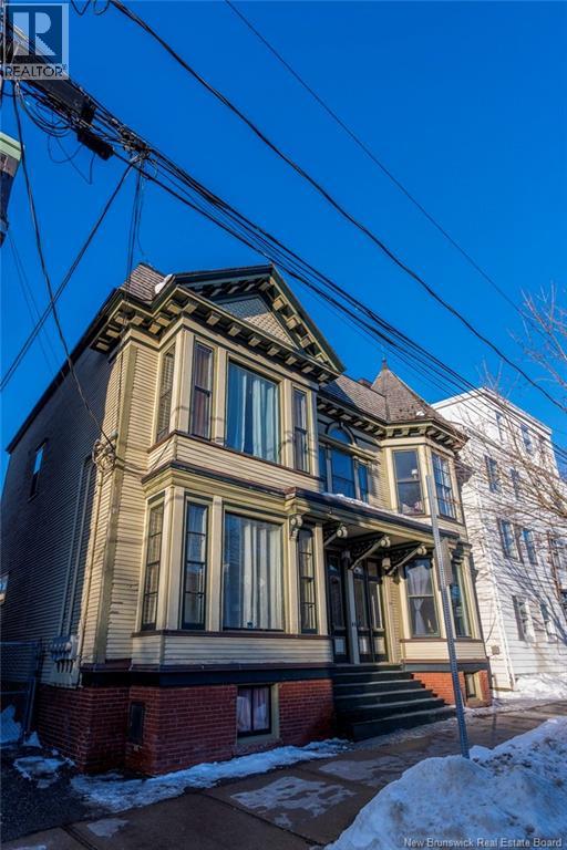 This 1905 Queen Anne style Henderson House, stands among the most distinguished heritage properties on King Street East, set within a streetscape of mature trees and historic homes that predate the Great Fire of 1877. Its exterior displays scalloped cedar shingles, stained glass, bay and hexagonal windows, dentils, double entry doors, and a copper capped turret. Within walking distance of King Square and the City Market, the property offers over 6,000 sqft of living space with high ceilings, working fireplaces, in floor heating, and well preserved woodwork. The owners unit exceeds 2,800 sqft and includes four bedrooms, three bathrooms, hardwood flooring, two fireplaces, a finished basement suited to study or recreation, and a rear shed with a workshop, a layout that could rent for approximately $2,500 per month. Three additional rental units, two two bedroom apartments and one one bedroom apartment, retain character through hardwood or softwood flooring, fireplaces, French doors, generous bedrooms, and detailed moldings. All units are separately metered with long term tenants in place. Current rents total roughly $89,400 annually, while estimated expenses of $10,800 for heat, $450 for the house meter, $6,761 for taxes, $2,640 for water and sewer, and $6,222 for insurance produce approximate annual costs of $26,873 and an estimated net income of $62,527, offering a rare chance to acquire a landmark with lasting appeal. (id:34572)
