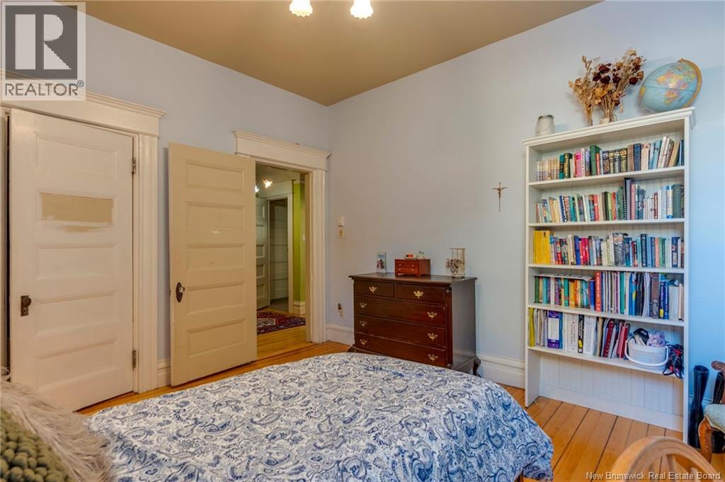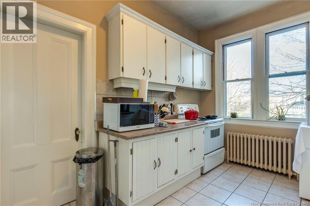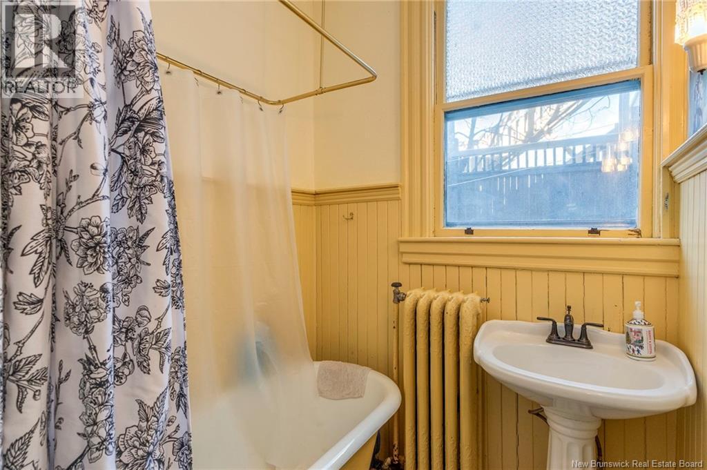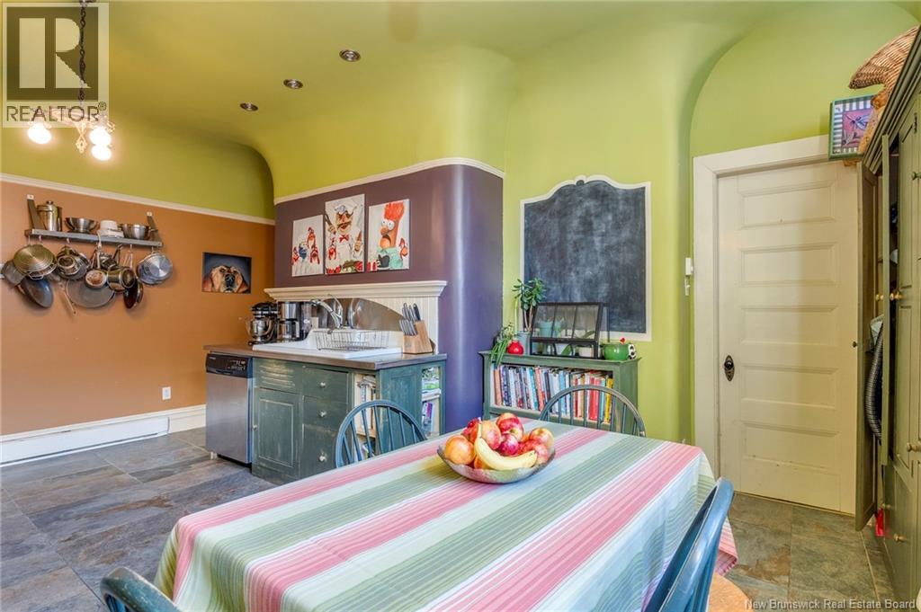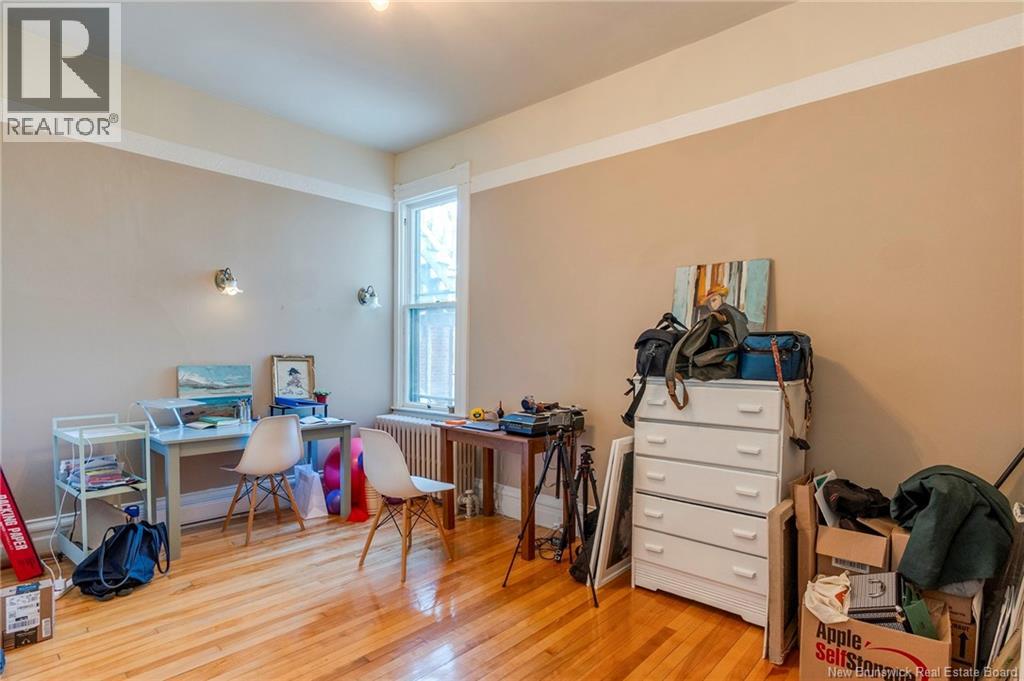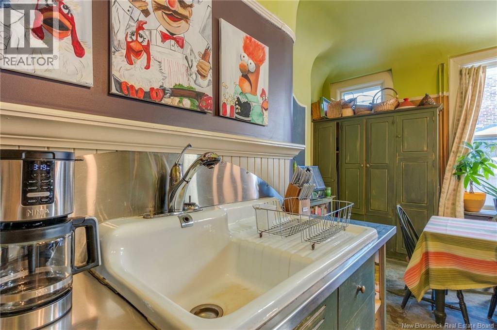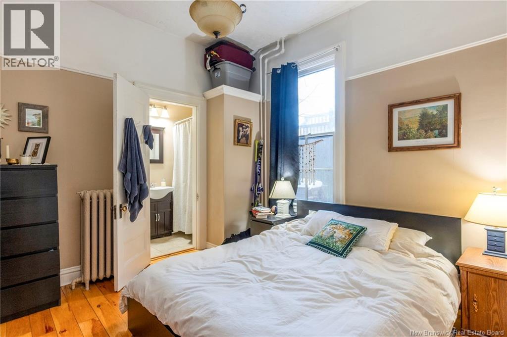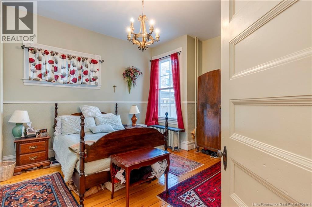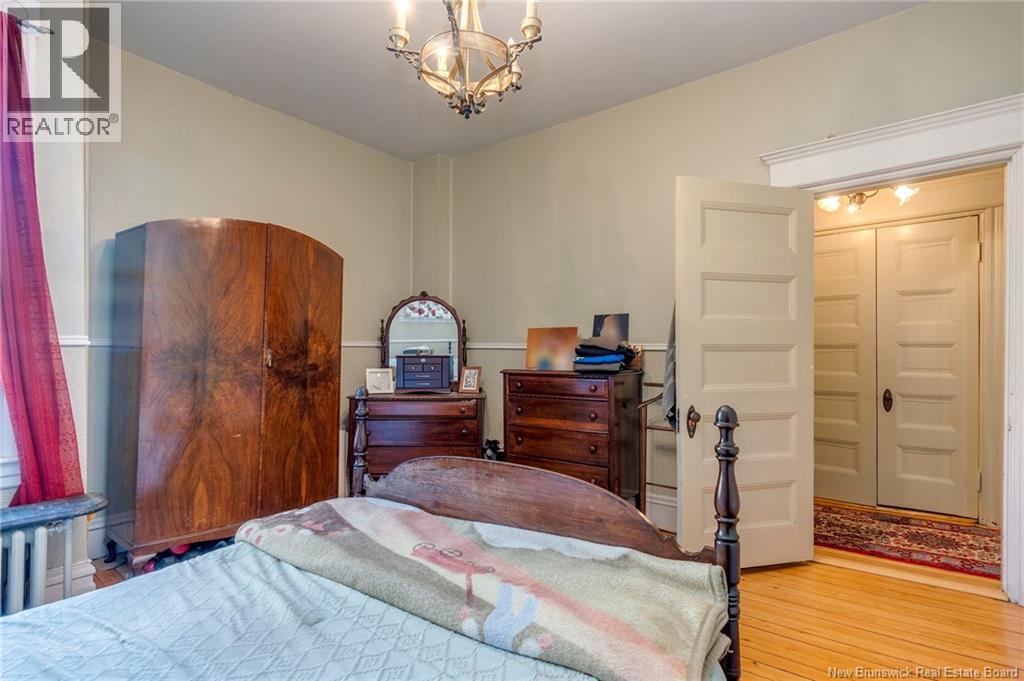 This 1905 Queen Anne style Henderson House, stands among the most distinguished heritage properties on King Street East, set within a streetscape of mature trees and historic homes that predate the Great Fire of 1877. Its exterior displays scalloped cedar shingles, stained glass, bay and hexagonal windows, dentils, double entry doors, and a copper capped turret. Within walking distance of King Square and the City Market, the property offers over 6,000 sqft of living space with high ceilings, working fireplaces, in floor heating, and well preserved woodwork. The owners unit exceeds 2,800 sqft and includes four bedrooms, three bathrooms, hardwood flooring, two fireplaces, a finished basement suited to study or recreation, and a rear shed with a workshop, a layout that could rent for approximately $2,500 per month. Three additional rental units, two two bedroom apartments and one one bedroom apartment, retain character through hardwood or softwood flooring, fireplaces, French doors, generous bedrooms, and detailed moldings. All units are separately metered with long term tenants in place. Current rents total roughly $89,400 annually, while estimated expenses of $10,800 for heat, $450 for the house meter, $6,761 for taxes, $2,640 for water and sewer, and $6,222 for insurance produce approximate annual costs of $26,873 and an estimated net income of $62,527, offering a rare chance to acquire a landmark with lasting appeal. (id:34572)
