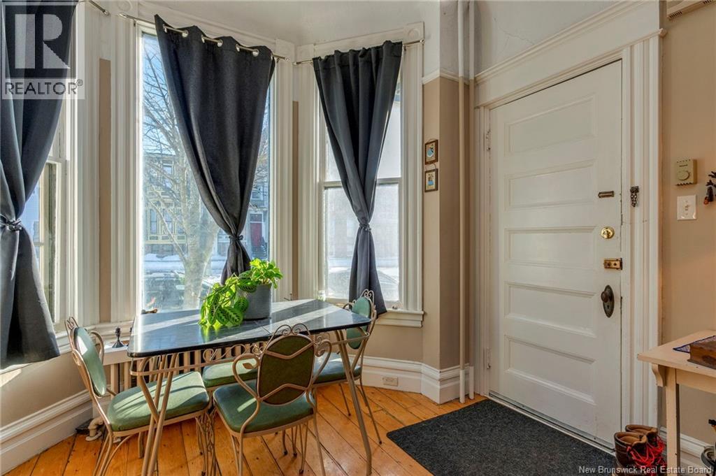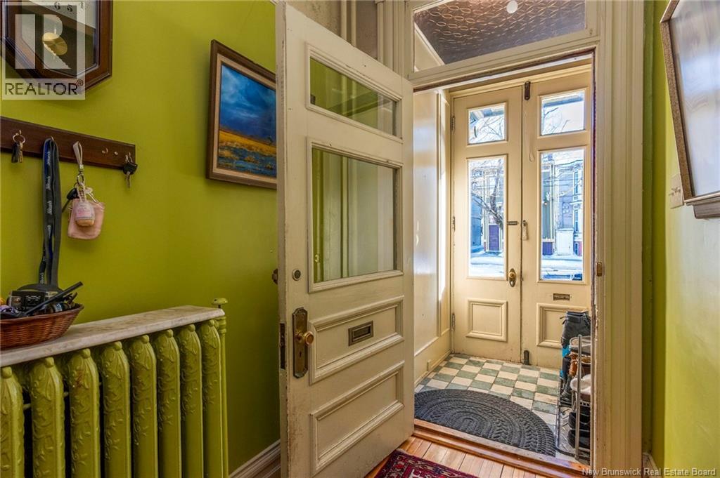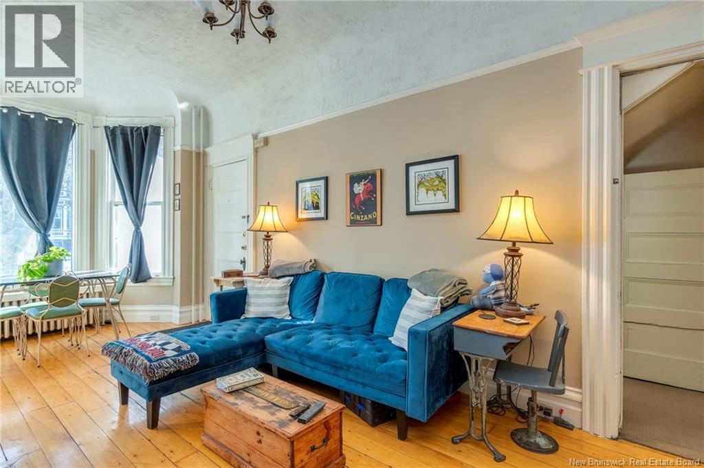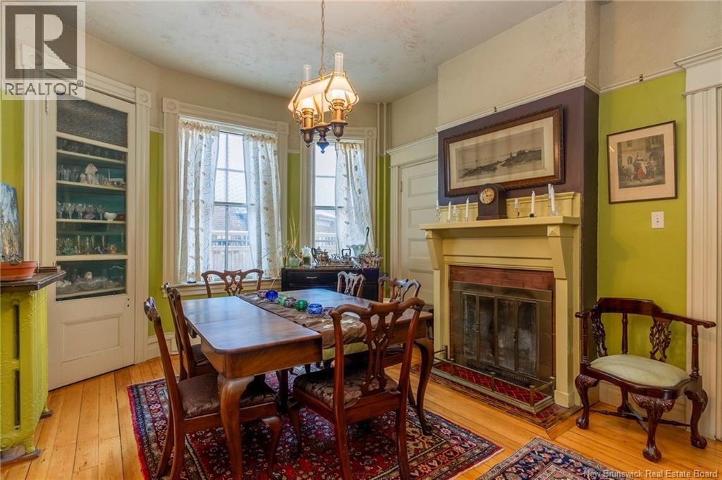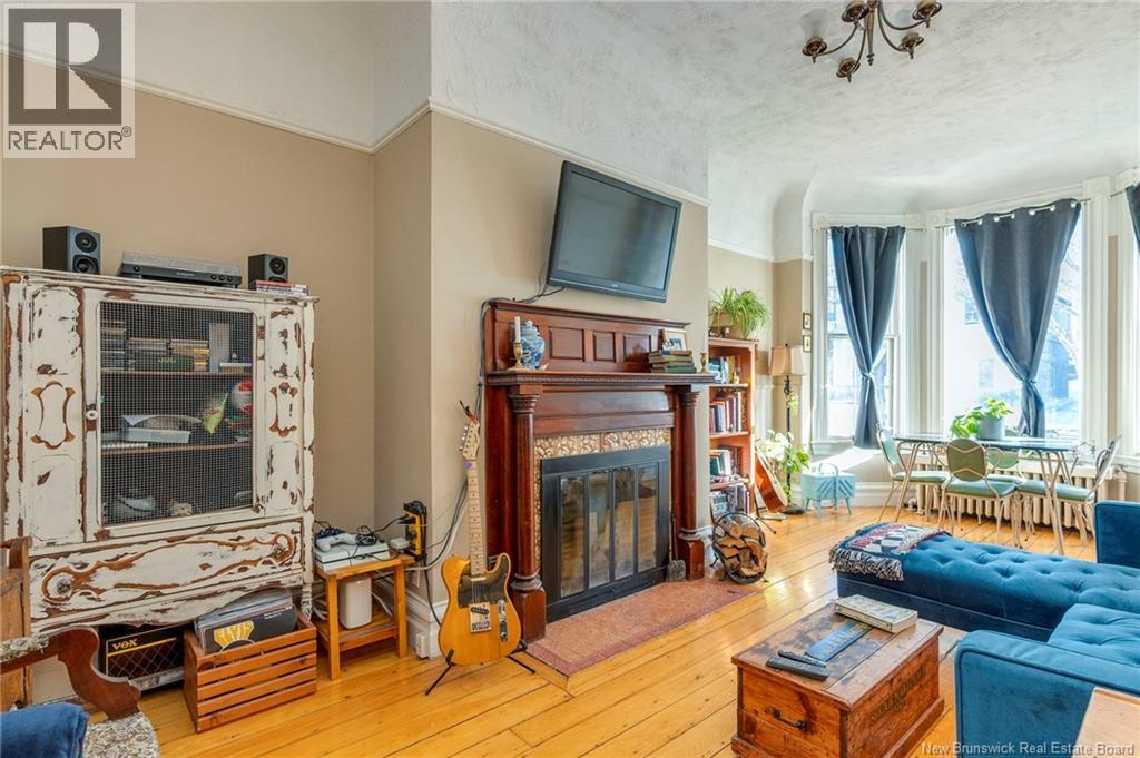 This 1905 Queen Anne style Henderson House, stands among the most distinguished heritage properties on King Street East, set within a streetscape of mature trees and historic homes that predate the Great Fire of 1877. Its exterior displays scalloped cedar shingles, stained glass, bay and hexagonal windows, dentils, double entry doors, and a copper capped turret. Within walking distance of King Square and the City Market, the property offers over 6,000 sqft of living space with high ceilings, working fireplaces, in floor heating, and well preserved woodwork. The owners unit exceeds 2,800 sqft and includes four bedrooms, three bathrooms, hardwood flooring, two fireplaces, a finished basement suited to study or recreation, and a rear shed with a workshop, a layout that could rent for approximately $2,500 per month. Three additional rental units, two two bedroom apartments and one one bedroom apartment, retain character through hardwood or softwood flooring, fireplaces, French doors, generous bedrooms, and detailed moldings. All units are separately metered with long term tenants in place. Current rents total roughly $89,400 annually, while estimated expenses of $10,800 for heat, $450 for the house meter, $6,761 for taxes, $2,640 for water and sewer, and $6,222 for insurance produce approximate annual costs of $26,873 and an estimated net income of $62,527, offering a rare chance to acquire a landmark with lasting appeal. (id:34572)