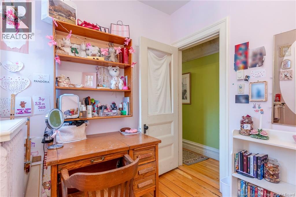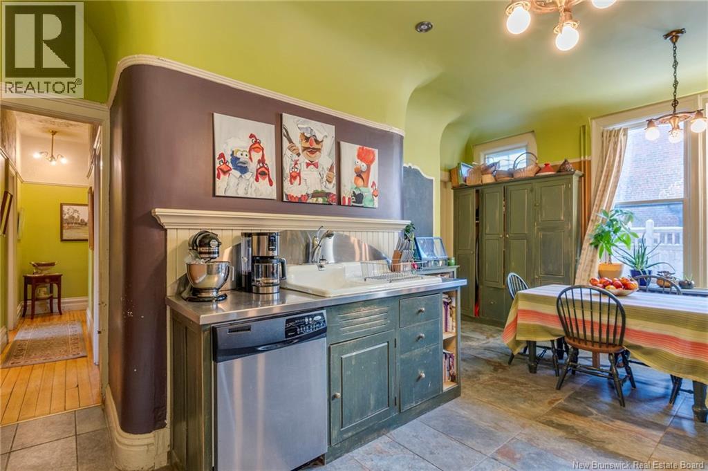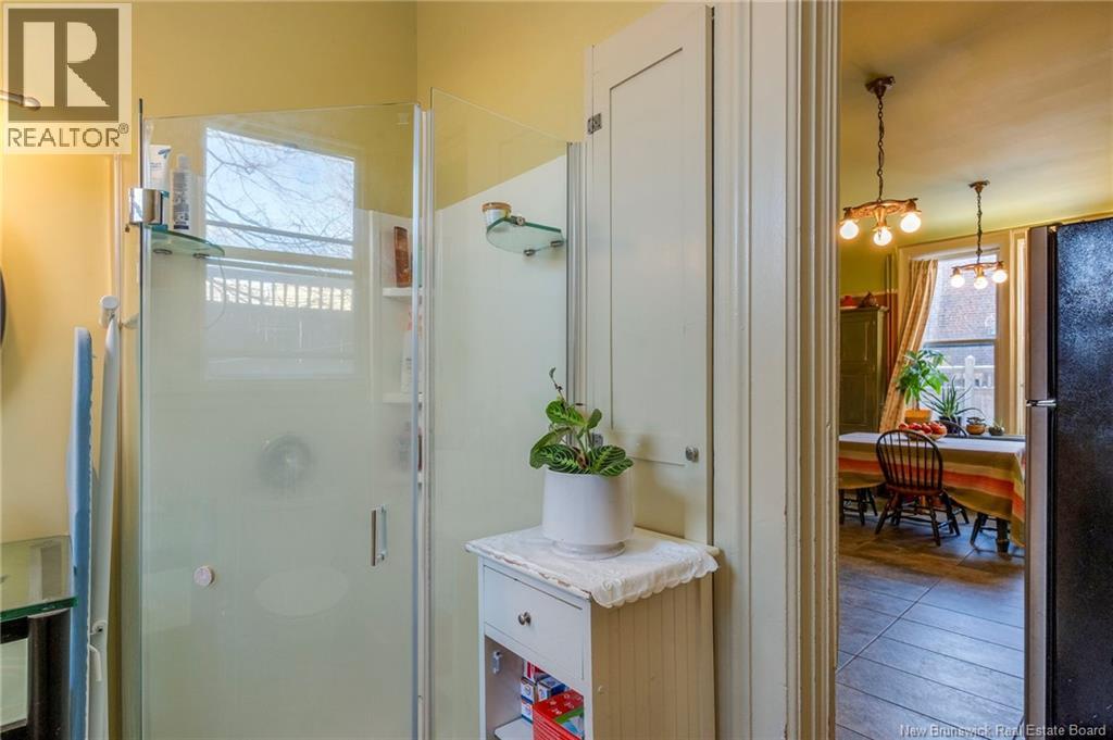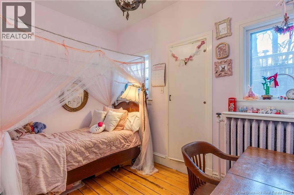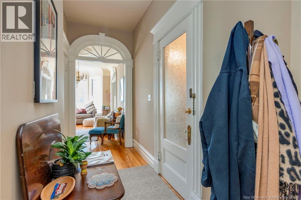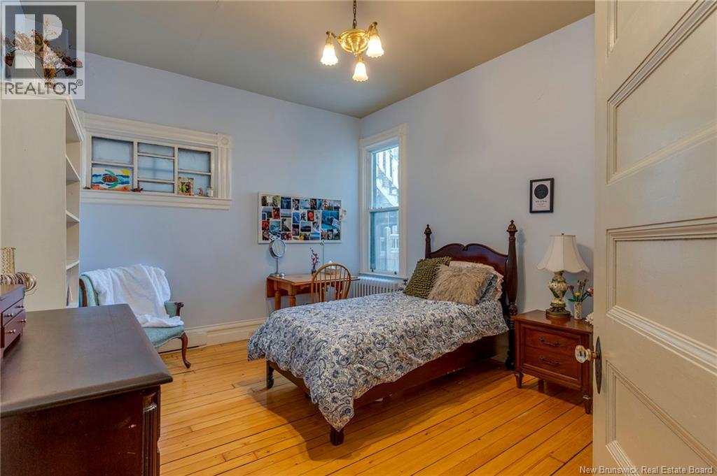 This 1905 Queen Anne style Henderson House, stands among the most distinguished heritage properties on King Street East, set within a streetscape of mature trees and historic homes that predate the Great Fire of 1877. Its exterior displays scalloped cedar shingles, stained glass, bay and hexagonal windows, dentils, double entry doors, and a copper capped turret. Within walking distance of King Square and the City Market, the property offers over 6,000 sqft of living space with high ceilings, working fireplaces, in floor heating, and well preserved woodwork. The owners unit exceeds 2,800 sqft and includes four bedrooms, three bathrooms, hardwood flooring, two fireplaces, a finished basement suited to study or recreation, and a rear shed with a workshop, a layout that could rent for approximately $2,500 per month. Three additional rental units, two two bedroom apartments and one one bedroom apartment, retain character through hardwood or softwood flooring, fireplaces, French doors, generous bedrooms, and detailed moldings. All units are separately metered with long term tenants in place. Current rents total roughly $89,400 annually, while estimated expenses of $10,800 for heat, $450 for the house meter, $6,761 for taxes, $2,640 for water and sewer, and $6,222 for insurance produce approximate annual costs of $26,873 and an estimated net income of $62,527, offering a rare chance to acquire a landmark with lasting appeal. (id:34572)