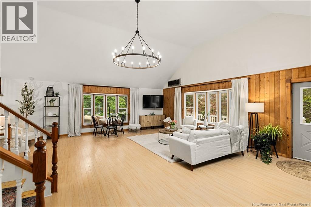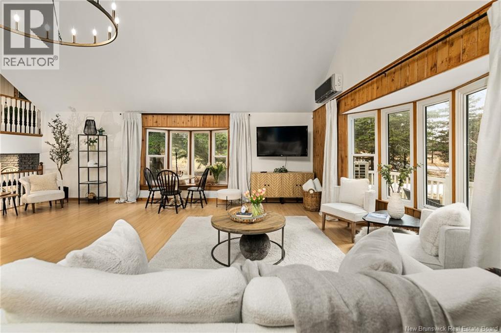 Welcome to this beautiful one-owner home, offering over 3,100 sq. ft. of living space on just over an acre of private, tree-lined land. From the moment you arrive, youll appreciate the peaceful country setting and the inviting covered front deckperfect for morning coffee or relaxing at the end of the day. Inside, youre greeted with bright, open-concept living. The stunning white kitchen is the heart of the home, featuring stainless steel appliances and a walk-in pantry with its own sinkideal for meal prep or a stylish coffee bar. The kitchen opens to a cozy dining area with charming built-in window seats and a wood stove for added warmth. An expansive living room with a secondary dining space overlooks the serene backyard, creating an ideal spot for entertaining or quiet evenings at home. With 4 spacious bedrooms, theres plenty of room for the whole family. The primary suite includes a walk-in closet and a 4-piece ensuite complete with a soaker tub. For convenience, main floor laundry is just steps away. Step outside and enjoy the possibilities of the large yard, featuring a gazebo, firepit area, and even a chicken coop that could double as a fun hobby or small side business. A triple detached garage offers abundant space for vehicles, storage, or a workshop. Just minutes from Costco, Irishtown Nature Park, amenities, and 2 golf courses. New metal roof 2025. Current taxes reflect non-owner occupancy; new owners can expect to pay approximately half the amount shown. (id:34572)