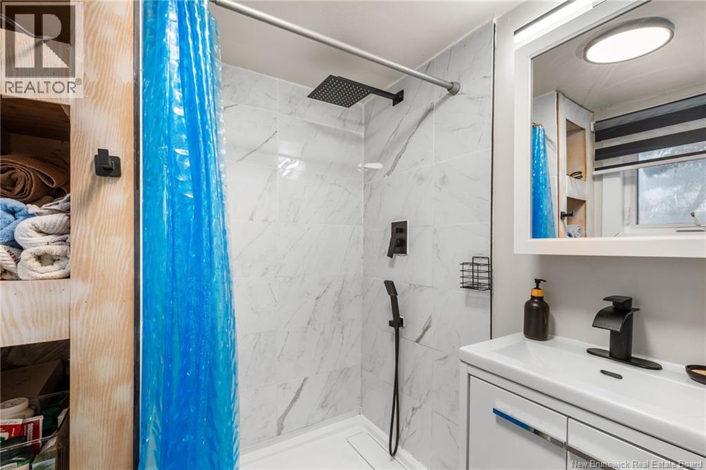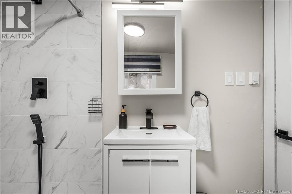 Welcome to 130 Salter Avenue, a charming bungalow located in the heart of central Moncton, close to all amenities. This inviting home begins with a sun-filled enclosed front porch leading into a cozy living room featuring modern vinyl flooring. The living space flows into the bright eat-in kitchen with crisp white cabinetry, a clean white backsplash, plenty of storage, and matching modern vinyl flooring. The main level offers three comfortable bedrooms and a stylishly renovated 3-piece bathroom with black accents and a large stand-up shower with an overhead showerhead. The main floor was remodeled in 2023, providing the home with a fresh and updated feel. Four new windows were installed on the lower level two years ago, enhancing the space and allowing for plenty of natural light. In 2025, most of the lower level was finished to create additional living space, now offering a comfortable family room along with a versatile area ideal for a home office, gym, or playroom. This level also includes an unfinished laundry room and an additional storage area. Outside, enjoy a spacious back patio completed in 2023, a detached single-car garage, a baby barn, and a nicely sized yard with a few mature trees. Additional updates include two ductless mini-splits installed approximately 2.5 years ago for year-round comfort. This move-in-ready home offers great updates in a convenient location, what more could you ask for?!? (id:34572)