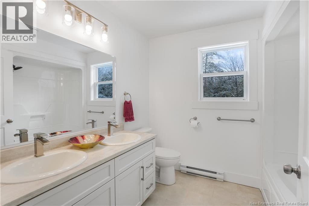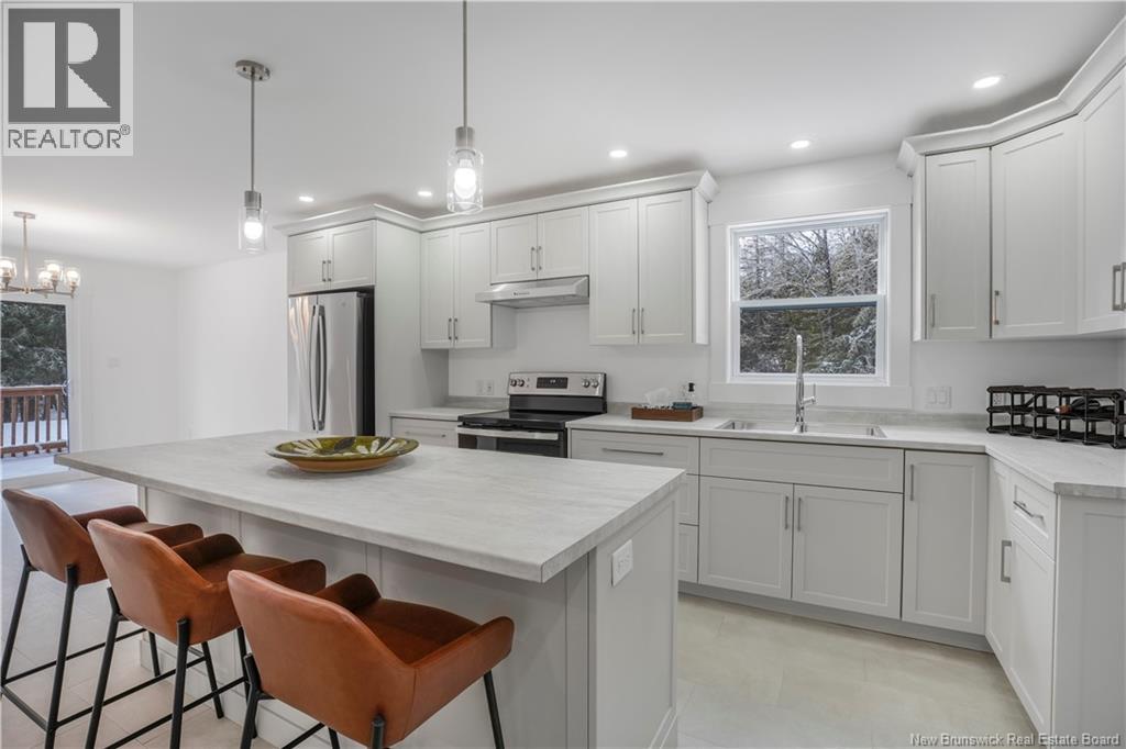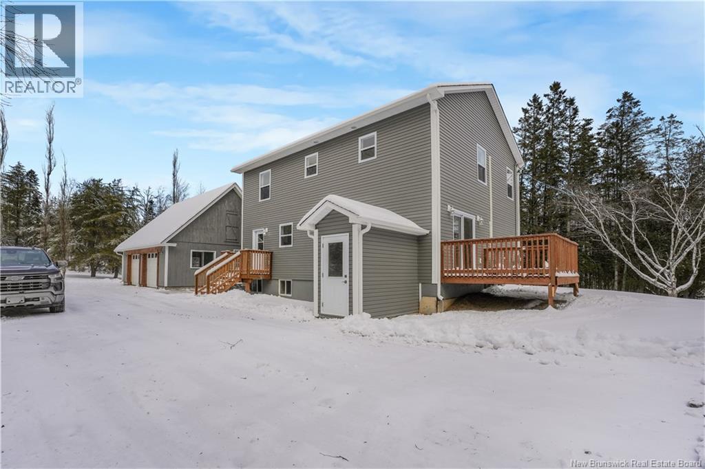 This new construction home sits on a private 5-acre lot surrounded by mature trees, offering a peaceful, quiet setting without sacrificing convenience. The main level includes a large living area, a modern open-concept kitchen and dining space, and a main-floor office/bedroom. Upstairs, you'll find three well-sized bedrooms with the master having its own ensuite bathroom and walk-in closet. The basement has its own entrance, creating added flexibility. A detached double-car garage is a great bonus. Located just 15 minutes from Fredericton and minutes to Mactaquac Provincial Park, the marina, and golf course, with easy access to Crabbe Mountain and local ATV and snowmobile trails. (id:34572)