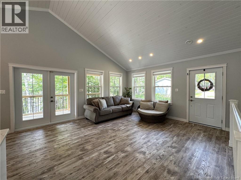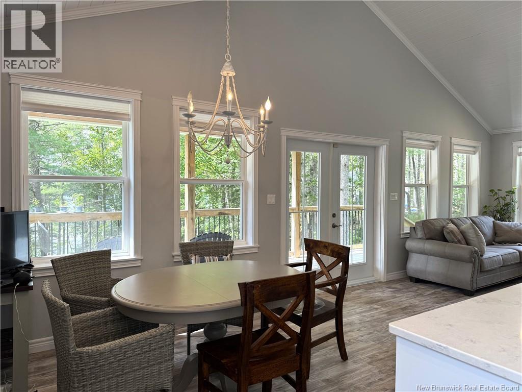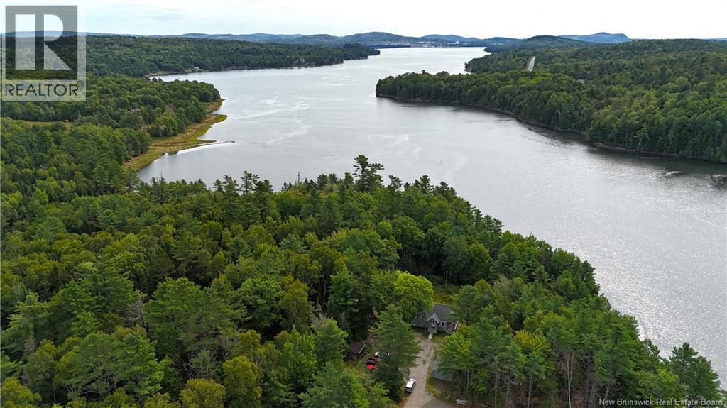 Located between St. Stephen and St. Andrews on Pine Point Road, off the Ledge Road, is this waterfront property that is guaranteed to impress. Set on 74 acres of mature trees and natural growth is this PRISTINE four bedroom, three bath, one owner home overlooking the historic St. Croix River. This property has been lovingly maintained by the original owners and shows as new. This is a quality build where both the craftsmanship and the quality of materials used is number one. The home has an efficient and comfortable layout with the open concept kitchen, dining area and living room all under a beautiful cathedral ceiling, on the main level. Also on the main level are two bedrooms, the primary with an ensuite bath, and the second bedroom with direct access to the other full bath. Access to the deck overlooking the waterfront area is found just off the dining area. Downstairs are two bedrooms, another full bath, the mechanical room with laundry area, and a large rec room with a walk out towards the waterfront. The detached garage has ample room for your vehicle and a workshop. While the property consists of approximately 74 acres of mature growth, and there is a long and winding gravel road stretching from the Ledge Road to this waterfront property, there are neighbors in the immediate waterfront area that share the road and costs associated so road maintenance costs are minimal. This is a spectacular property that must be seen to be appreciated. Call now to schedule a viewing. (id:34572)