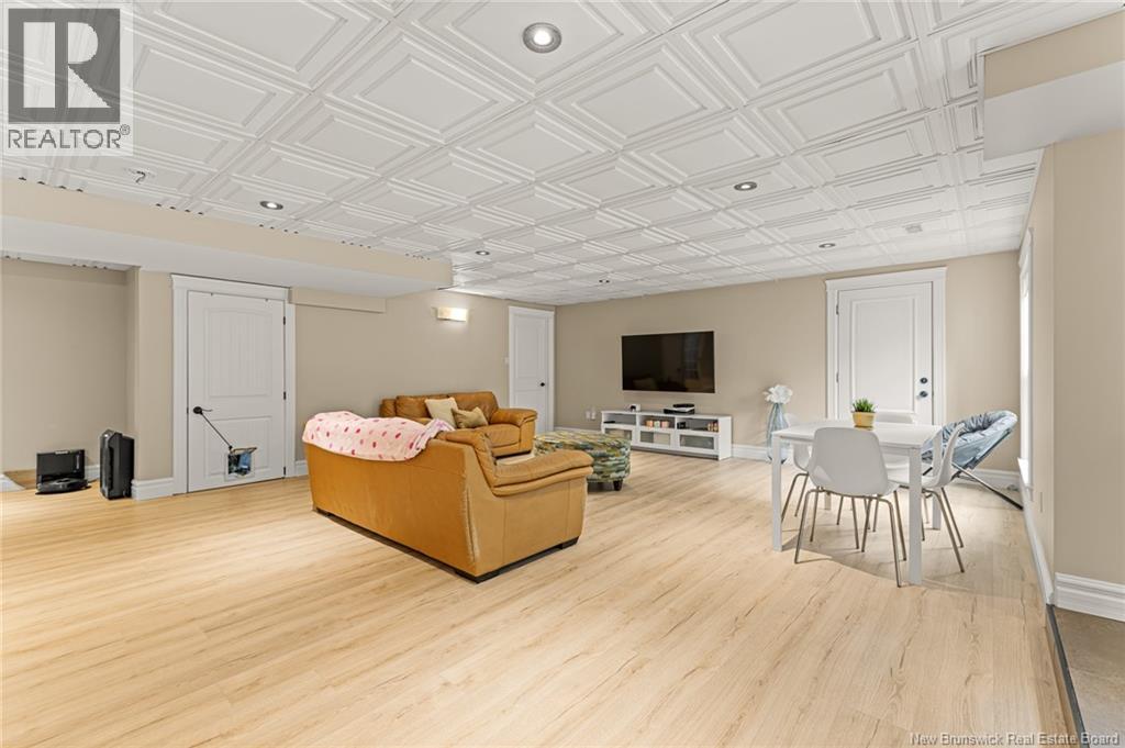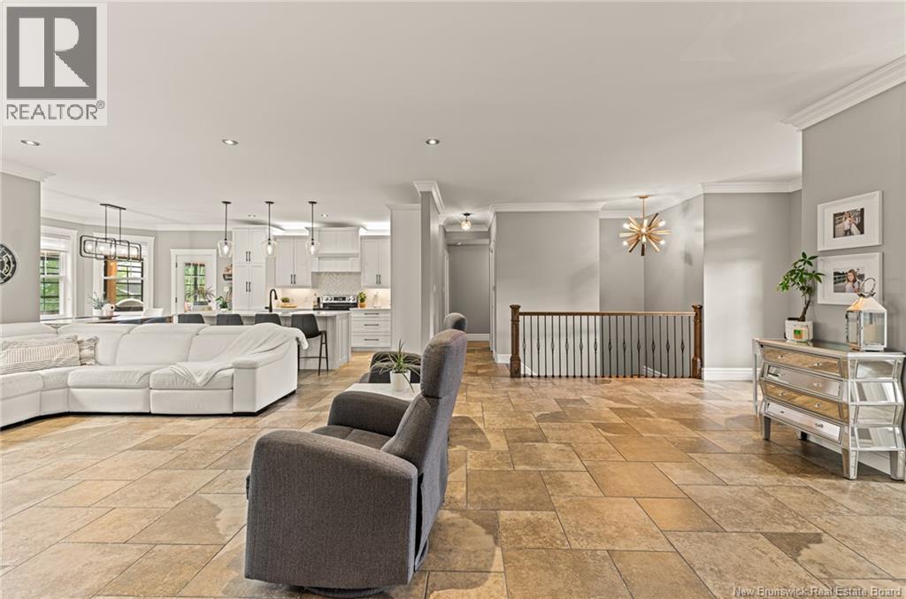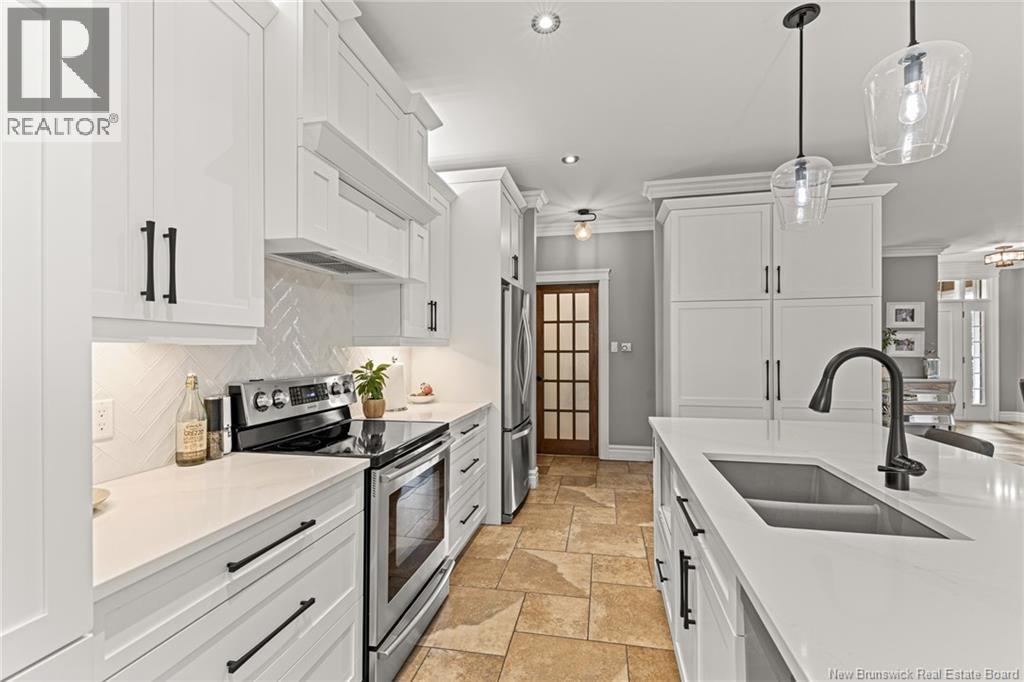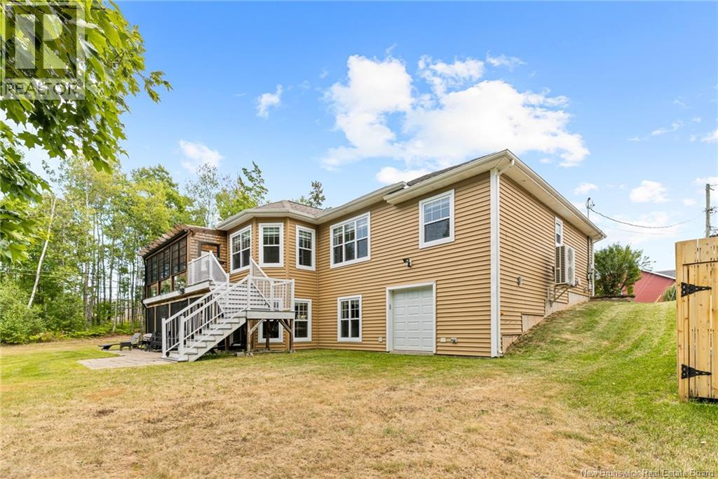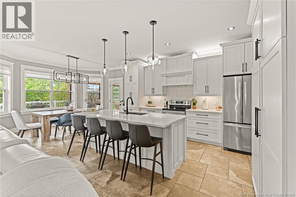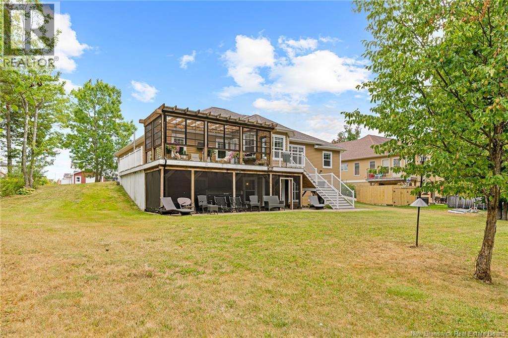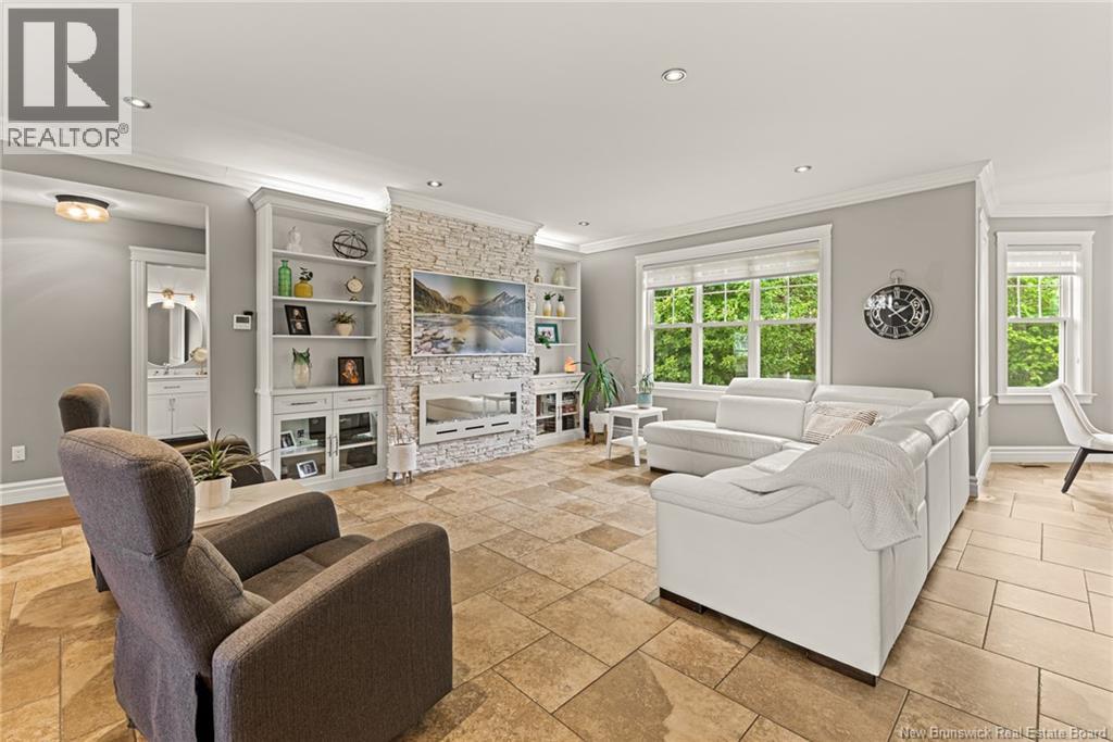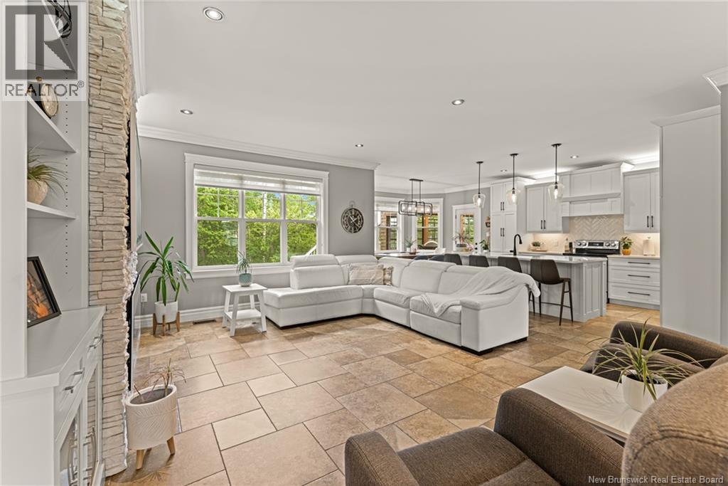 EXECUTIVE BUNGALOW | 9FT CEILINGS | PRIVATE BACKYARD | WALK-OUT | LARGE 3-SEASON SUNROOM | NEW CENTRAL HEAT/COOLING SYSTEM | Welcome to 14 Jeannita, a stunning executive bungalow located in the charming coastal town of Shediac. This beautifully designed home features an attached oversized DOUBLE GARAGE and a bright, modern white kitchen with stainless steel appliances, QUARTZ COUNTERTOPS, stylish backsplash, a spacious island with seating for four, and a generous WALK-IN PANTRY/storage area. The kitchen opens into a sun-filled dining area and an inviting open-concept living room, complete with a striking entertainment wall featuring stone accents and an electric fireplace. The main level offers three bedrooms, including a spacious primary suite with a combined laundry and WALK-IN CLOSET, along with a private ensuite featuring both a soaking tub and a CUSTOM TILE SHOWER. A large 3-SEASON SUNROOM extends your living space and provides a peaceful spot to unwind. The fully finished WALK-OUT basement adds even more versatility with a fourth bedroom, a powder room, a bonus room, and direct access to a screened-in porch overlooking the private, tree-lined backyard. Outside, enjoy the large HOT TUB (standard cover to be included - electric cover not included) perfect for year-round relaxation. A convenient rear garage on the lower level offers extra storage. Located just minutes from Shediac schools, grocery stores, pharmacy, Parlee Beach, and highway access. This one is a must-see! (id:34572)