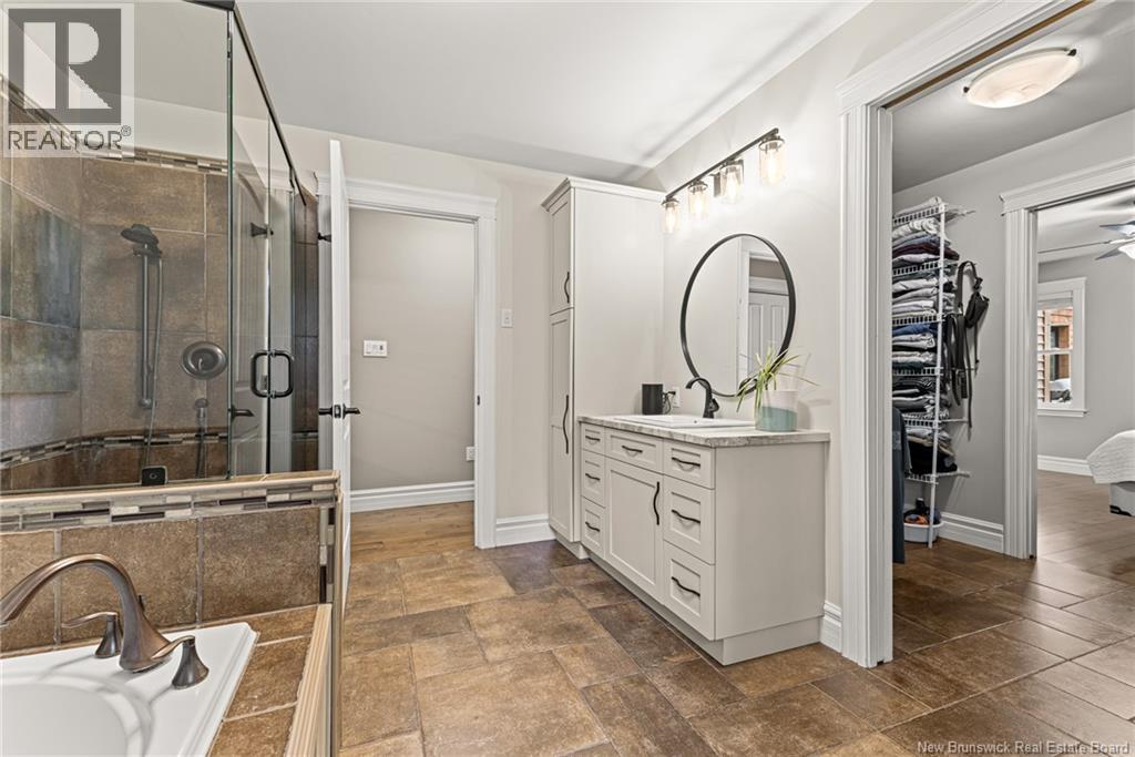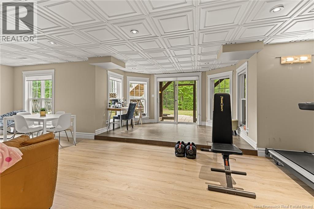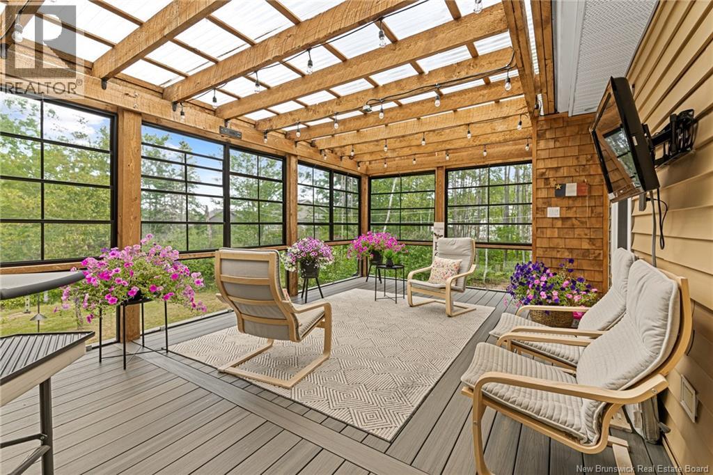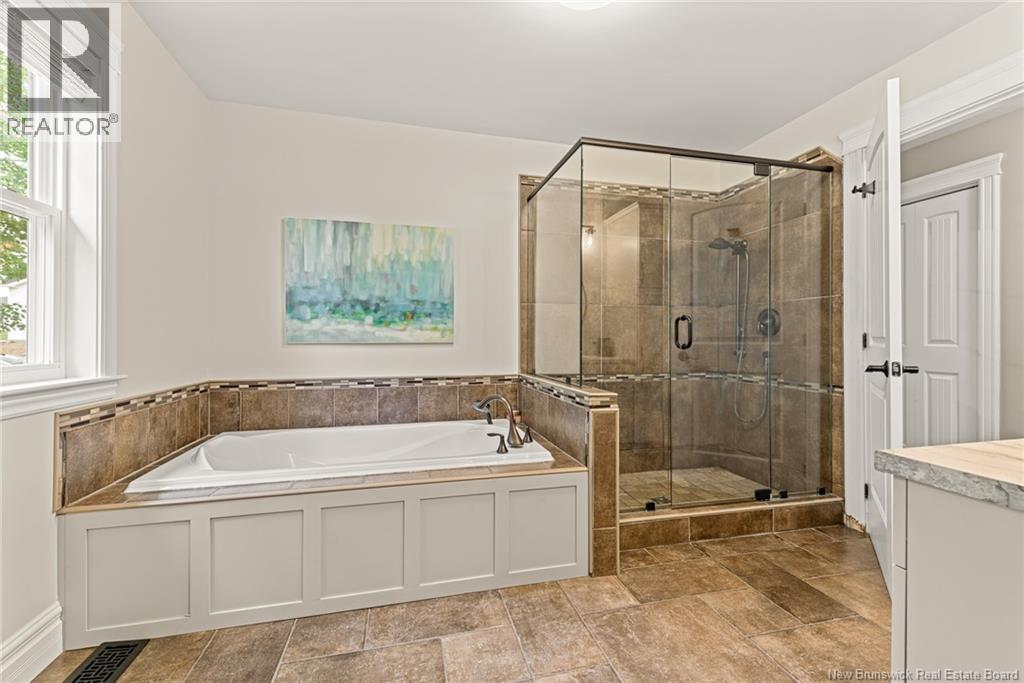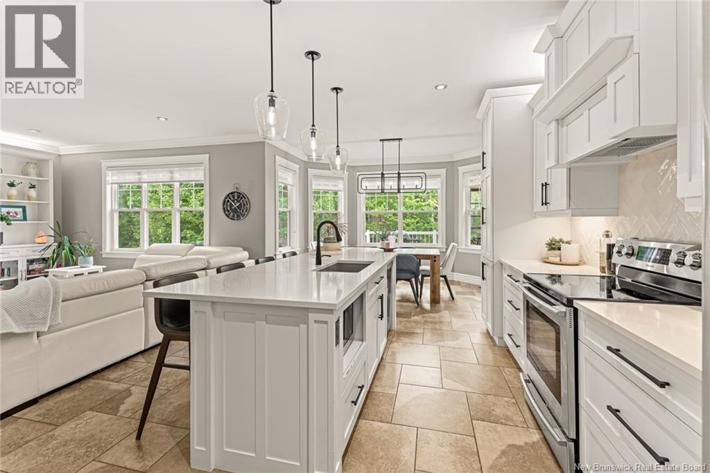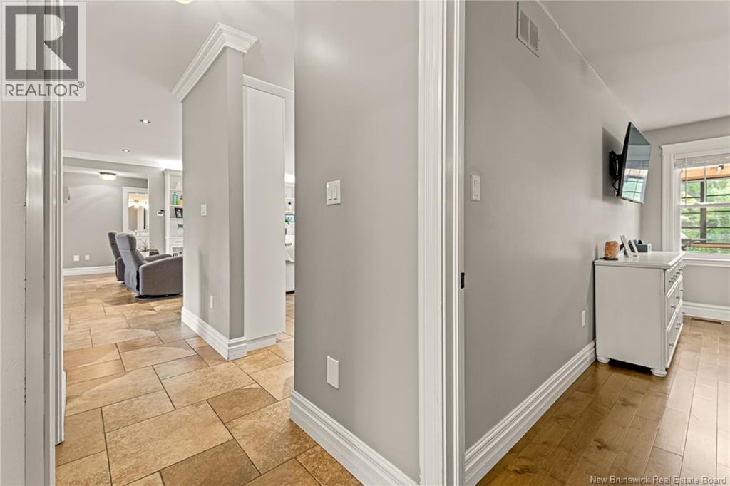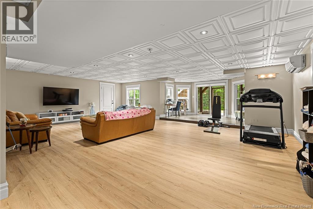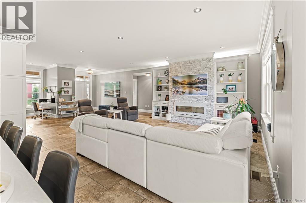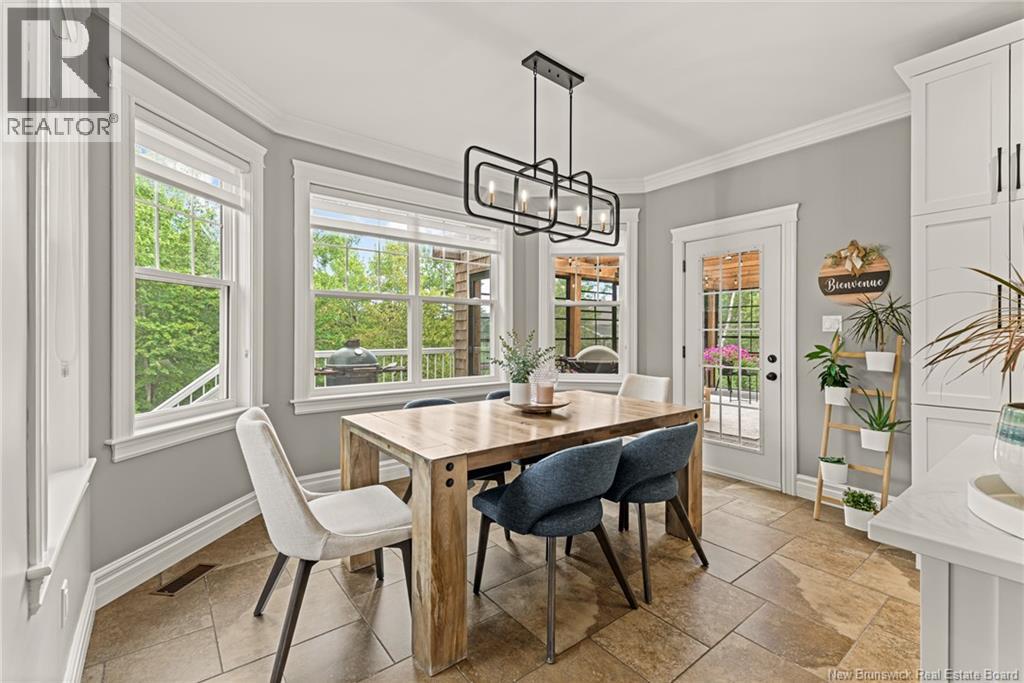 EXECUTIVE BUNGALOW | 9FT CEILINGS | PRIVATE BACKYARD | WALK-OUT | LARGE 3-SEASON SUNROOM | NEW CENTRAL HEAT/COOLING SYSTEM | Welcome to 14 Jeannita, a stunning executive bungalow located in the charming coastal town of Shediac. This beautifully designed home features an attached oversized DOUBLE GARAGE and a bright, modern white kitchen with stainless steel appliances, QUARTZ COUNTERTOPS, stylish backsplash, a spacious island with seating for four, and a generous WALK-IN PANTRY/storage area. The kitchen opens into a sun-filled dining area and an inviting open-concept living room, complete with a striking entertainment wall featuring stone accents and an electric fireplace. The main level offers three bedrooms, including a spacious primary suite with a combined laundry and WALK-IN CLOSET, along with a private ensuite featuring both a soaking tub and a CUSTOM TILE SHOWER. A large 3-SEASON SUNROOM extends your living space and provides a peaceful spot to unwind. The fully finished WALK-OUT basement adds even more versatility with a fourth bedroom, a powder room, a bonus room, and direct access to a screened-in porch overlooking the private, tree-lined backyard. Outside, enjoy the large HOT TUB (standard cover to be included - electric cover not included) perfect for year-round relaxation. A convenient rear garage on the lower level offers extra storage. Located just minutes from Shediac schools, grocery stores, pharmacy, Parlee Beach, and highway access. This one is a must-see! (id:34572)