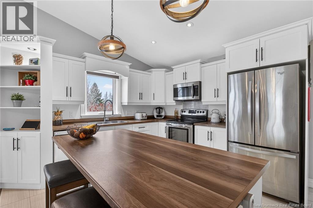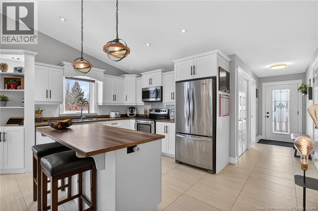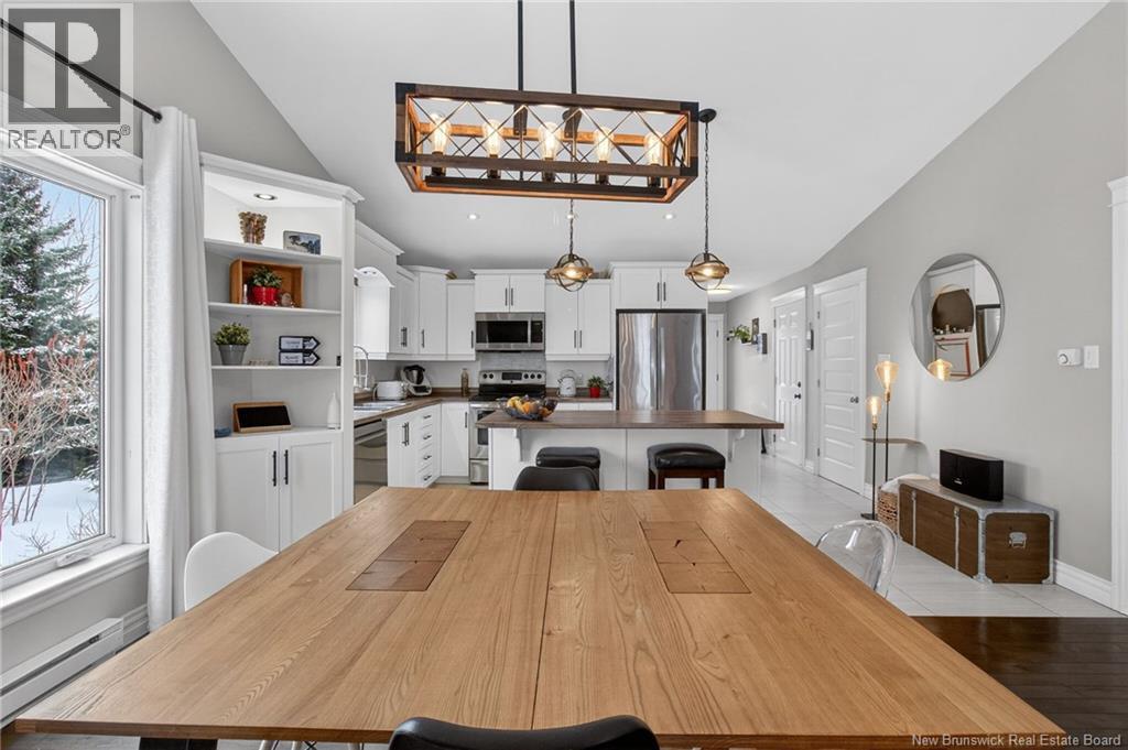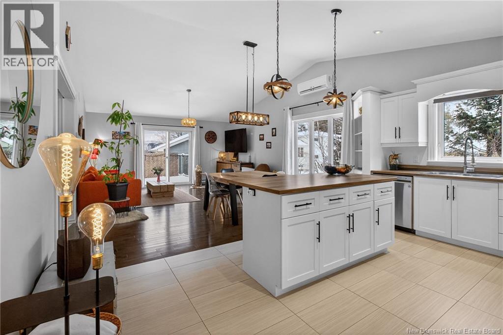 Welcome to 144 Chianti in Dieppe! A well-maintained home located on a quiet cul-de-sac in the heart of Dieppe, close to amenities, restaurants, schools, and walking trails. This beautifully updated semi-detached bungalow offers the perfect blend of modern finishes and functional living space. The bright open-concept main floor features cathedral ceilings, large windows, and a stunning renovated kitchen complete with a spacious island, ample cabinetry, and updated finishes. The dining and living areas flow seamlessly, creating the perfect space for entertaining or everyday living. The main level also includes two comfortable bedrooms, including a primary bedroom with a walk-in closet, and a beautifully renovated 4-piece bathroom with convenient main-floor laundry. The fully finished lower level adds valuable living space with a spacious family/rec room ideal for entertainment, fitness, or relaxation. This level also includes two additional bedrooms, a beautifully renovated full bathroom, and a generous storage/utility room. Oversized windows provide natural light, helping the basement feel bright and comfortable, just like the main floor. Additional highlights include a mini-split heat pump for year-round comfort, central vacuum, and a garage. Enjoy the elevated back deck overlooking the yard, perfect for relaxing or summer gatherings. A move-in-ready home offering space, style, and location. Book your private showing today! (id:34572)