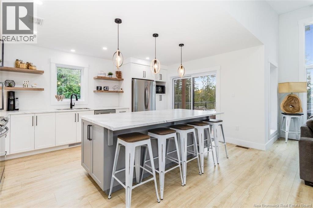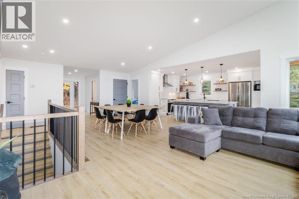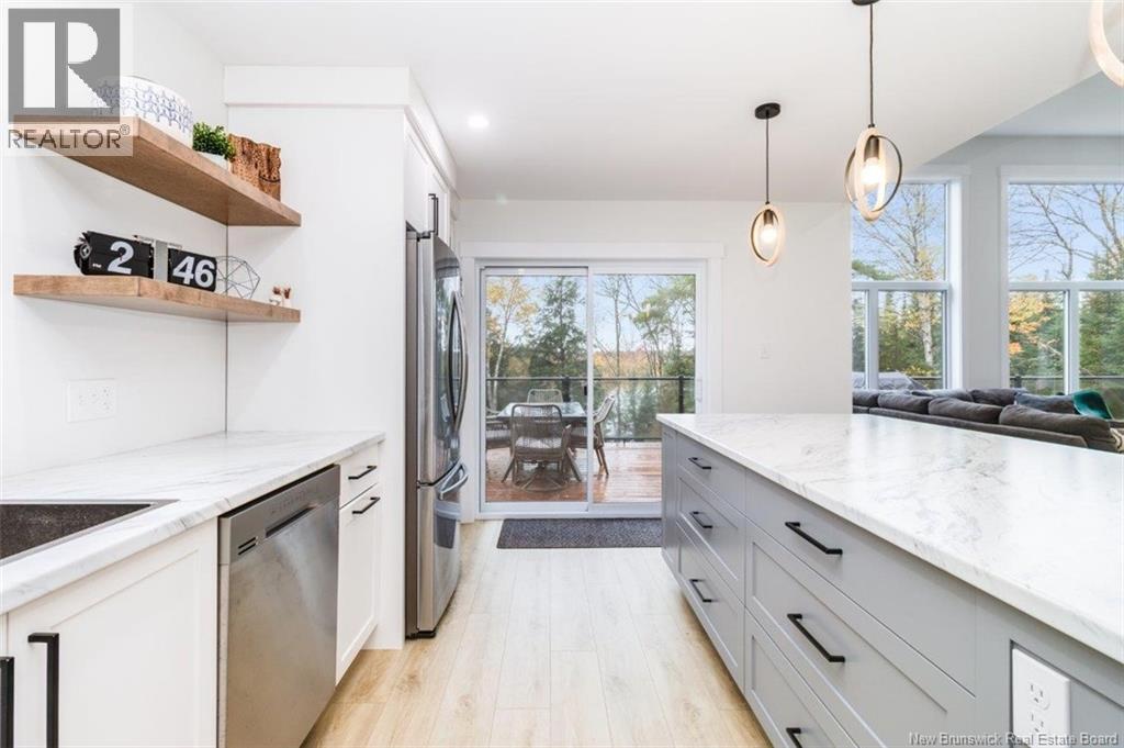Welcome to this stunning waterfront chalet on the Head Pond/St. John River, quality-built in 2022 by Reagon overlooking beautiful Jewetts Cove. Designed for both comfort and style, this home features soaring vaulted ceilings & a bright open-concept layout that seamlessly connects the kitchen, dining and living areas. The spacious entryway offers privacy upon arrival, complete with a half bath & coat closet. The kitchen is a showpiece with light cabinetry by Heritage Mill works, a large island, two pantries, stainless steel appliances & patio doors leading to a large deck with glass inserts to enjoy the breathtaking water views. The main floor includes 3 generous bedrooms & a full bath with tub/shower combo, vanity & toilet. The fully finished lower level features 2 walkouts, floor to ceiling windows on the River side, a large family room, cozy sitting area, 4 additional bedrooms, one with walkout access in the primary suite with walk-in closet & full ensuite bath with shower. A second full bath offers a vanity with storage tower, toilet and tub/shower enclosure. The spacious utility room includes a central heat pump with A/C, washer, dryer, generator panel& ample storage. With 7 bedrooms and 3.5 baths, this property is an exceptional opportunity, ideal as a year-round family home, multi-family retreat, or high-income Airbnb investment, offering over 2,600 sq. ft. of beautifully finished living space right on the water. This is the opportunity that you have been waiting for. (id:34572)