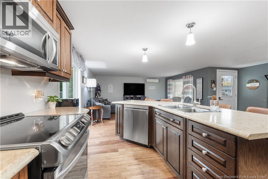 Welcome to this charming home nestled on a solid concrete foundation, offering comfort and practicality in a peaceful setting. This residence features an open-concept layout combining the living room, dining area, and kitchenperfect for modern living and entertaining. The kitchen is well-appointed with plenty of cabinet space and a functional island ideal for meal prep or casual dining. The main level offers two generously sized bedrooms. The spacious primary bedroom includes its own private ensuite and a walk-in closet for added convenience. A full main bathroom completes this level. The lower level remains unfinished, offering excellent storage potential, a laundry area, and a utility spaceready for your personal touch. Stay comfortable year-round with the efficient wood furnace and a mini-split heat pump. Step outside to enjoy a lovely deck/patio area, perfect for relaxing or entertaining. A baby barn provides additional storage for gardening tools and outdoor equipment. Located close to a wide range of amenities including restaurants, grocery stores, clinics, pharmacies, banks, schools, and community centers. 30 minutes to beautiful beaches, local wharfs, and coastal viewsperfect for boating, kayaking, canoeing, or jet skiing. Kouchibouguac national park 20 mins away. Roughly 55 minutes to Moncton and 35 minutes to Miramichi, where you'll find major retailers like Costco and more! (id:34572)