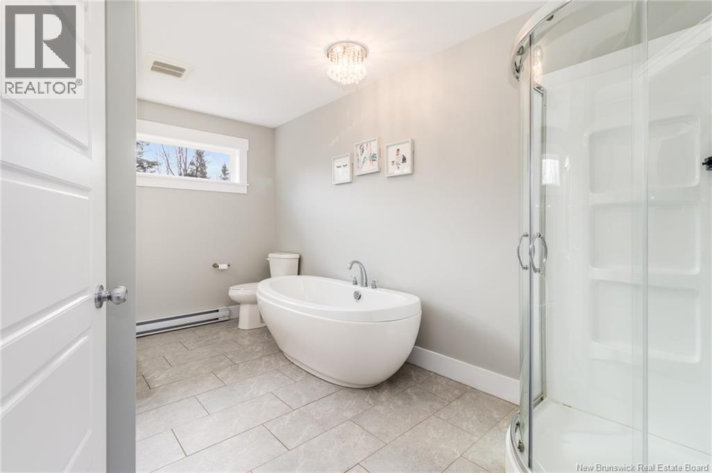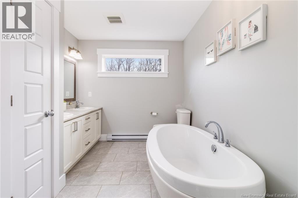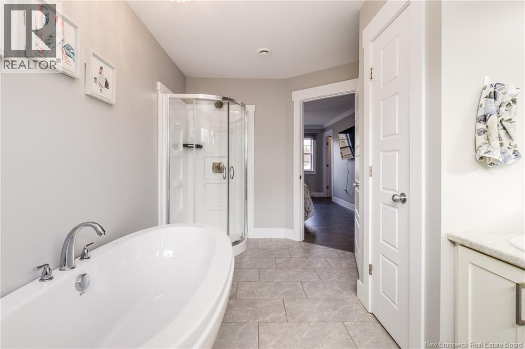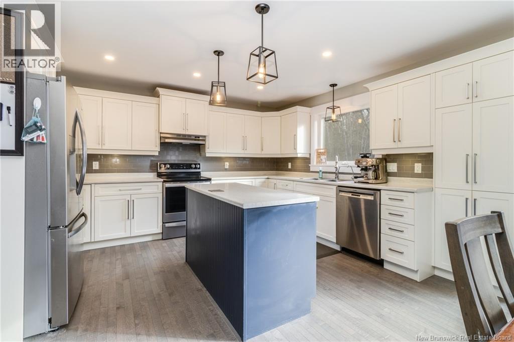 Discover exceptional privacy, elegant finishes, and generous space in this beautiful executive 2-storey home, perfectly designed for modern living in one of New Brunswicks most desirable areas. A bright, spacious foyer sets a warm and welcoming tone that carries throughout the home. The open-concept kitchen, dining, and family room span the entire back of the house, creating an ideal setting for everyday living and effortless entertaining. The kitchen features crisp white cabinetry, a stylish accent island, and easy access to the private backyard through patio doors. Enjoy peaceful outdoor living on the large deck and adjoining patio, surrounded by mature landscaping that forms your own backyard retreat. At the front of the home, a flexible formal dining room, or additional living area, adapts to your needs. A convenient mudroom off the attached double garage includes a versatile storage room perfect for pantry overflow, sports gear, or seasonal items. Upstairs, the luxurious primary suite offers a spacious walk-in closet and spa-inspired ensuite with a stand-alone soaker tub, double vanity, and walk-in shower. Two additional bedrooms, a full bath, and a dedicated laundry room complete the second floor. Two ductless heat pumps provide year-round comfort. The professionally finished lower level adds even more living space with a large family room, fourth bedroom, full bath, and storage area, ideal for guests or teens. This home truly has it all! (id:34572)