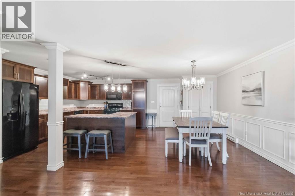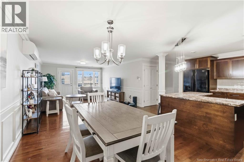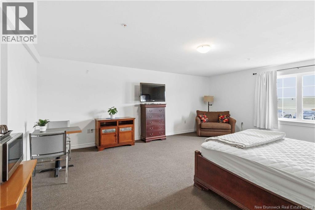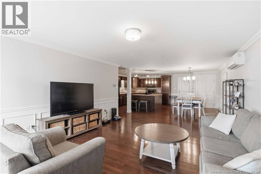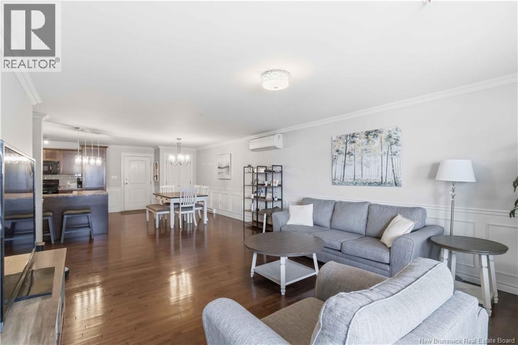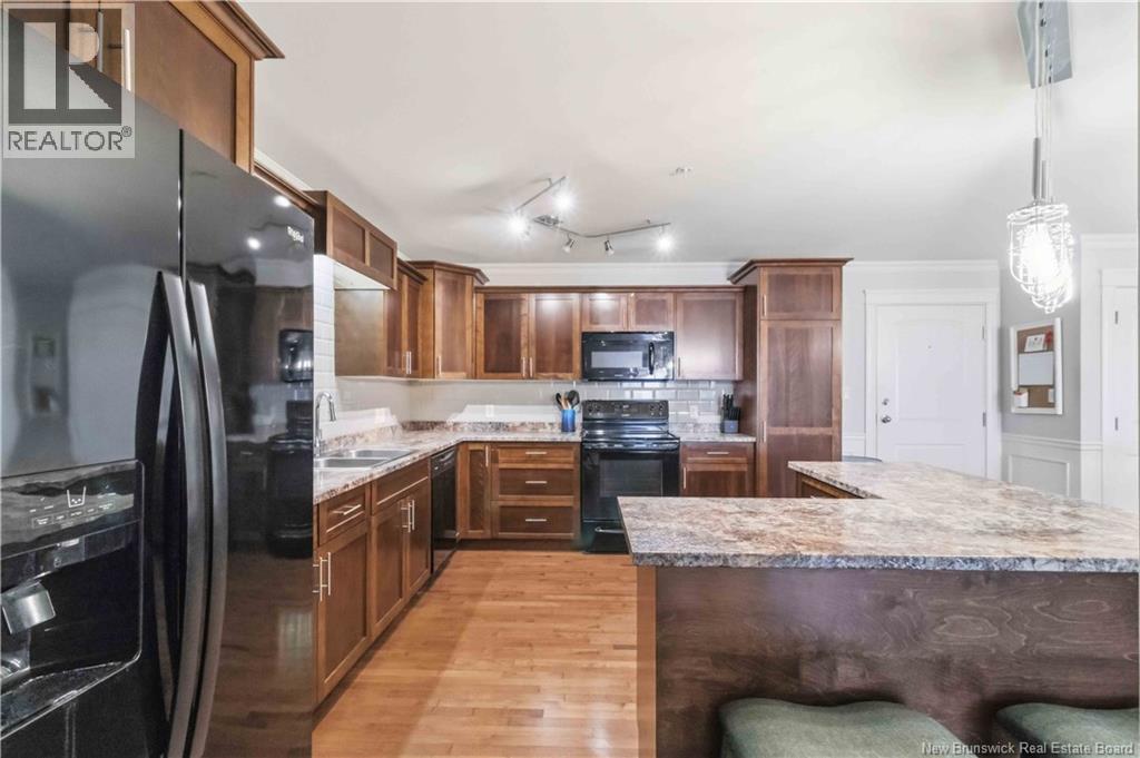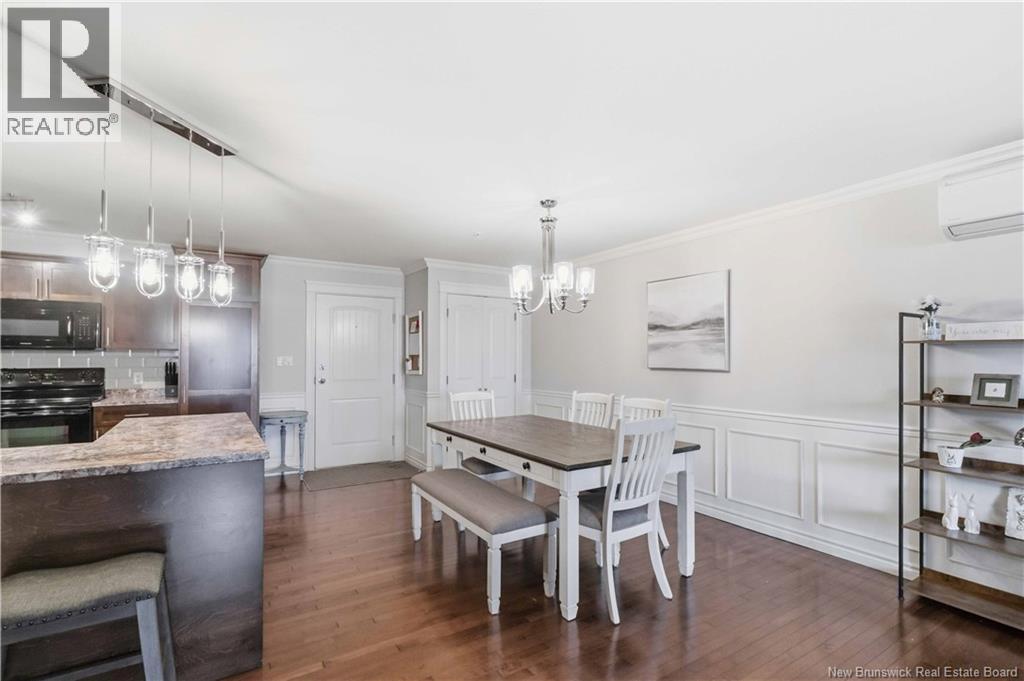 Experience easy living and exceptional value in Unit 218, a lovely 2-bedroom open-concept condo. The home features a spacious kitchen and dining area with beautiful lighting, a large central island, and lots of cabinetry. Step through the living room to a covered concrete deck with southern exposure, a perfect private retreat for warm evenings. The primary bedroom is spacious and boasts a large walk-in closet. The second bedroom is perfectly sized for family guests or home office! The spa-inspired bathroom, equipped with double vanity, a walk-in shower, and jet tub, is spacious and well ordered. Practicality with convenience in the extra-large laundry room (washer/dryer included) providing significant bonus storage. This energy-efficient unit utilizes a ductless mini-split for cooling and heating. The $415/month condo fee ensures a maintenance-free lifestyle with snow clearing and lawn care provided. Enjoy heated underground parking for one vehicle, plus additional parking for guests. The building has a vibrant community atmosphere with a ""Social Room"" hosting card games and events. A dedicated guest suite is also available for visitors. Turn-key living at its finest! (id:34572)