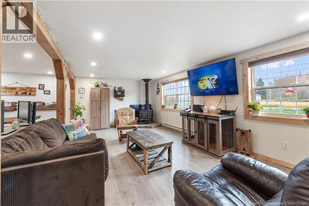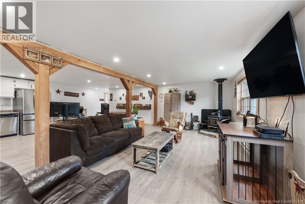 Welcome to your private riverside retreat! Nestled on 2.69 acres, this charming bungalow offers the perfect blend of comfort, nature, and convenience. With a river running through your backyard, enjoy peaceful mornings fishing, kayaking, or simply relaxing while surrounded by nature. The main level features a bright and open concept living space with a spacious living room, dining area, and kitchenperfect for family gatherings and entertaining. The living room boasts a cozy wood stove, ideal for chilly winter nights. This level also includes four well-sized bedrooms and a full bathroom. The private primary bedroom offers a peaceful escape with a walk-in closet and a 3-piece ensuite. A storage room adds convenience and functionality to this well-maintained home. Step outside onto your deck and take in the treed backyardideal for children, pets, or simply enjoying the fresh air. Located in proximity to beaches, wharfs, and countless outdoor activities, this property offers a true East Coast lifestyle. Enjoy boating, canoeing, kayaking, jet skiing, or relaxing on the sand. You're also close to a wide range of amenities including restaurants, grocery stores, pharmacies, banks, clinics, community centres, and schools. Saint Anne Hospital is just 25 minutes away, and local highways provide easy access to Monctononly 55 minutes to major retailers like Costco and other big-name stores. Dont miss this rare opportunity to enjoy country living with city convenience! (id:34572)