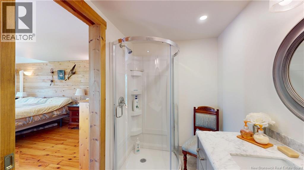 Some houses whisper. This one calls your name across the water. At 1588 Scenic Narrows Blvd, the rhythm of life slows to the gentle lap of Washademoak Lake, where more than 240 feet of private shoreline invites you to live the lake life all year round. Not just a summer escape. A true four-season homewarm in winter, breezy in summer, and magical in between. Set on 2.4 acres of quiet privacy, youre surrounded by nature yet minutes from the country store, local wharf, and ATV trails that stretch into miles of wilderness. Step inside and the house greets you with light. Quartz countertops sparkle in a kitchen built for gathering. Exposed beams lift your gaze while a propane stove warms the open living room. Heated floors in the kitchen and dining area make winter mornings feel like a luxury. The main-floor primary bedroom offers a postcard view of the lake. A 500 sq ft addition in 2023 introduced a showstopper: a 14×8 saltwater swim spa, ready for evening soaks under the stars. Six owned mini-split heat pumps keep the home and garage comfortable year-round. Outside, the oversized detached double garage hides a bonusa fully furnished one-bedroom apartment perfect for guests or extra income. Some homes are cottages. This one is home all year long. This home is exempt from the foreign buyer ban (id:34572)