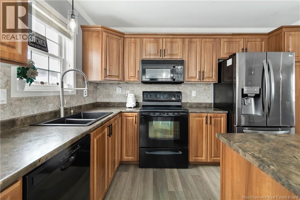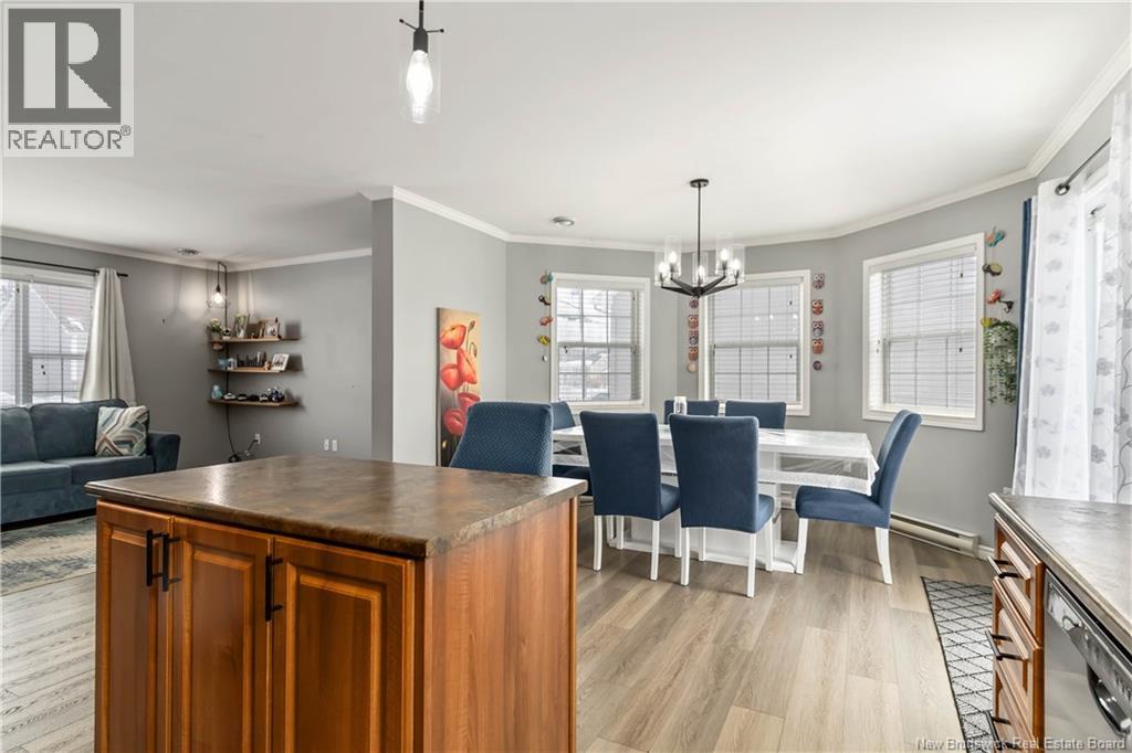 Welcome Home! bungalow with double garage is conveniently located in Monctons North End. Ideally situated for a growing family, this home is within walking distance to Northrop Frye Elementary School, and just minutes from the French elementary École Le Sommet and the private Kingswood Academy. Upon entering, you are welcomed into a bright open-concept living space featuring a spacious living room, an ultra-functional kitchen with center island, and a large dining area with a bump-out providing extra space. Patio doors lead to a concrete patio complete with pergolaperfect for entertaining and end-of-season BBQs. The primary bedroom is thoughtfully positioned at the far end of the home for ultimate privacy and includes a walk-in closet. Two additional generously sized bedrooms and a newly renovated 4-piece bathroom complete the main level. The fully finished lower level offers even more living space, including two bedrooms, a large family room, a full 3-piece bathroom, and a laundry area. Ideally located close to all amenities such as shopping, theatres, restaurants, Mapleton Park, walking trails, and parks, with easy access to the Trans-Canada Highway and Wheeler Boulevard. Don't wait book your showing today.. (id:34572)