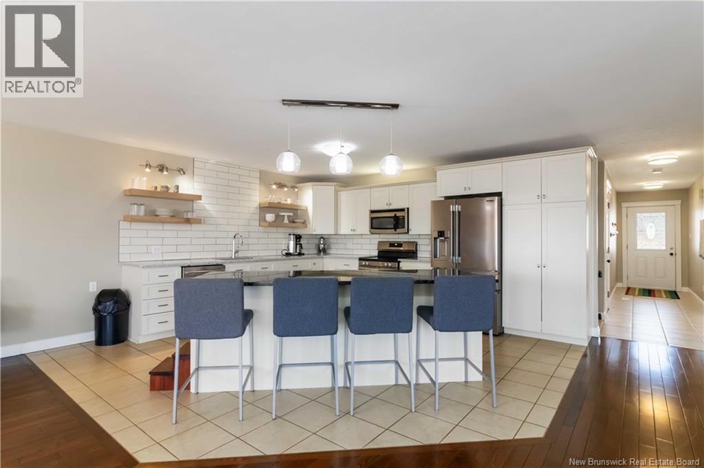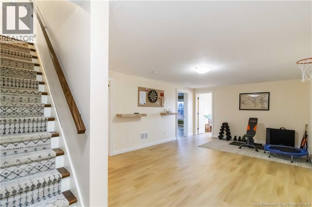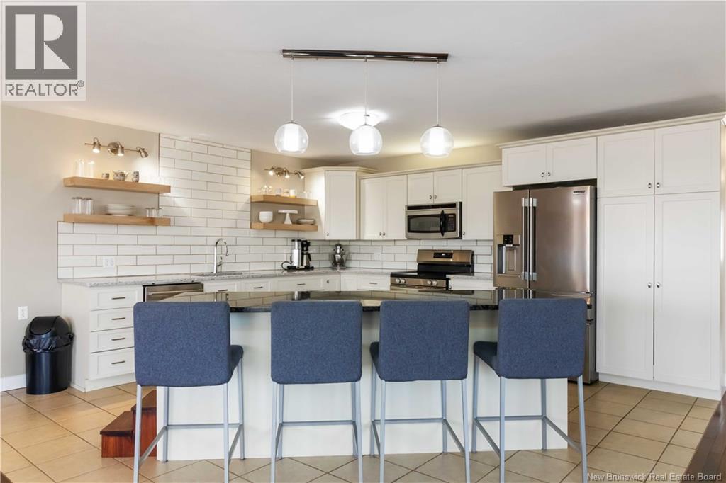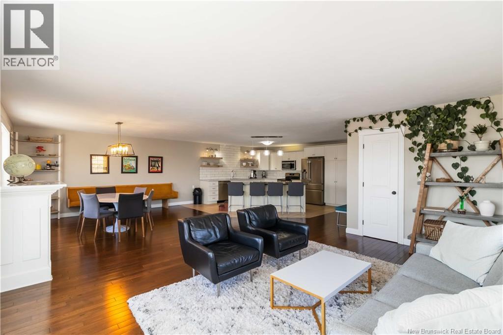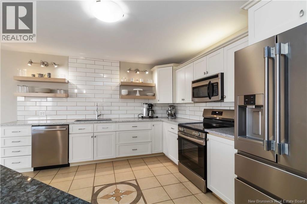 Located in the heart of Oromocto, this spacious 5-bedroom, 2.5-bath garden home offers comfort, style, and convenience. Enjoy direct access to the trail system and the Oromocto Riverperfect for outdoor enthusiasts and water activities. The main floor features a bright open-concept living space with an updated kitchen showcasing off-white cabinetry, floating shelves, modern backsplash, and a large islandideal for entertaining. Two additional versatile rooms can serve as bedrooms or home offices, along with a convenient half bath, access to the 1.5-car garage, and a deck overlooking the Oromocto Marina. The lower level offers a cozy family room, full bathroom, two bedrooms, and a spacious primary suite complete with a large walk-in closet, ensuite with heated floors, and private patio. Unwind in your own private cedar barrel saunayour own personal retreat. All within walking distance to shopping, the hospital, and Oromocto High School, this home combines lifestyle and location in one exceptional package. (id:34572)