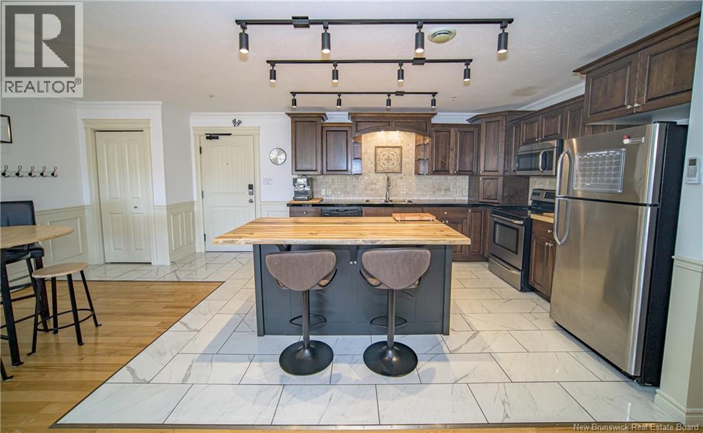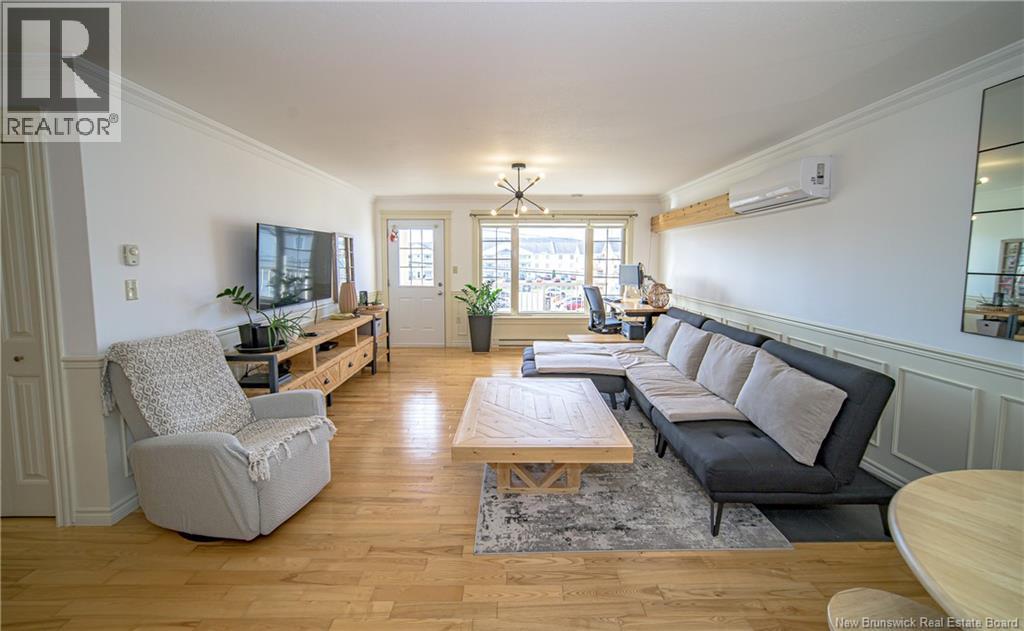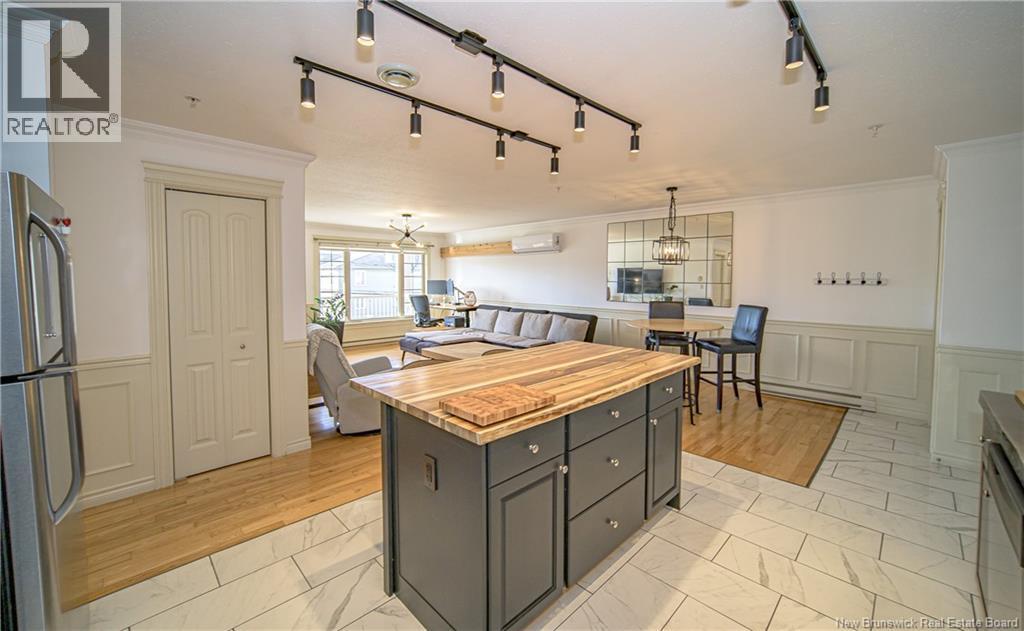 Enjoy low-maintenance living in this pristine, bright, and exceptionally spacious condo offering over 1,700 sq. ft. Featuring three bedrooms and two full bathrooms. Step inside to stunning open-concept design showcasing gorgeous kitchen with rich cabinetry, stainless steel appliances, and large island with butcher-block top, perfect for entertaining or everyday living. Adjoining dining and living areas offer effortless flow, with hardwood floors, abundant natural light, and access to your balcony. Ductless heat pump provides energy-efficient heating and cooling year-round, ensuring comfort in every season. Primary suite is peaceful retreat with walk-in closet and spacious ensuite with walk-in shower. Two additional bedrooms provide flexibility for family, home office, or hobbies. Main bath offers both relaxing Jacuzzi tub and corner shower. Convenient in-unit laundry and storage room add to the functionality of this fantastic property. Located in Frederictons uptown, youll love being just minutes from shopping, restaurants, walking trails, and all amenities. $750 contingency fee is payable on closing to the Condo Corporation. Experience the perfect blend of convenience, comfort, and carefree living, must-see opportunity! (id:34572)