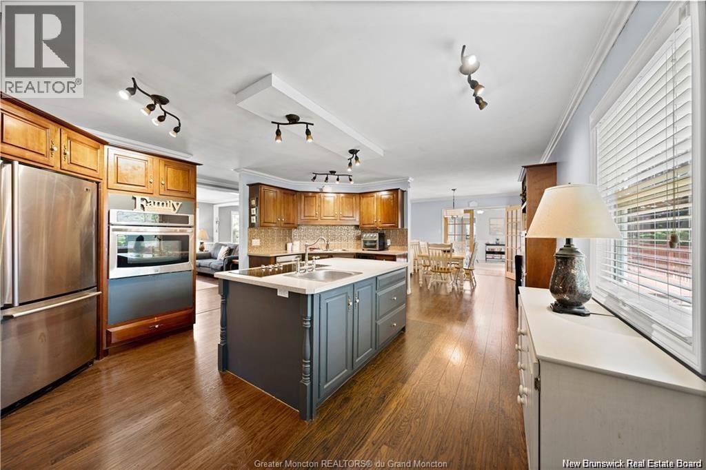 Incredible home in the heart of Rexton NB! Step into a spacious entrance off the attached garage or greet guests in the elegant foyer. The bright sunroom with patio doors opens to a deck and amazing backyard, perfect for relaxing. Enjoy an open-concept layout with crown molding throughout. The custom kitchen features a center island, pull-out cabinets, super cool pantry within the cabinetry and a walk-in pantry, making it super functional. The huge living room with a fireplace, sitting area, and a perfect work-from-home spot adds to the charm. The main floor boasts three large bedrooms, including a primary bedroom with an ensuite bath, plus another 4PC bath. The fully finished lower level offers a games room with a bar area, family room with another fireplace, two more bedrooms, a 3PC bath, bright laundry room, full cedar storage, and a cold room. With so much square footage it could easily be converted into a spacious in-law suite. Pride of ownership is evident throughout with so many updates. The backyard oasis is super private and landscaped, creating a serene retreat. Perfectly situated within walking distance to all three schools and surrounded by amenities, shopping, restaurants, and entertainment options, this location epitomizes convenience. Enjoy easy access to beaches, with Saint-Anne Hospital just 10 min away, & both Moncton and Miramichi within a 50-min drive. This home truly meets all your needs w/ ease (id:34572)