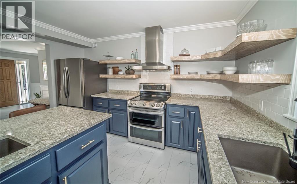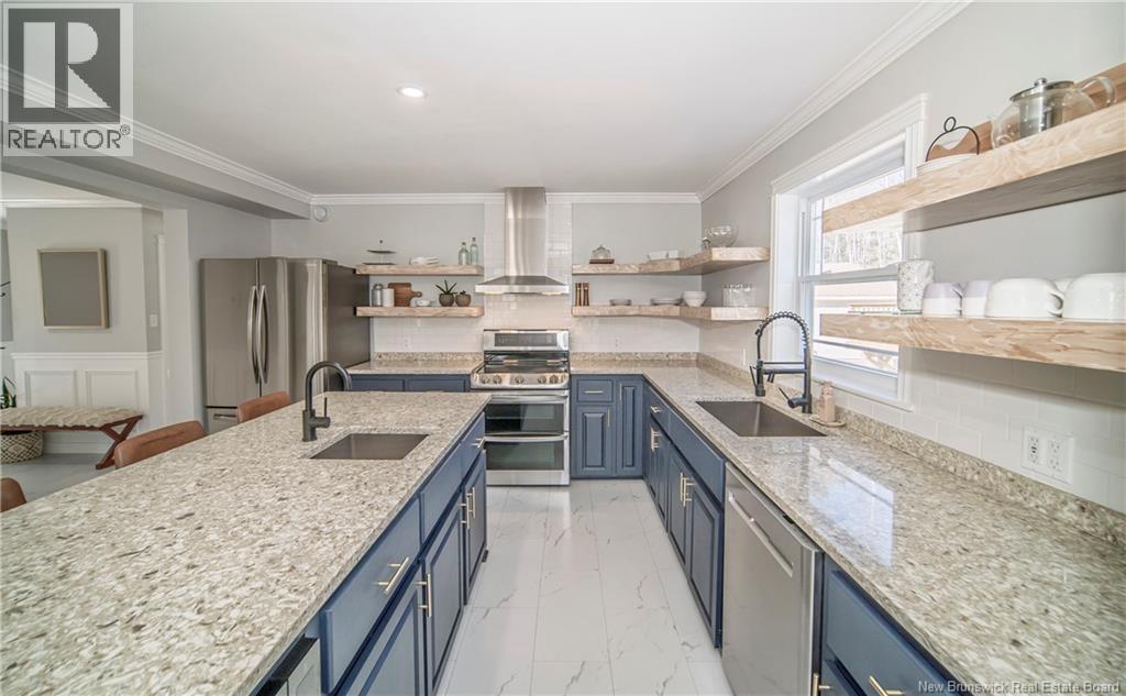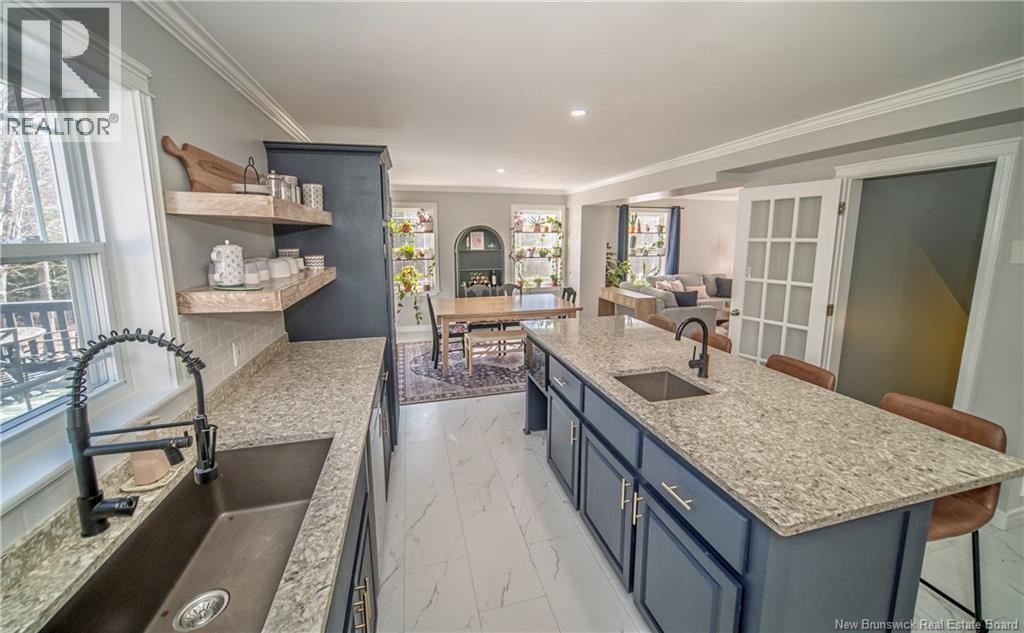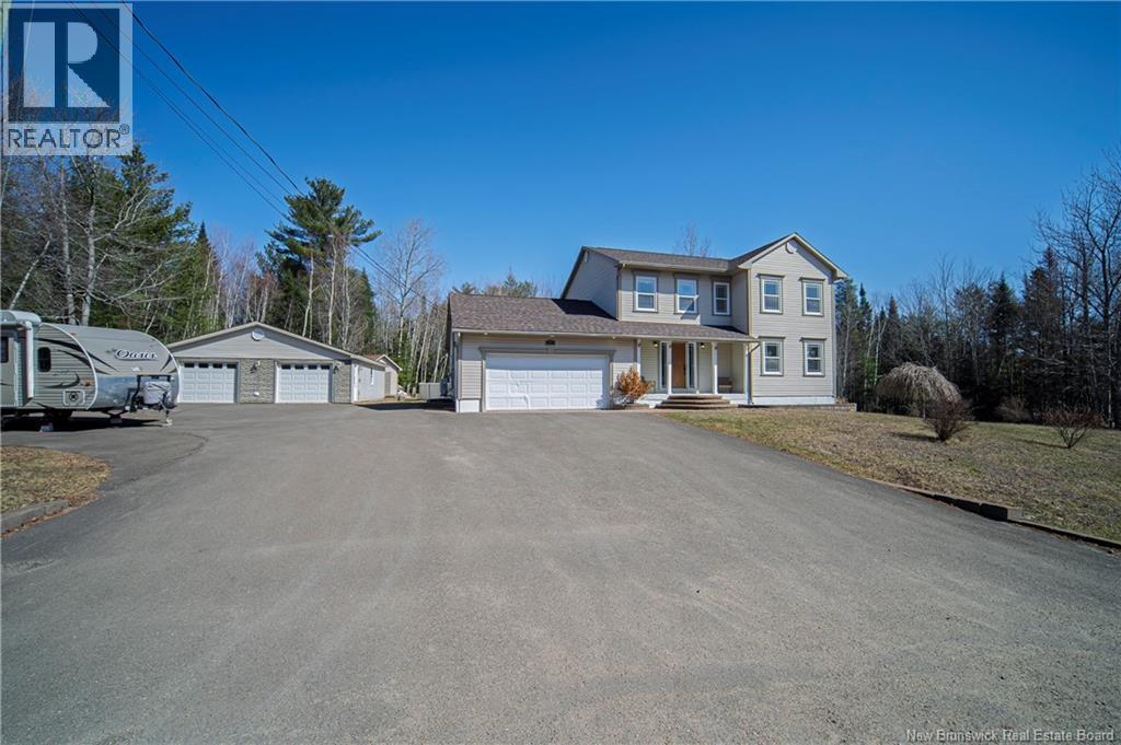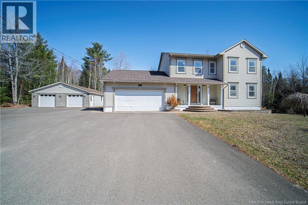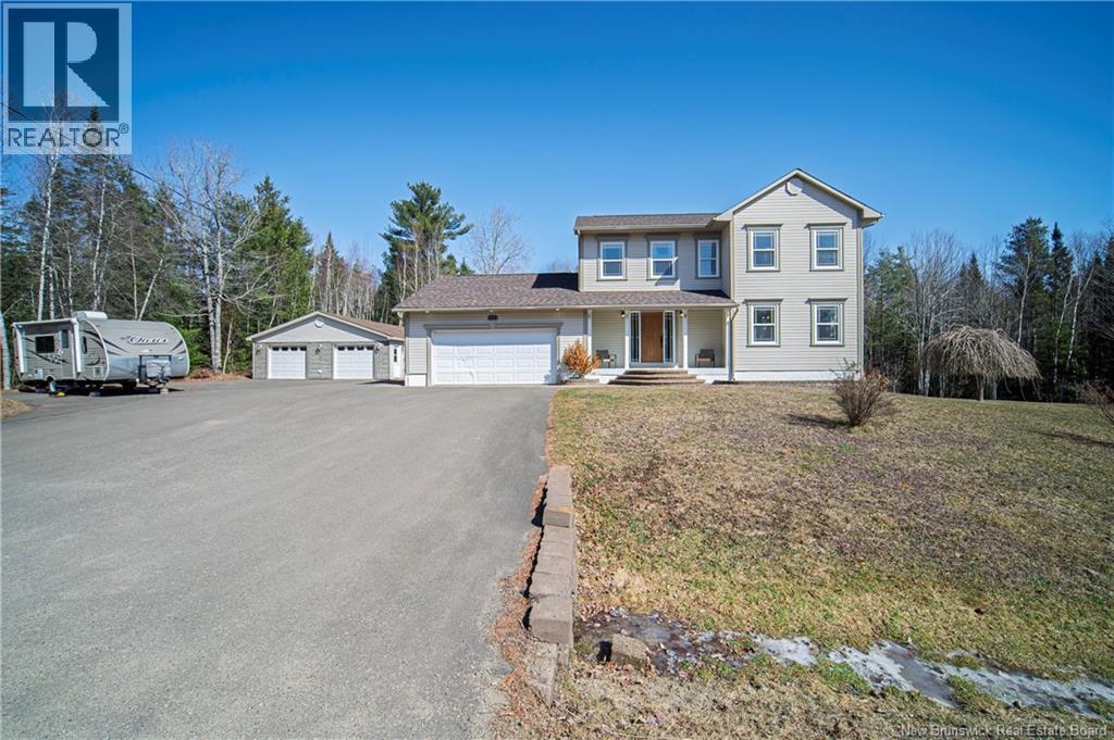 Space, updates, and serious garage space. This two-storey home delivers. Main floor features updated kitchen with stylish finishes, bright dining area, and easy flow into living room, making everyday living and entertaining feel effortless. Main floor laundry room and convenient pantry add practical function right where you need it. Upstairs, huge primary bedroom offers walk-through closet and beautifully updated ensuite bath, while two additional bedrooms and full main bath complete the second level. Lower level adds even more living space with family room warmed by pellet stove, 4th bedroom, den/office, and 3rd full bath. Outside, this property keeps giving with attached double car garage with heat pump, detached oversized double car garage with heat pump, and above-ground pool ready for summer fun. Forced air heating and air conditioning, central vac, generator panel, and new roof shingles in March 2026 add comfort and peace of mind. Fantastic location. Minutes to Oromocto. (id:34572)