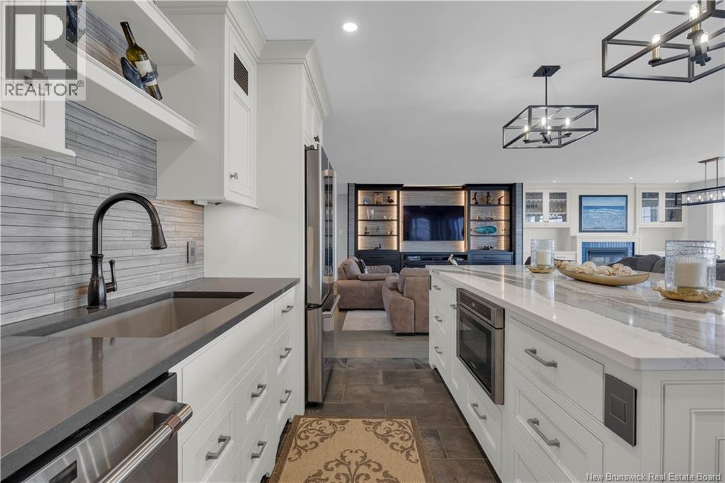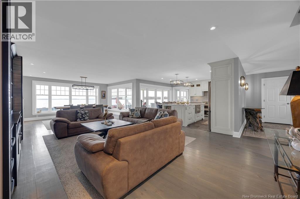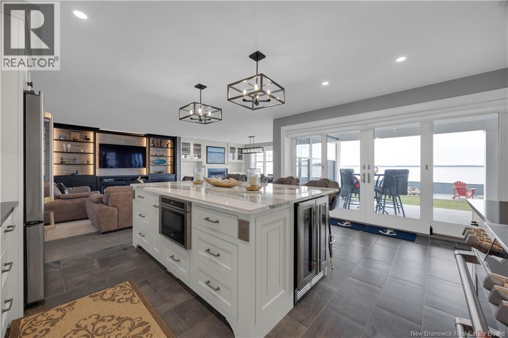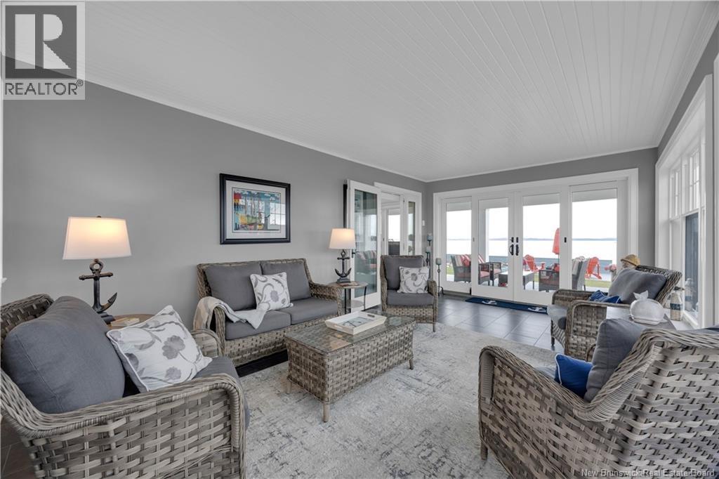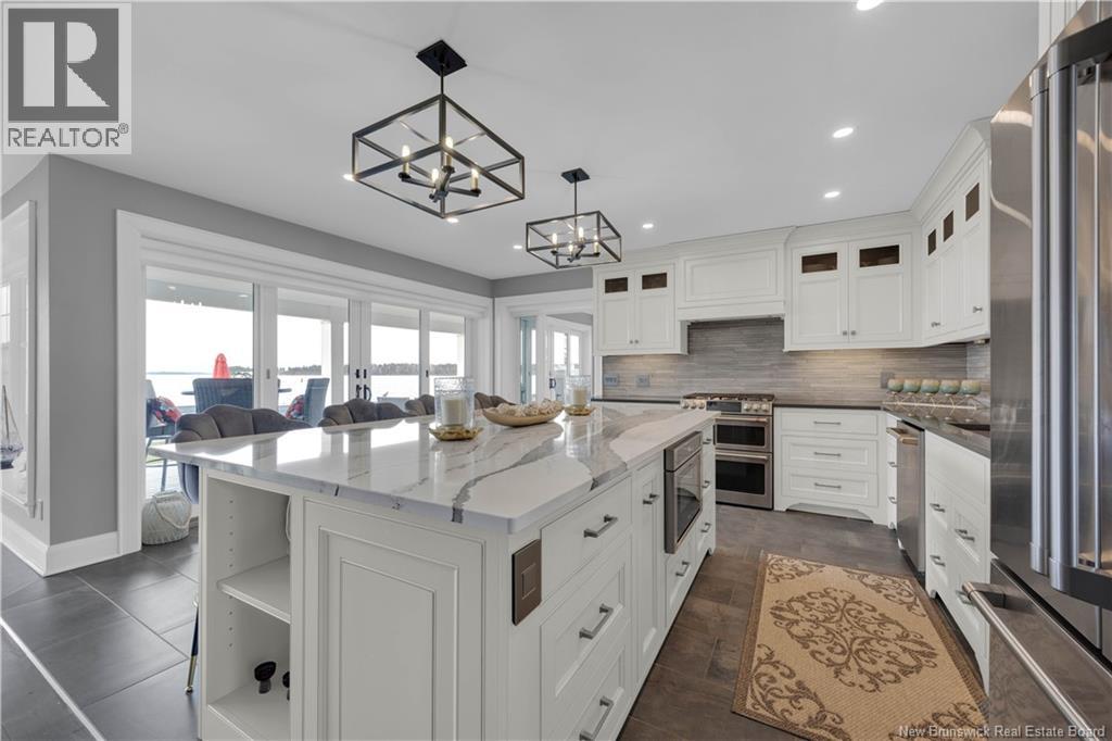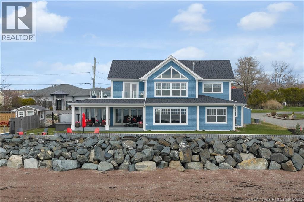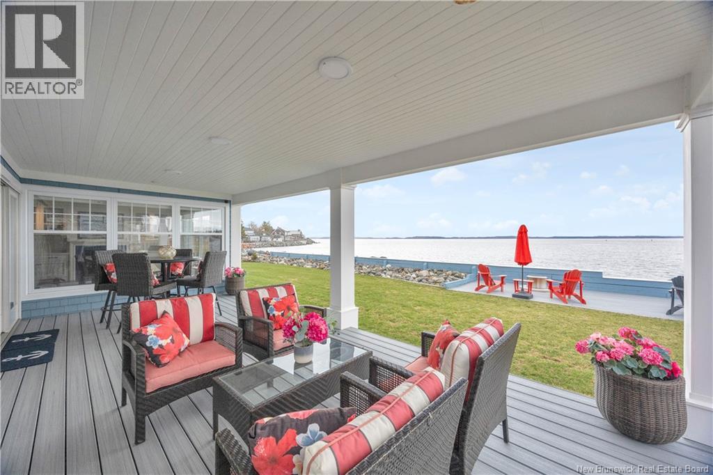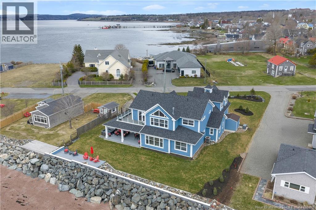 Experience refined coastal living in this executive two storey beachfront residence in Saint Andrews, NB. Perfectly positioned on a beautifully landscaped 0.38-acre lot, this property captures sweeping water views, exceptional privacy, and the added durability of an ICF foundation and construction throughout, delivering superior energy efficiency, comfort, and long-term peace of mind, all just minutes from downtown. A welcoming formal entry opens to an elegant and thoughtfully designed main level. The spacious living room, anchored by a propane fireplace, flows seamlessly into a formal dining area and a well-appointed custom B. Rourke Fine Cabinetry kitchen, ideal for both everyday living and entertaining. The sunroom offers a bright, tranquil retreat with direct access to the expansive 25' x 11' patio and salt water hot tub, creating the perfect setting to relax and take in the coastal surroundings. This level also features a bedroom with a 3-piece ensuite, convenient coffee bar, laundry area, mudroom, and access to the double attached garage. Upstairs, the impressive primary suite serves as a private sanctuary, complete with its own balcony showcasing breathtaking panoramic water views an ideal spot for morning coffee or evening sunsets. The suite is complemented by a generous walk-in closet and a spa-inspired 5-piece ensuite designed for ultimate comfort. The expansive 22' x 24' family room provides outstanding space for gathering and entertaining, seamlessly connecting to a cozy sitting room for added versatility. A third bedroom and full 3-piece bath complete the upper level, offering excellent accommodations for family and guests. Adding to the homes appeal is a Generac backup generator, ensuring comfort and convenience year-round, no matter the conditions. This is a rare opportunity to own a beautifully renovated beachfront home with exceptional features and stunning views in one of New Brunswicks most desirable coastal communities. (id:34572)