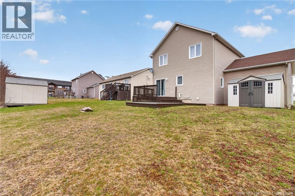 READY FOR A NEW FAMILY! Welcome to 18 Lady Russell, a beautiful 2-storey home with attached garage, ideally located in the highly sought-after Moncton North End. This well-maintained property offers comfort, style, and convenienceperfect for growing families. The main floor features a bright, open-concept layout with a spacious kitchen complete with all appliances, a center island, and an abundance of rich dark cabinetry. The dining area offers direct access through patio doors to a large back deckideal for entertaining or relaxing outdoors. The inviting living room showcases hardwood flooring, while a convenient 4-piece bath and welcoming foyer complete this level. Upstairs, youll find three generously sized bedrooms and a full 4-piece bathroom, providing plenty of space for the whole family. The lower level offers a large family roomperfect for movie nights or a play areaalong with a spacious laundry and storage room. Additional features include energy-efficient natural gas forced air heating, a heat pump (2015) also providing central air conditioning for year-round comfort, beautiful Boston headers, and wide custom trim throughout. The home also includes a double-wide paved driveway, central vacuum rough-in, a backyard storage shed and has been freshly painted. Located close to both French and English schools, shopping, restaurants, highways, and essential services, this home truly has it all. Call today for more information or to book your private viewing! (id:34572)