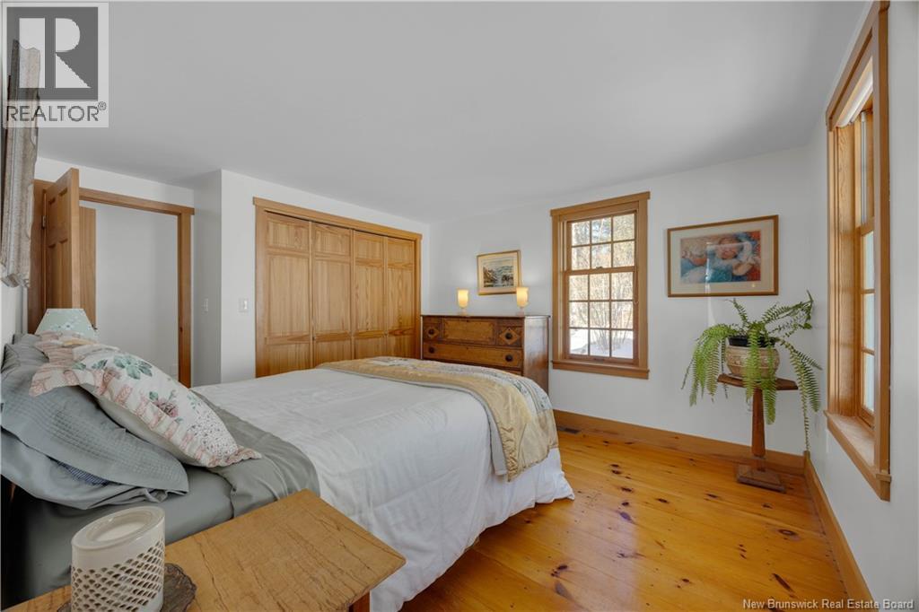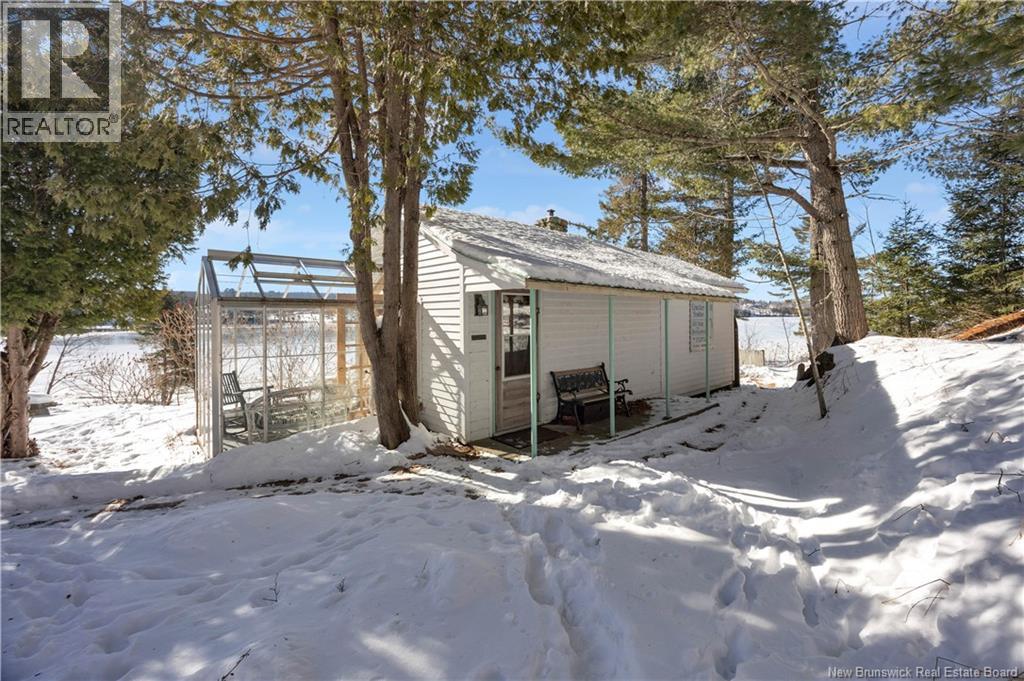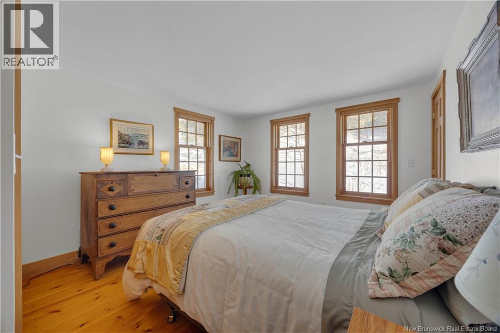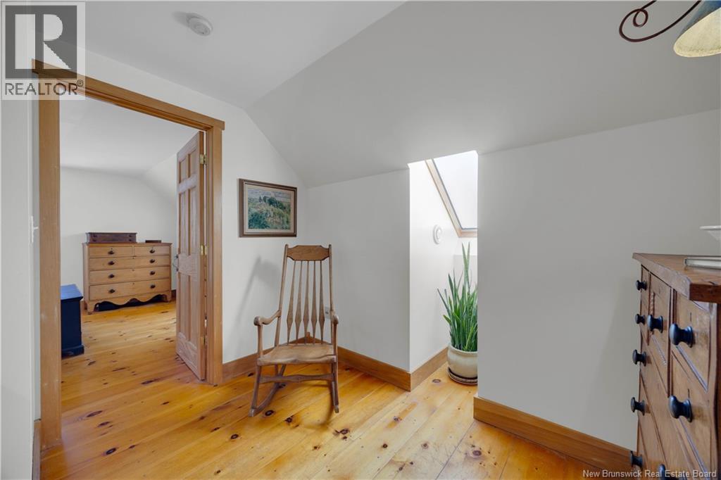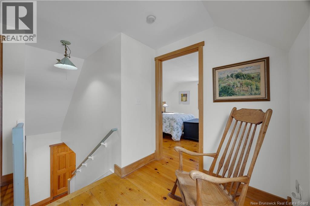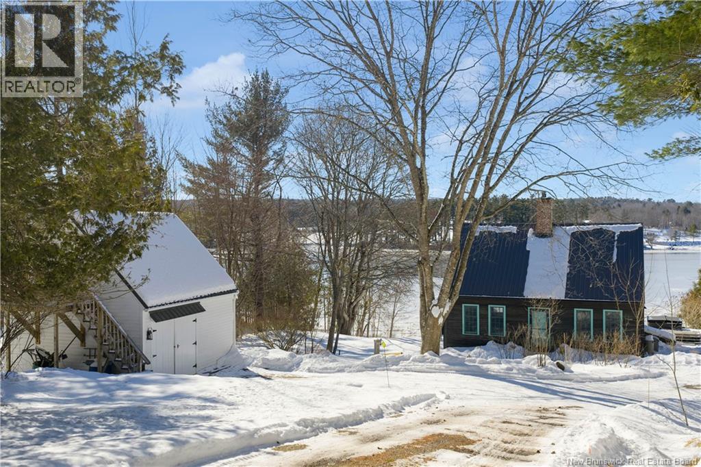 Perched on a hilltop overlooking the historic St. Croix River, this truly one of a kind 1.5 storey home blends modern comfort with timeless craftsmanship. Wrapped in classic wood clapboard siding, the home showcases attention to detail, including handcrafted Marvin wooden windows, copper light fixtures, and solid pine doors with wrought iron hardware. The main level features an open concept living space anchored by a brick fireplace insert with handcrafted cherry mantel, flowing into the dining area and kitchen with chalk painted cabinetry. Pine floors and ceramic tile add warmth and durability. A guest bedroom and 3 piece bath with laundry complete this level. Upstairs, the primary retreat offers skylights, a walk in closet, and a full bath with an antique clawfoot tub, plus a charming reading nook. The partially finished basement includes a comfortable family room with click flooring and wood-stove, along with ample storage or future development space. A double flue brick chimney serves both the wood-stove and fireplace. Outside, soak in river views from the hot tub on the back deck. Stone steps with wrought iron railings lead to the waters edge. The two room guest bunkhouse includes a solarium with slate flooring and wood-stove, perfect for year round use. A parking area with wrought iron gates connects via stone steps to the lower driveway, complemented by a storage shed and detached garage workshop. A rare riverfront offering with unforgettable character and views. (id:34572)
