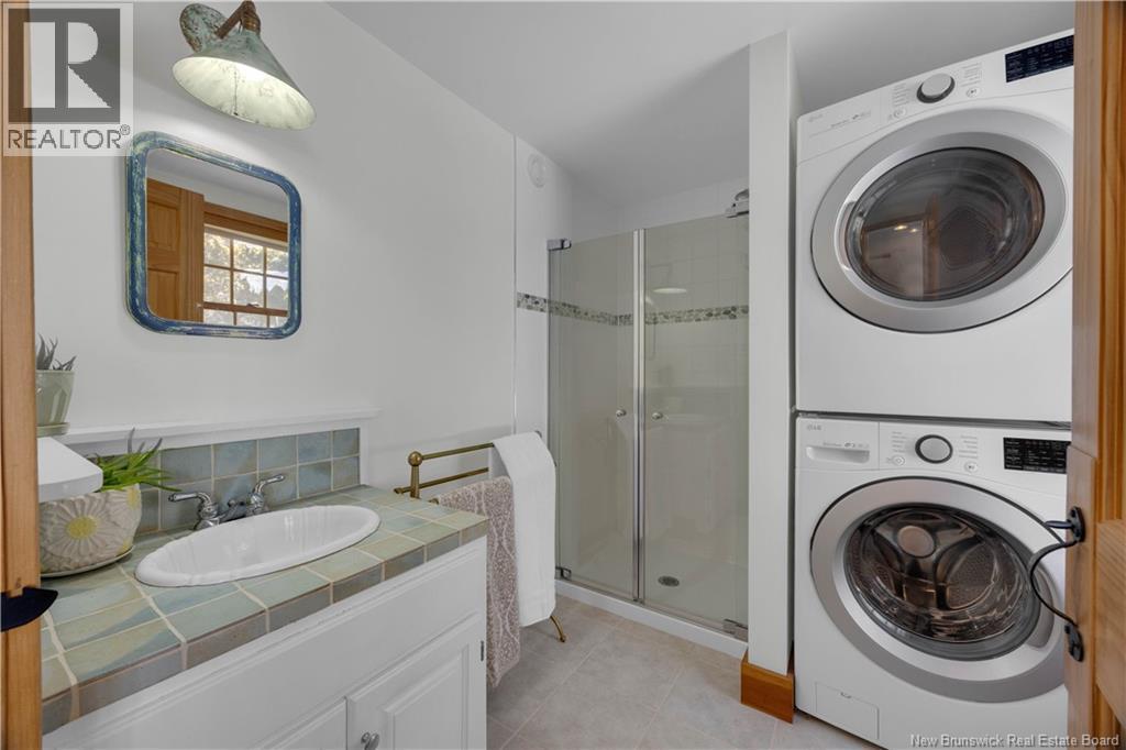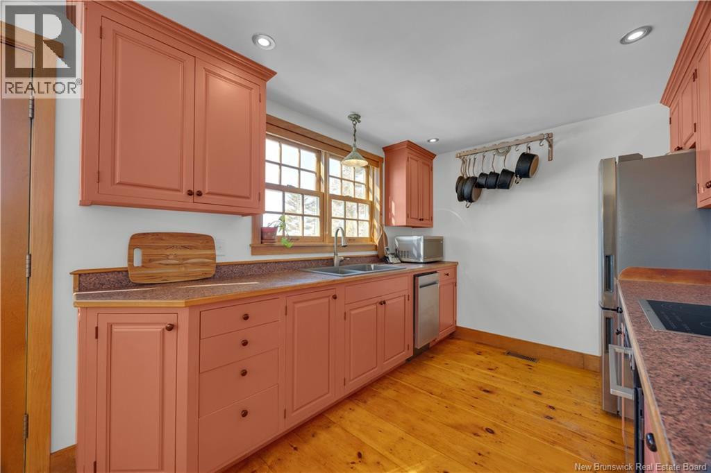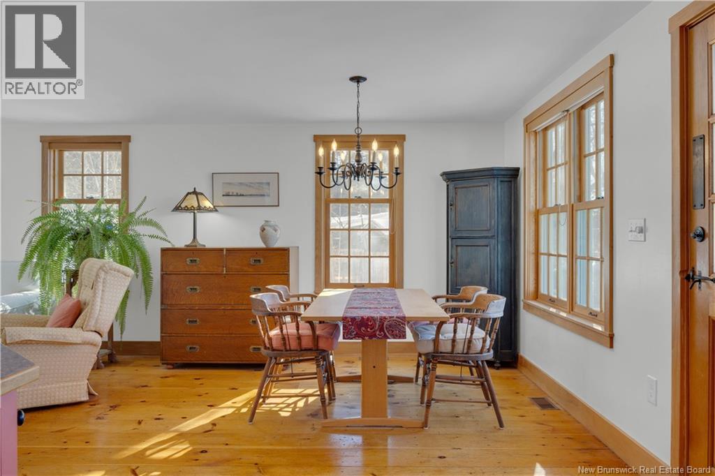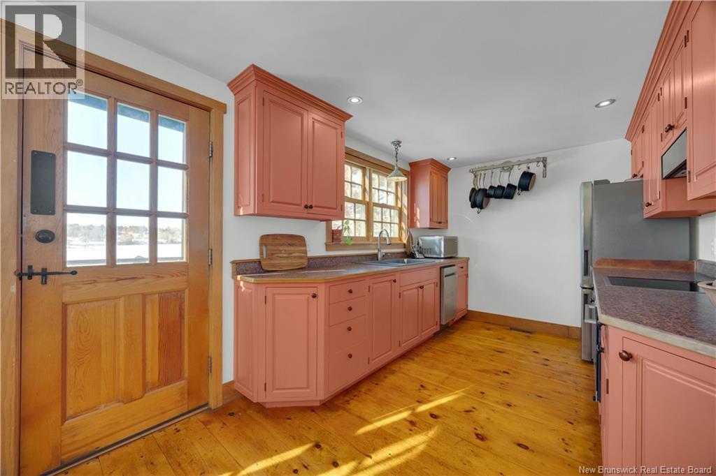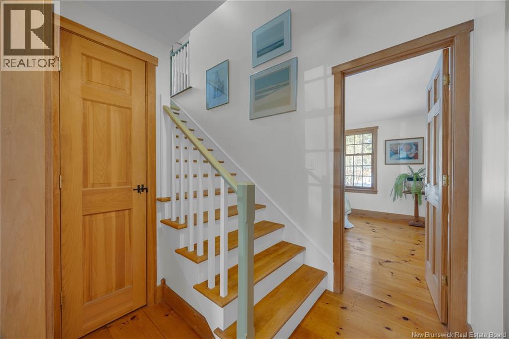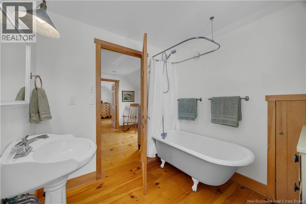 Perched on a hilltop overlooking the historic St. Croix River, this truly one of a kind 1.5 storey home blends modern comfort with timeless craftsmanship. Wrapped in classic wood clapboard siding, the home showcases attention to detail, including handcrafted Marvin wooden windows, copper light fixtures, and solid pine doors with wrought iron hardware. The main level features an open concept living space anchored by a brick fireplace insert with handcrafted cherry mantel, flowing into the dining area and kitchen with chalk painted cabinetry. Pine floors and ceramic tile add warmth and durability. A guest bedroom and 3 piece bath with laundry complete this level. Upstairs, the primary retreat offers skylights, a walk in closet, and a full bath with an antique clawfoot tub, plus a charming reading nook. The partially finished basement includes a comfortable family room with click flooring and wood-stove, along with ample storage or future development space. A double flue brick chimney serves both the wood-stove and fireplace. Outside, soak in river views from the hot tub on the back deck. Stone steps with wrought iron railings lead to the waters edge. The two room guest bunkhouse includes a solarium with slate flooring and wood-stove, perfect for year round use. A parking area with wrought iron gates connects via stone steps to the lower driveway, complemented by a storage shed and detached garage workshop. A rare riverfront offering with unforgettable character and views. (id:34572)