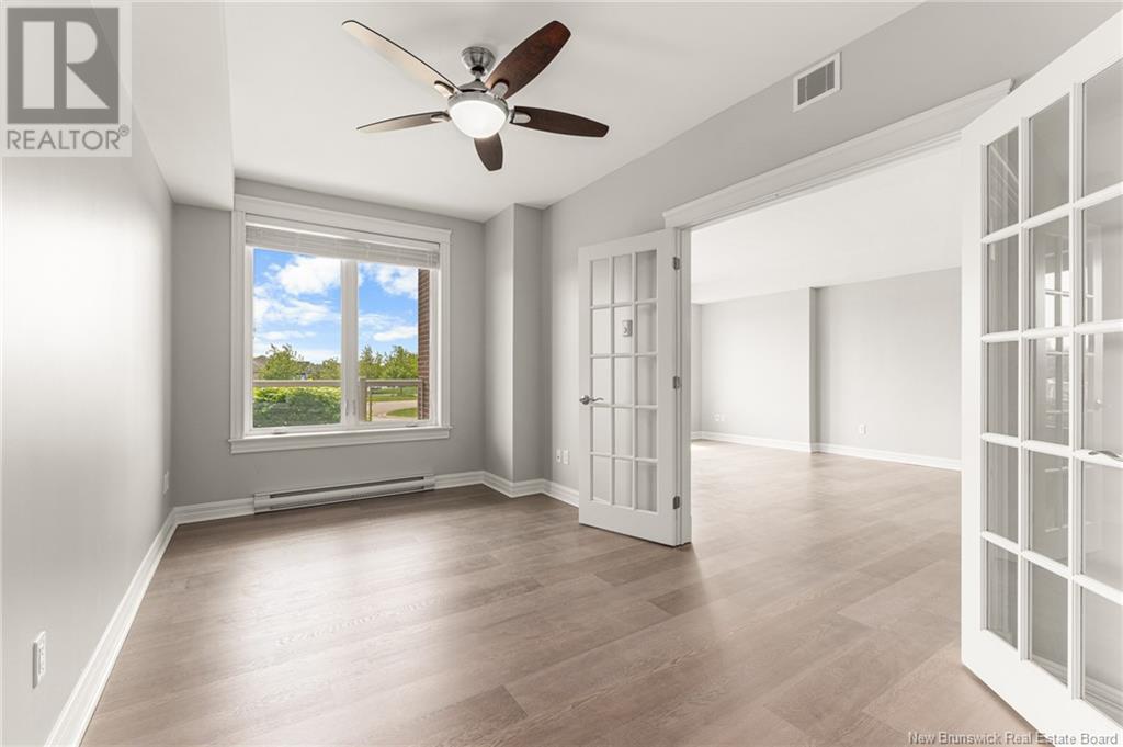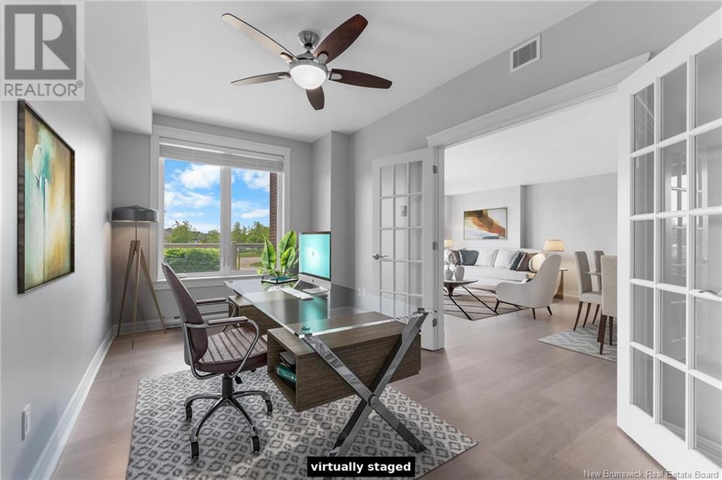 Located on the edge of Royal Oaks Golf Course, this updated 2-bedroom, plus den, condo offers style, space, and simplicity. Step inside to a bright and inviting layout, featuring 9 ft ceilings, large windows, and an open-concept design that brings in great light and views of the course. The kitchen features marble countertops, ceramic backsplash, and ample cabinet space, plus a walk-in pantry with laundry. Hardwood floors lead to the living and dining area, as well as a large private balcony with a glass railing. French doors open to the denperfect for a home office or reading room. Both bedrooms are set apart from the main living space for added privacy. The primary bedroom includes a four-piece ensuite and a large walk-in closet. The second full bathroom is located down the hall, along with a second well-sized bedroom. This professionally managed building is EV-ready and offers underground parking, a storage room, a fitness area, and a spacious common room with a kitchenette for social gatherings. Concrete and steel construction offers peace and quiet. Condo fees include heat, air conditioning, water/sewer, snow removal, garbage, and exterior maintenance . Freshly painted, new lighting, and brand-new flooring throughout. Quick closing available.""Property taxes reflect non-owner occupancyprincipal residence rate would be approximately 50% lower."" No dogs allowed. (id:34572)