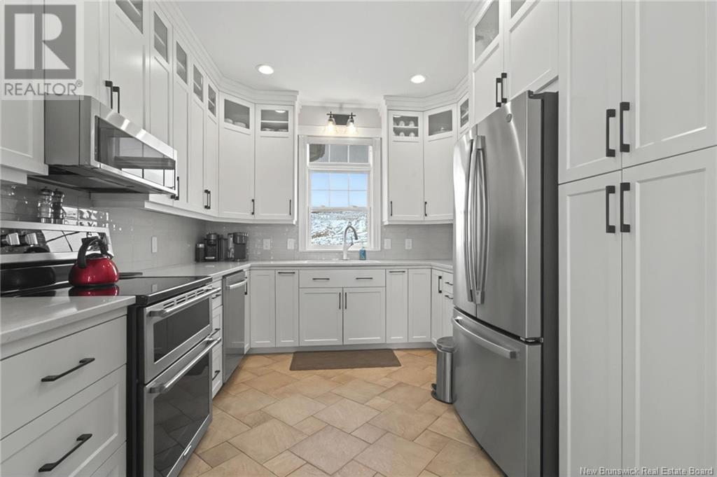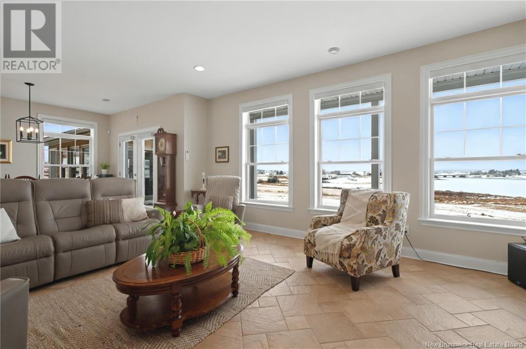 Welcome to 19 Leopold Goguen Road. Nestled on 9.4 +-acres of picturesque waterfront property along the Sainte-Marie River, this property offers a perfect blend of elegance and comfort. The first floor features an open-concept design connecting the kitchen, dining room, and living room, complemented by a main entrance, a 2-piece powder room, and a primary suite with a 4 pc. ensuite bath. A finished attached garage provides added convenience. Upstairs, youll find four spacious bedrooms, two full 4-piece bathrooms, and two living rooms, two entrances to a balcony with breathtaking river views. Additional features include in-floor heating, a propane fireplace, a propane generator, and a 32' x 36' detached three-car garage that is fully insulated with a second-floor loft. The property also boasts a gazebo, a private well and sewer system, and a durable metal roof. With direct waterfront access, stunning views, and classic charm, this property offers a lifestyle of unmatched tranquility and sophistication. (id:34572)