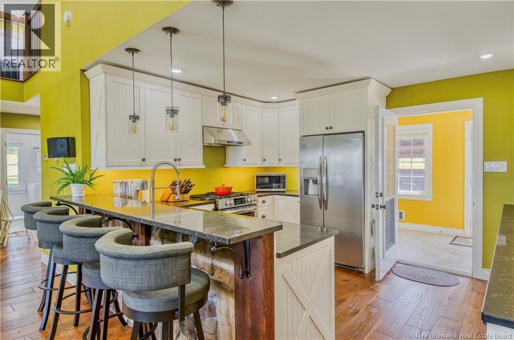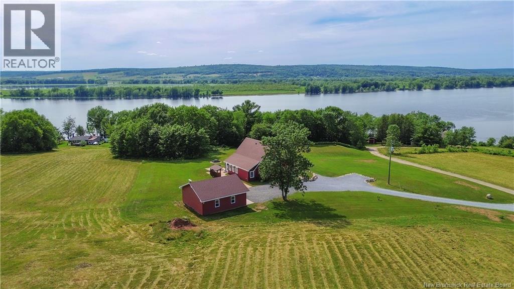 Welcome to 19 Stockford Lane ! Constructed in 2019 this 3 acre property perfectly combines elegance with updated, modern living and being situated just between Belleisle Bay and Washademoak Lake, the water views of the Saint John River are breathtaking. The custom built 4-bedroom home leaves no detail unfinished with all the modern features you would expect and more. Entering the home you're greeted by the spacious living room with 17' ceilings, to the right is the beautifully designed kitchen with stainless steel appliances and a gas-top stove. Behind the kitchen is a sunroom that connects you to the outside patio cook-station and dining area. The main level also features the primary bedroom, 2nd bedroom, full bathroom, and the laundry/utility room holding the mechanical features, including the in-floor heating system. Upstairs you'll find 2 more bedrooms and an open landing overlooking the living room making a great at-home office. Beside the home is a 28'x28' two car garage. As much as the home shines, the yard adds so much more, with a built-on-stone fire pit, horseshoe court, beach access, and much more this yard is made to entertain. Enjoy your days watching the boats go by, entertaining guests, and enjoying the water at the beach. With so much space and the great location, your days can be filled with entertainment or quiet and serene, enjoying nature. Book your private showing today ! Located just 10 minutes from the Evendale Ferry and 17 minutes from Route #710. (id:34572)