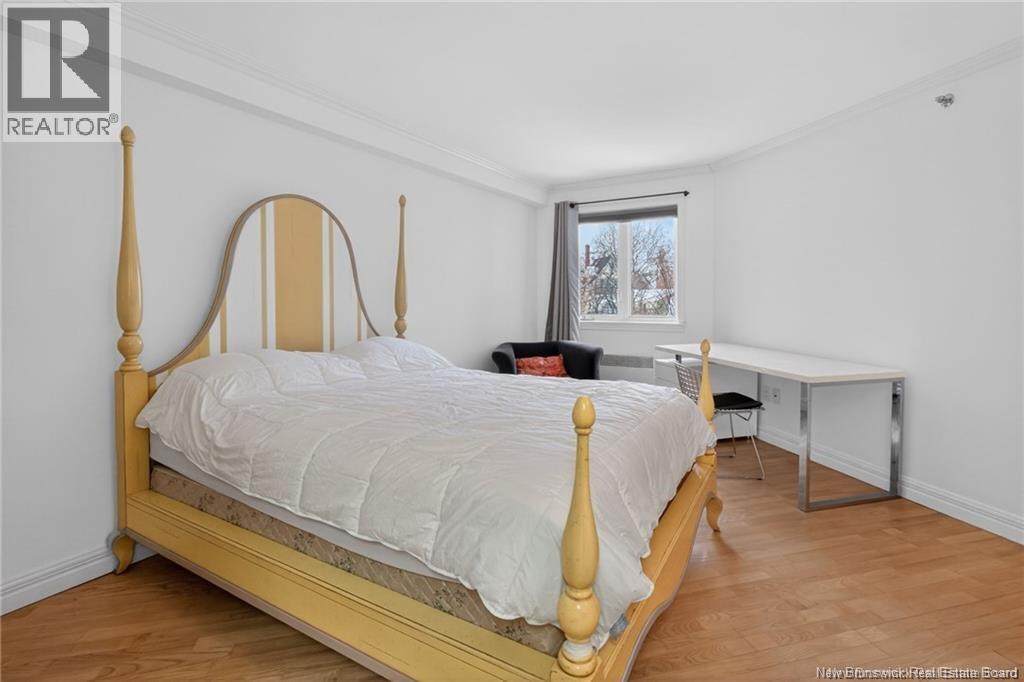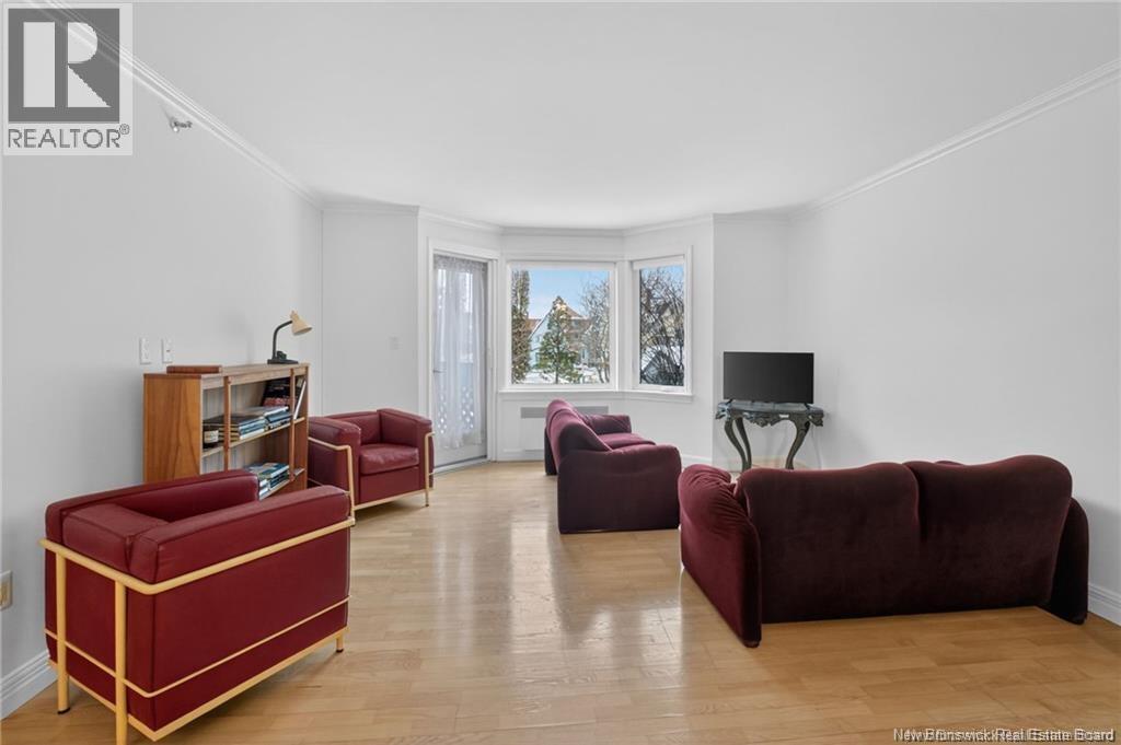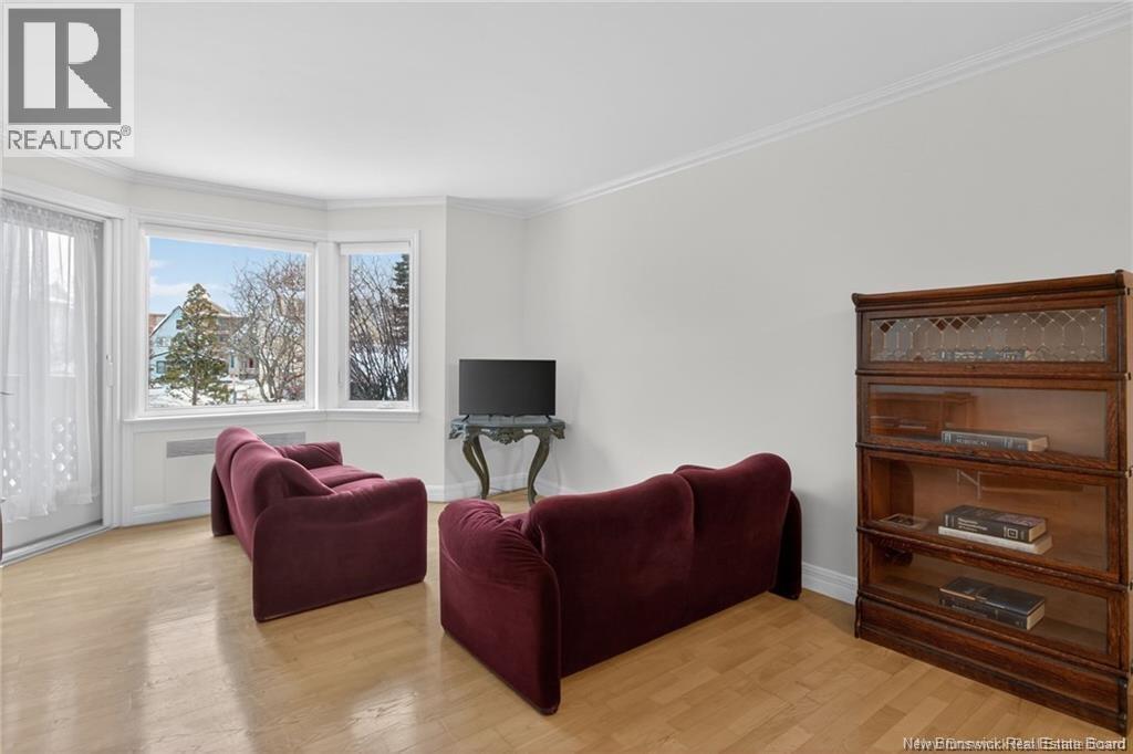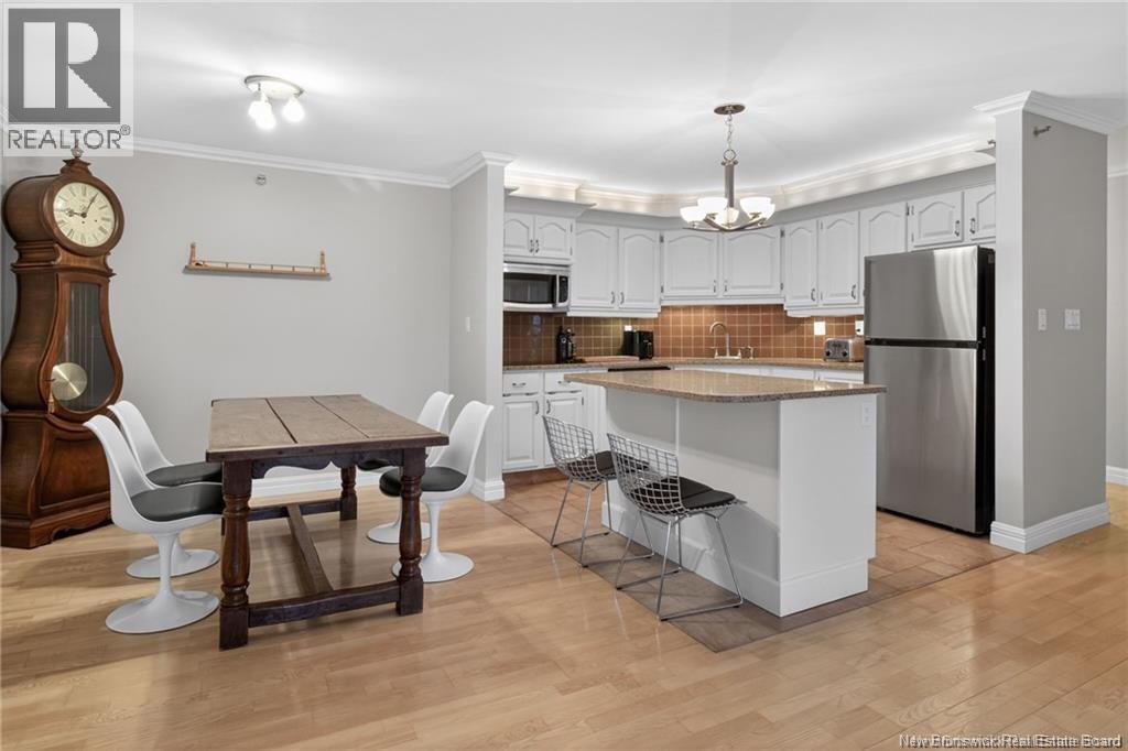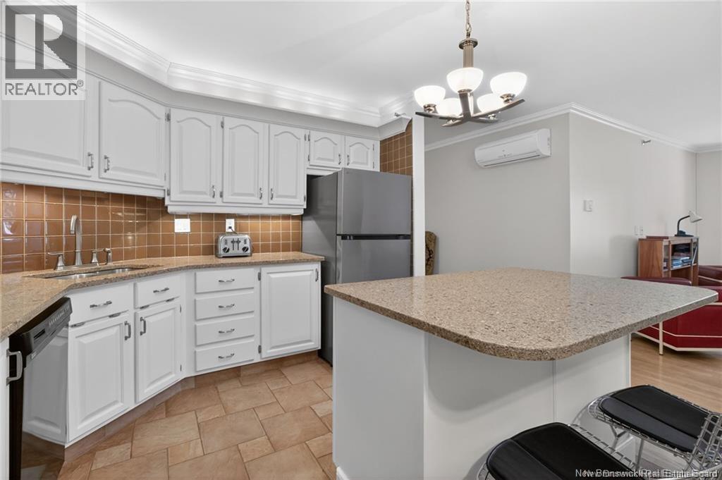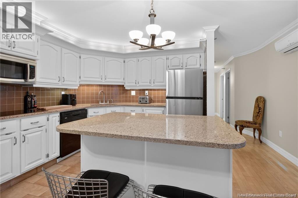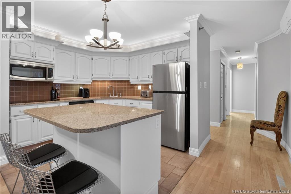 Discover urban comfort in this charming 2-bedroom condo nestled in Downtown Moncton. Located in a secure and well maintained building, this condo offers a blend of modern amenities and serene surroundings. As you step inside, you're greeted by a beautifully interior featuring crown molding and granite countertops throughout. The spacious living and dining area boasts a bay window, filling the space with natural light and providing a cozy ambiance. For comfort, a mini-split heat pump offers both heating and air conditioning options. The master bedroom includes a convenient walk-in closet with shelving and direct access to the 4-piece bathroom, ensuring privacy and functionality. The second bedroom is generously sized with ample closet space, ideal for guests or a home office. Additional highlights include a dedicated laundry and utility room conveniently located near the bedrooms. Step outside onto the 14'x4' covered deck overlooking a landscaped greenery and a gazebo. With underground parking, a beautifully decorated lobby, and a sprinkler system ensuring safety, this move-in-ready condo provides a perfect blend of comfort, convenience, and style in the heart of Moncton's vibrant downtown. (id:34572)
